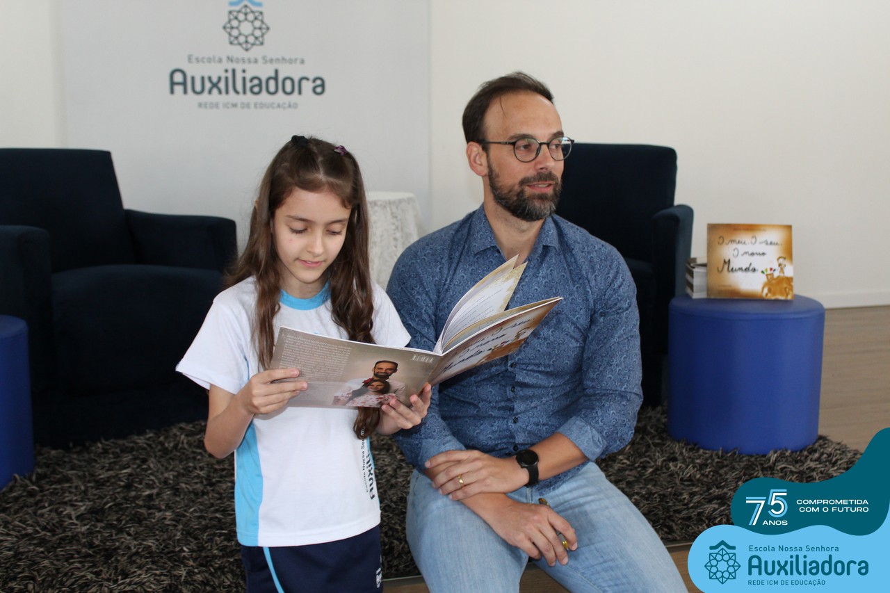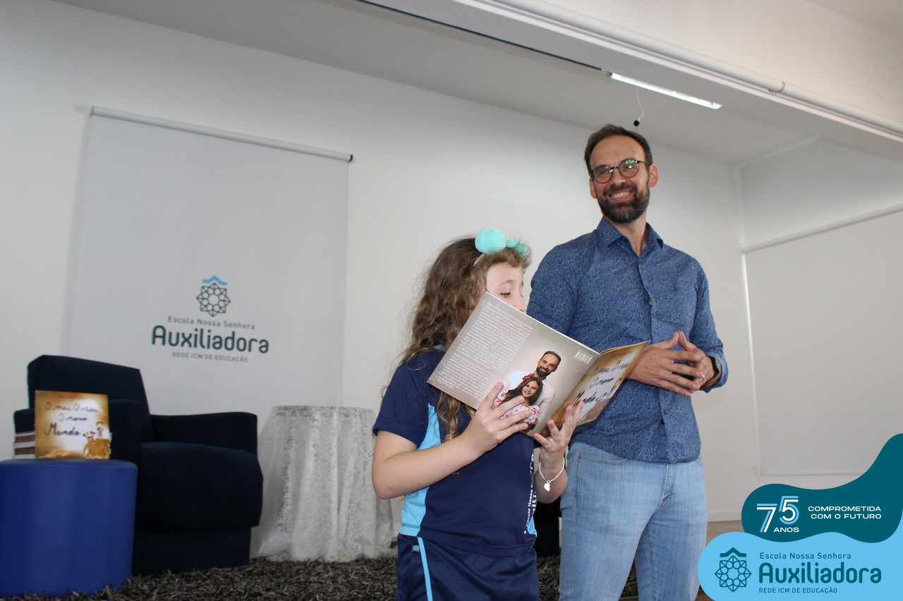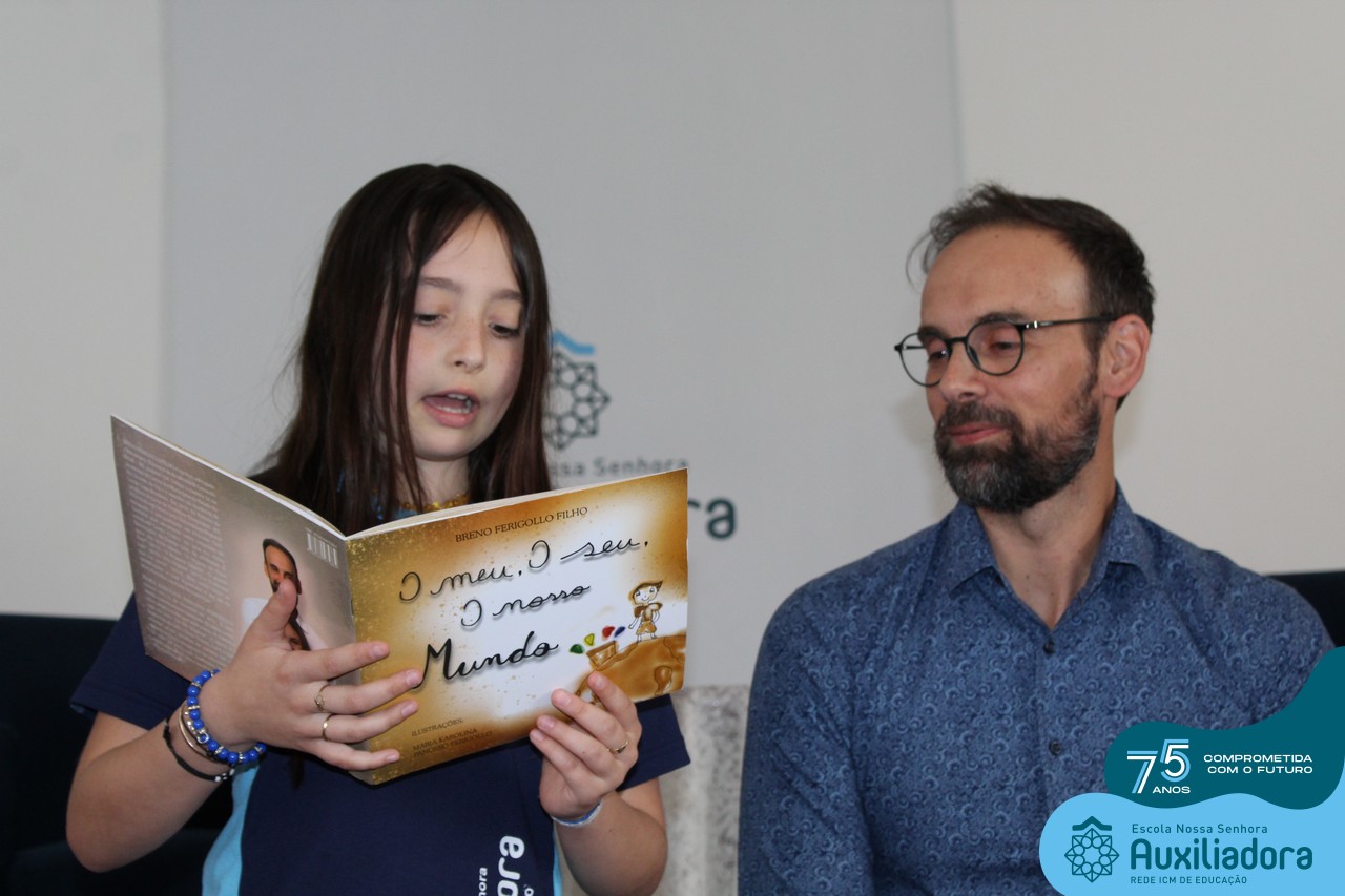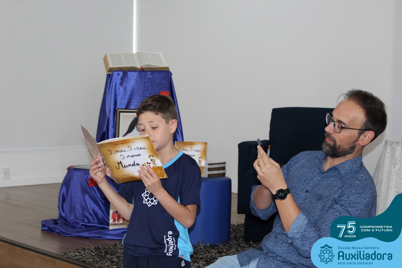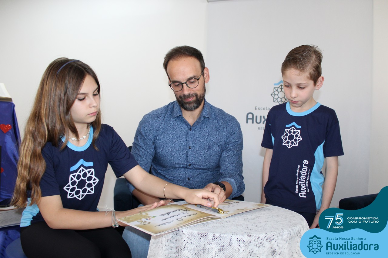 Foi com muita alegria, orgulho e gratidão que recebemos o Autor, ex-aluno e pai Breno Ferigollo Filho para o lançamento de seu novo livro “O meu, o seu, o nosso mundo”. O lançamento aconteceu no auditório da escola no dia 10/11.
