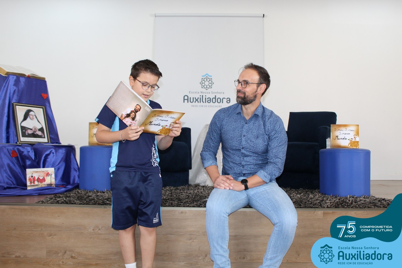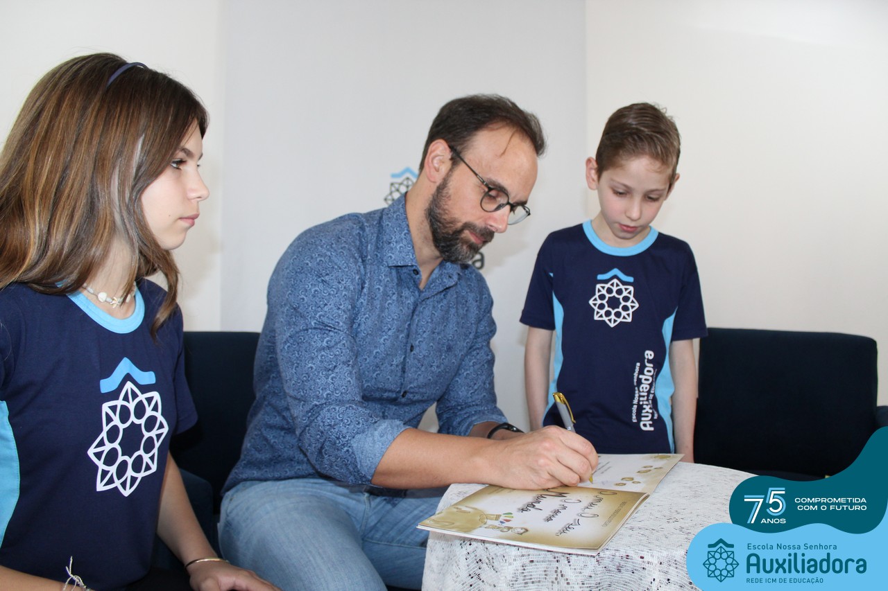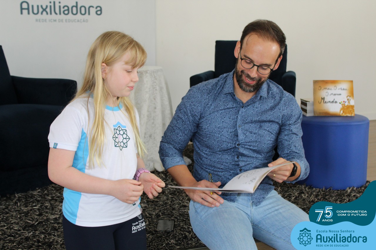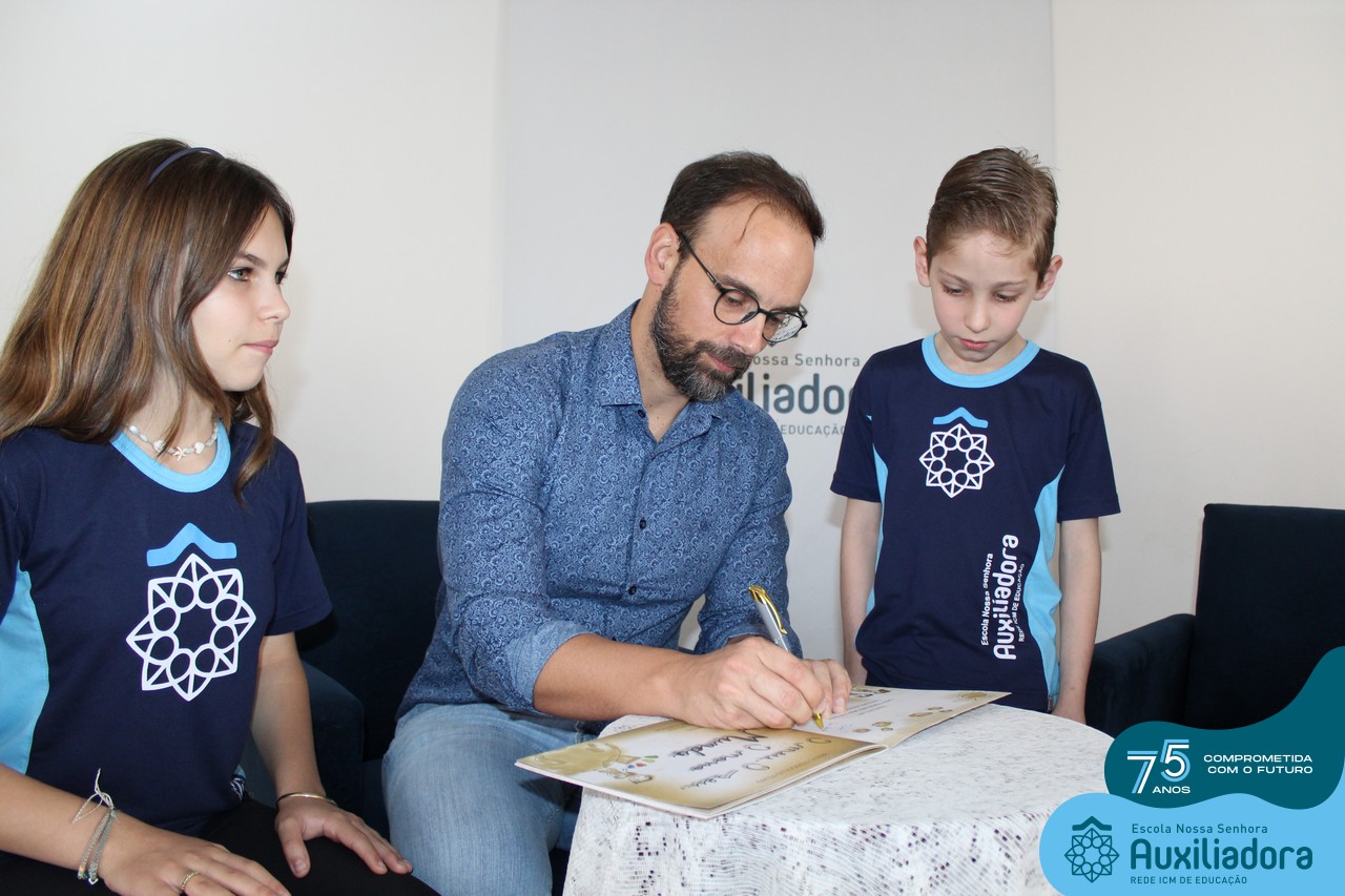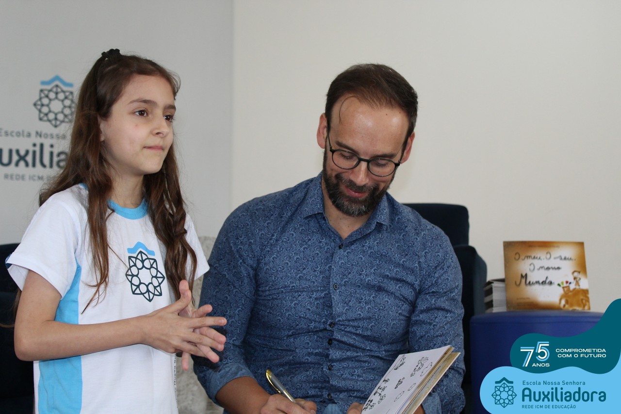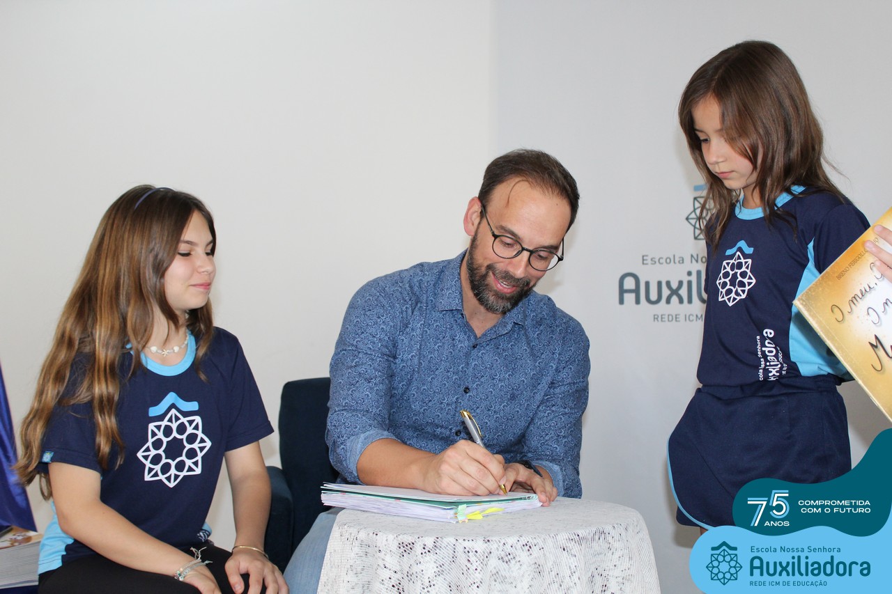 Foi com muita alegria, orgulho e gratidão que recebemos o Autor, ex-aluno e pai Breno Ferigollo Filho para o lançamento de seu novo livro “O meu, o seu, o nosso mundo”. O lançamento aconteceu no auditório da escola no dia 10/11.