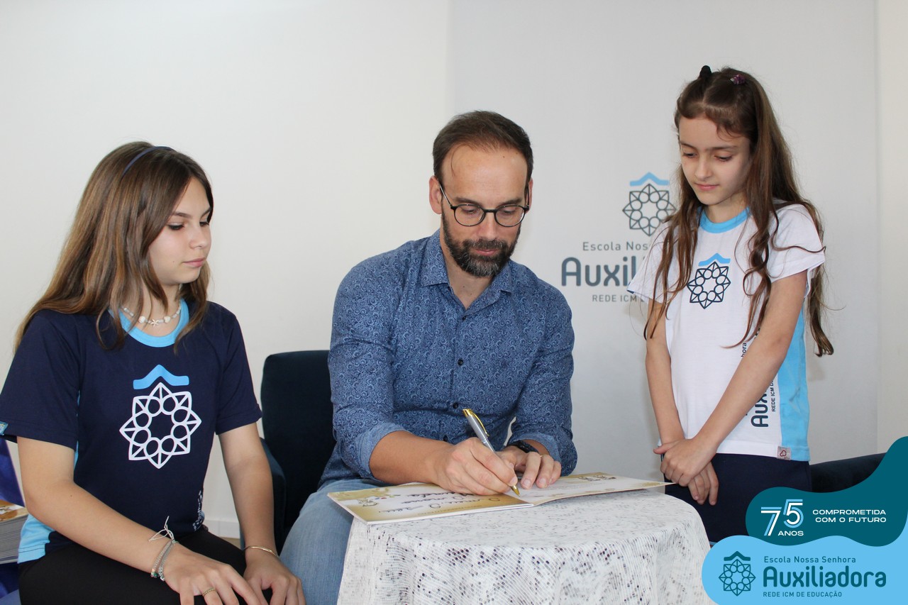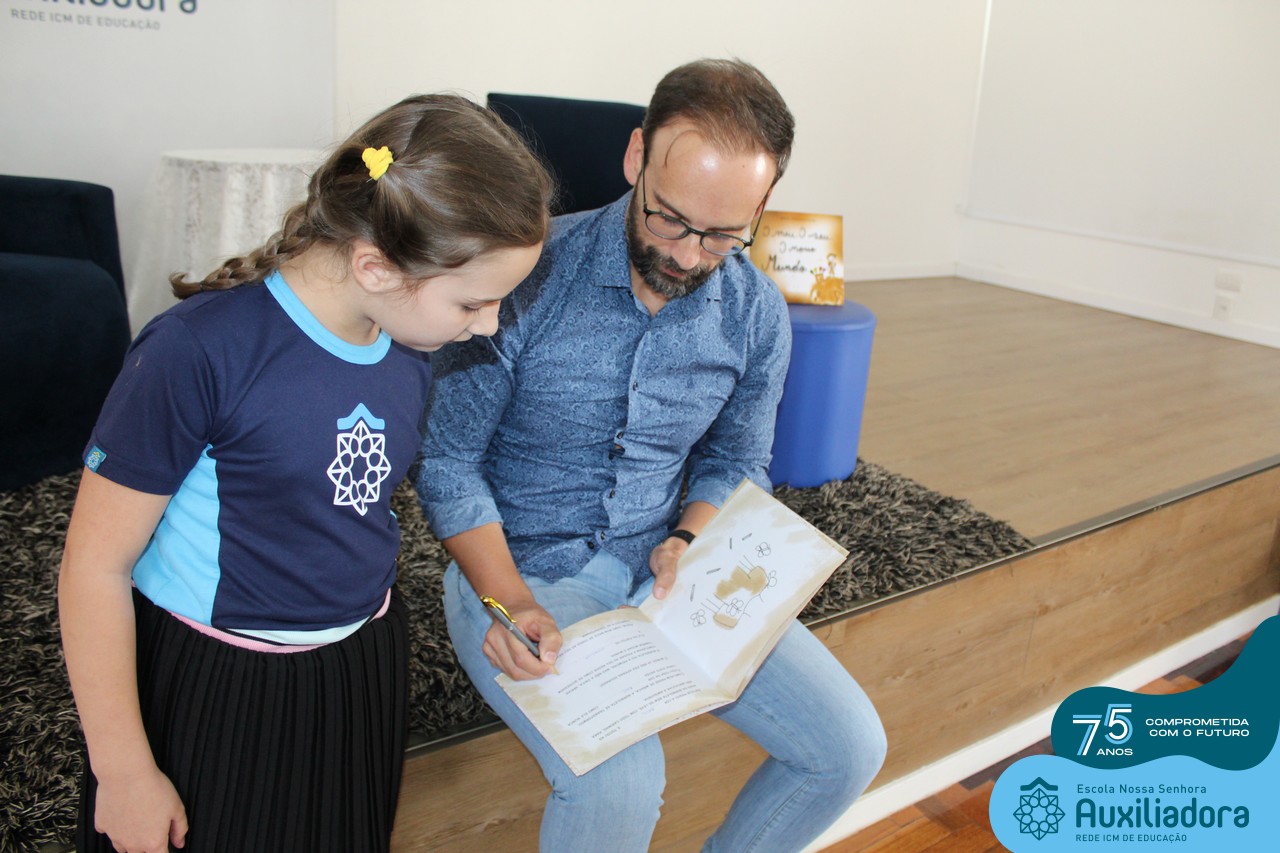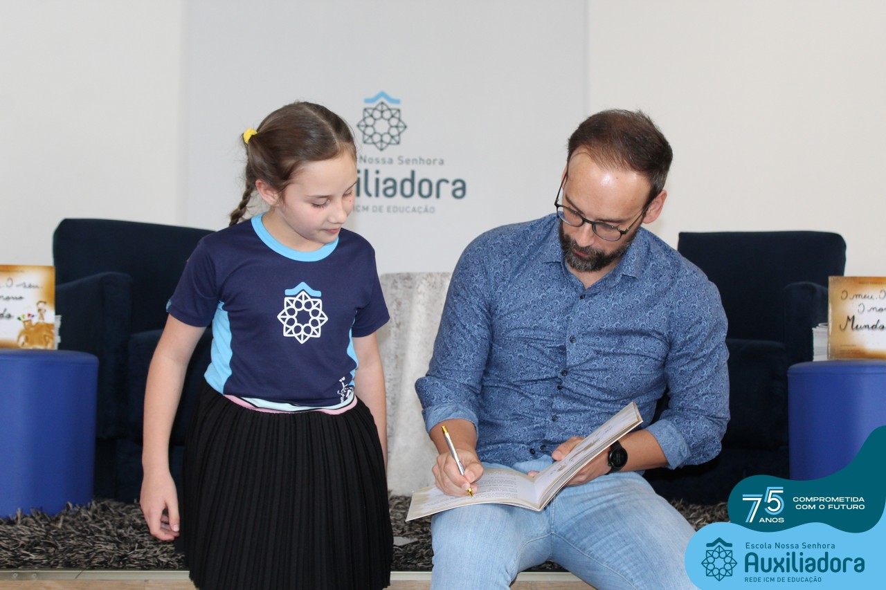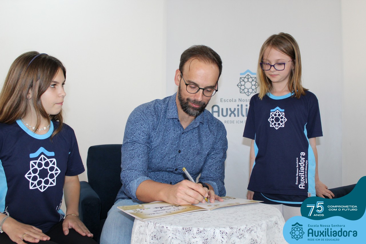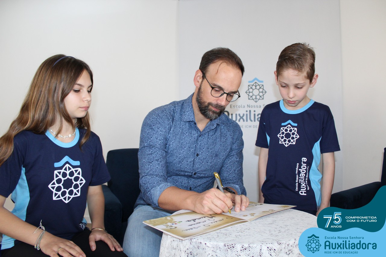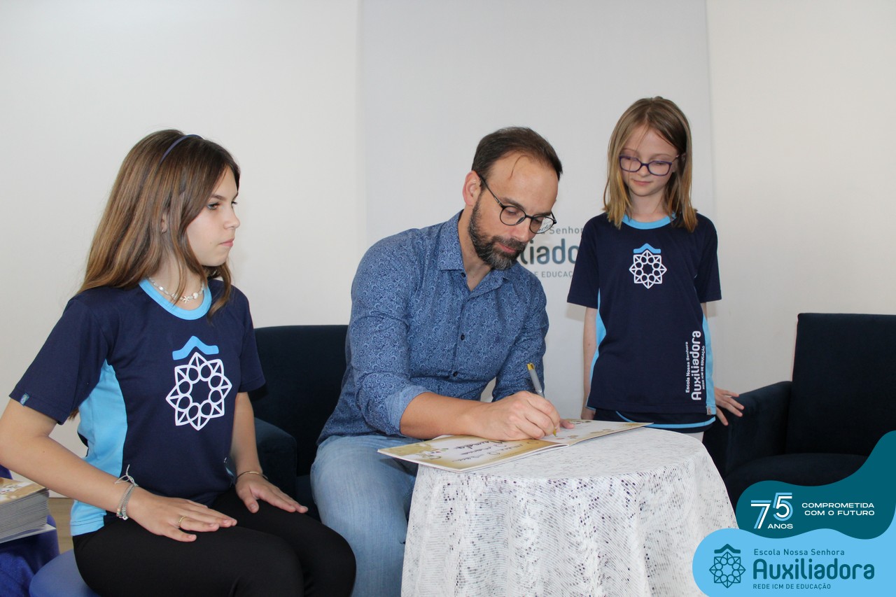 Foi com muita alegria, orgulho e gratidão que recebemos o Autor, ex-aluno e pai Breno Ferigollo Filho para o lançamento de seu novo livro “O meu, o seu, o nosso mundo”. O lançamento aconteceu no auditório da escola no dia 10/11.