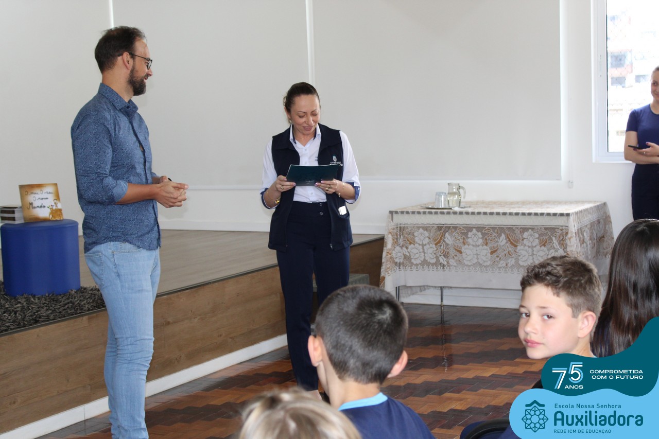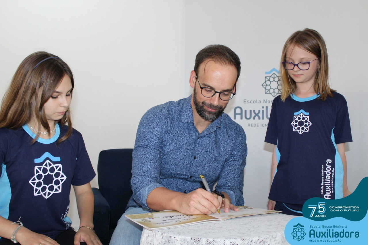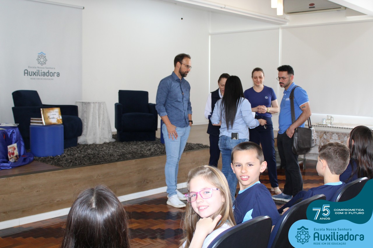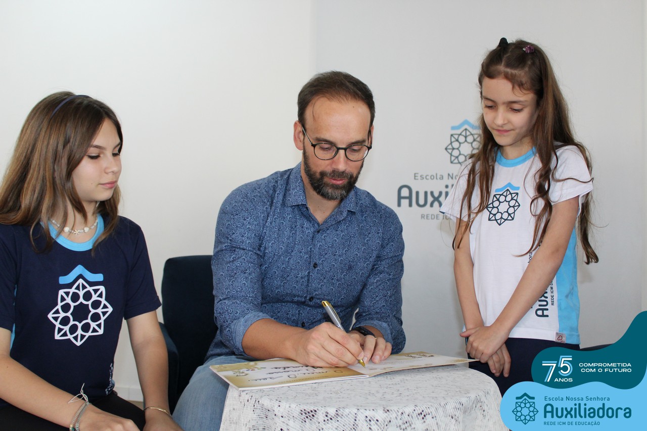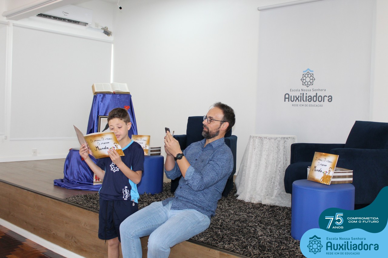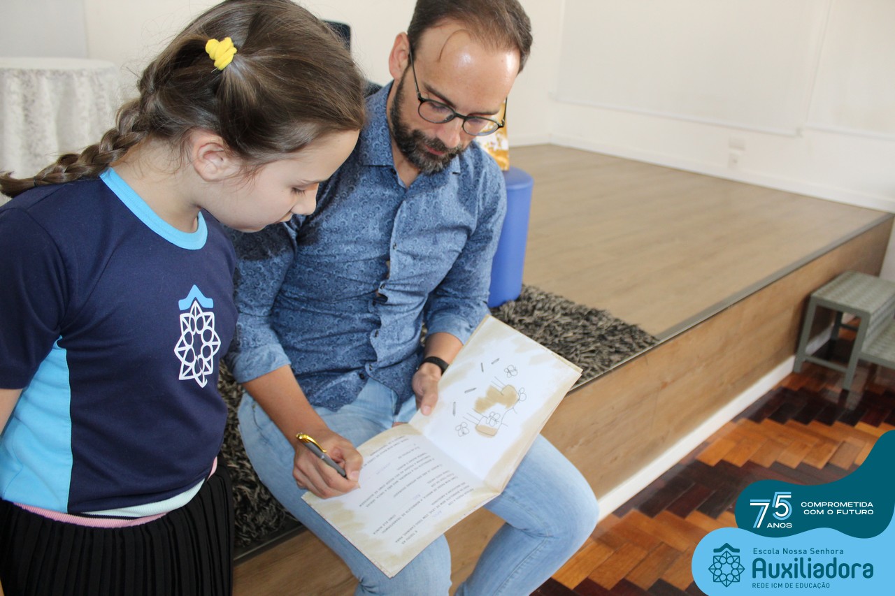Foi com muita alegria, orgulho e gratidão que recebemos o Autor, ex-aluno e pai Breno Ferigollo Filho para o lançamento de seu novo livro “O meu, o seu, o nosso mundo”. O lançamento aconteceu no auditório da escola no dia 10/11.
