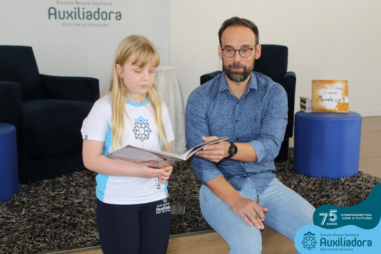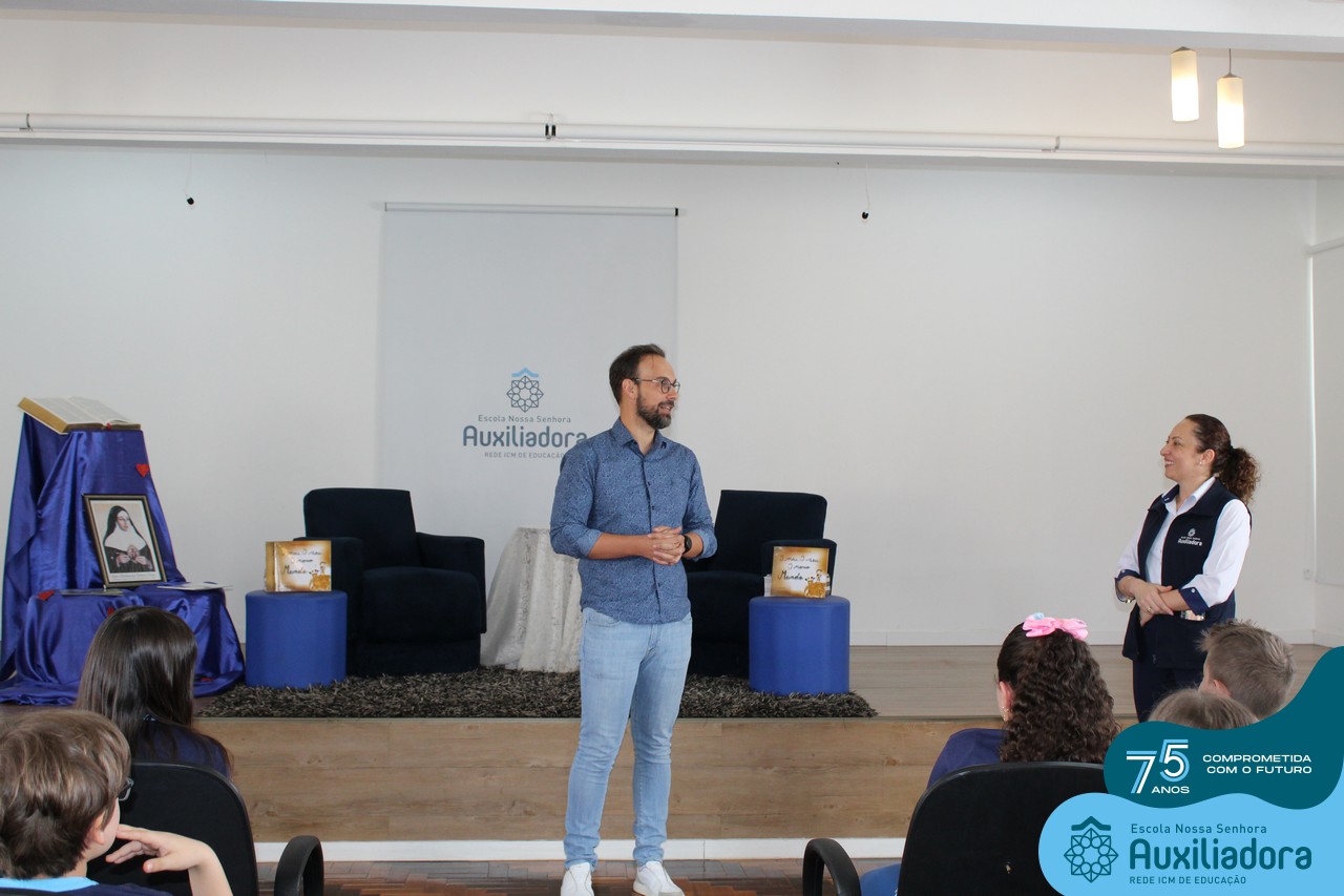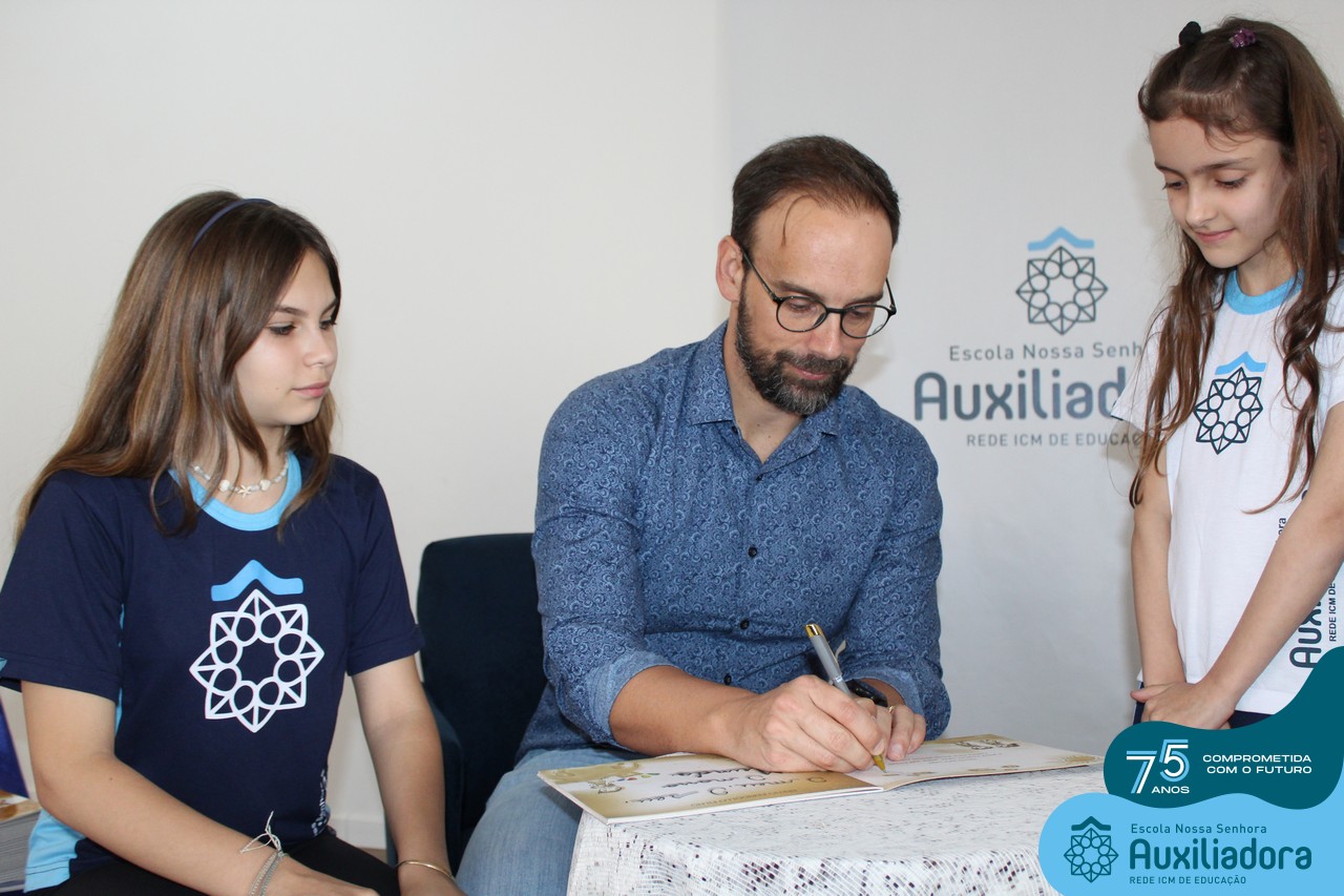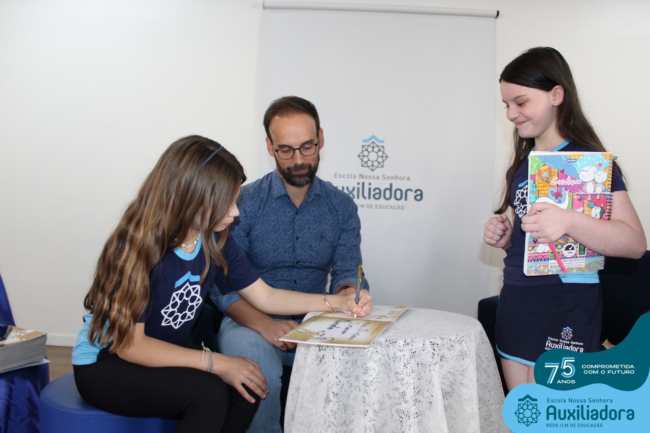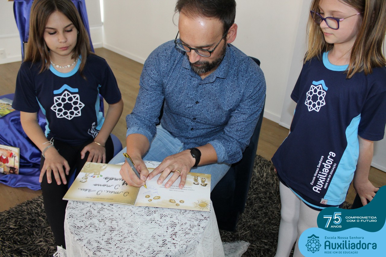 Foi com muita alegria, orgulho e gratidão que recebemos o Autor, ex-aluno e pai Breno Ferigollo Filho para o lançamento de seu novo livro “O meu, o seu, o nosso mundo”. O lançamento aconteceu no auditório da escola no dia 10/11.