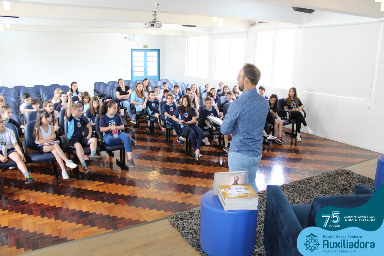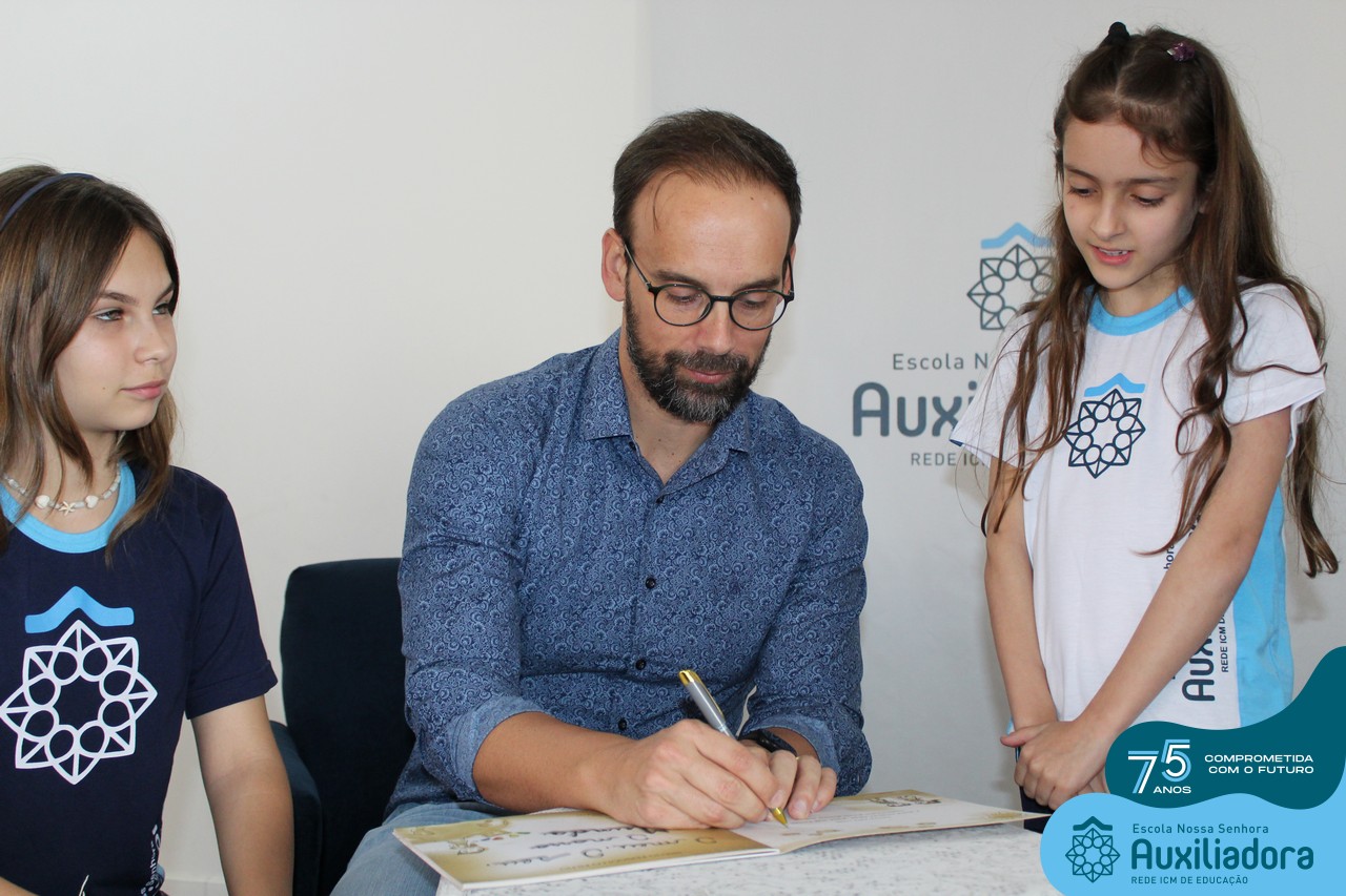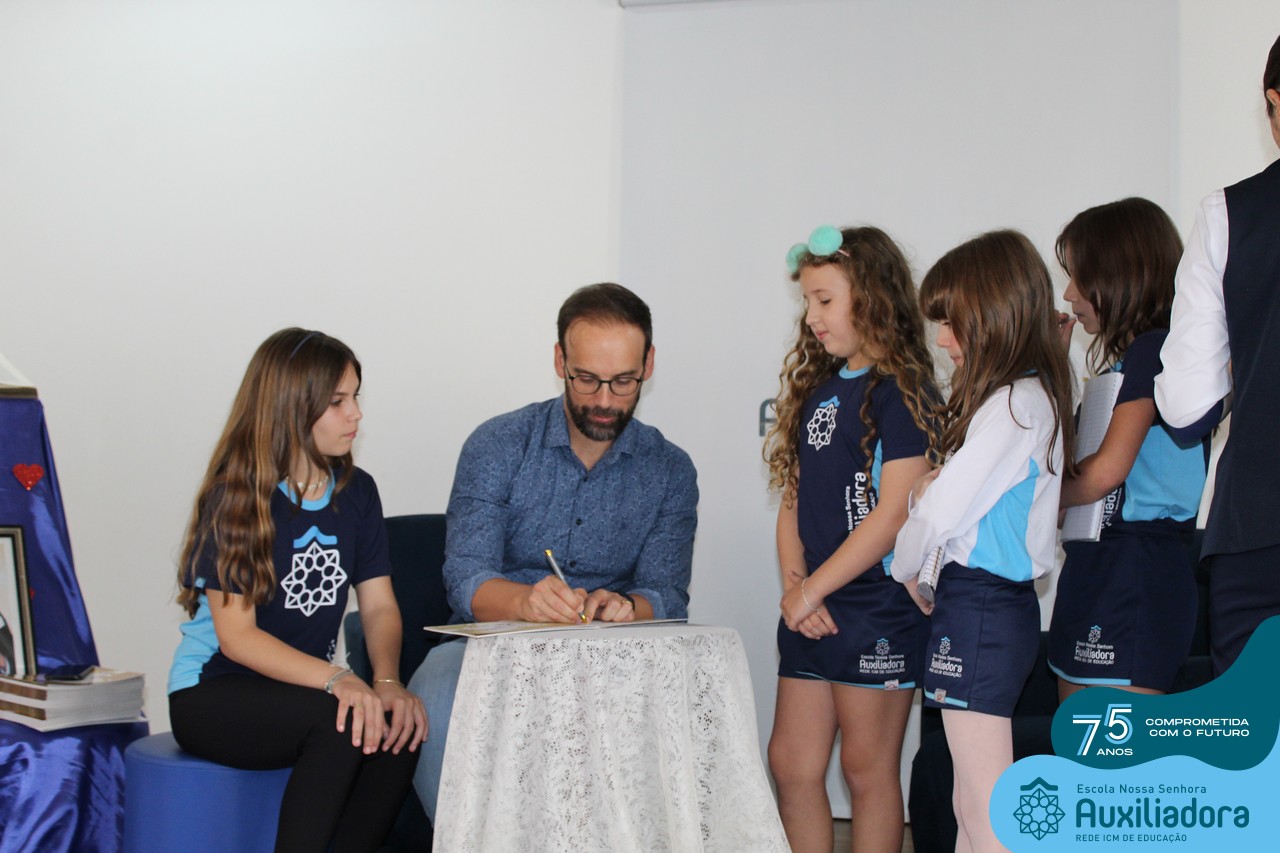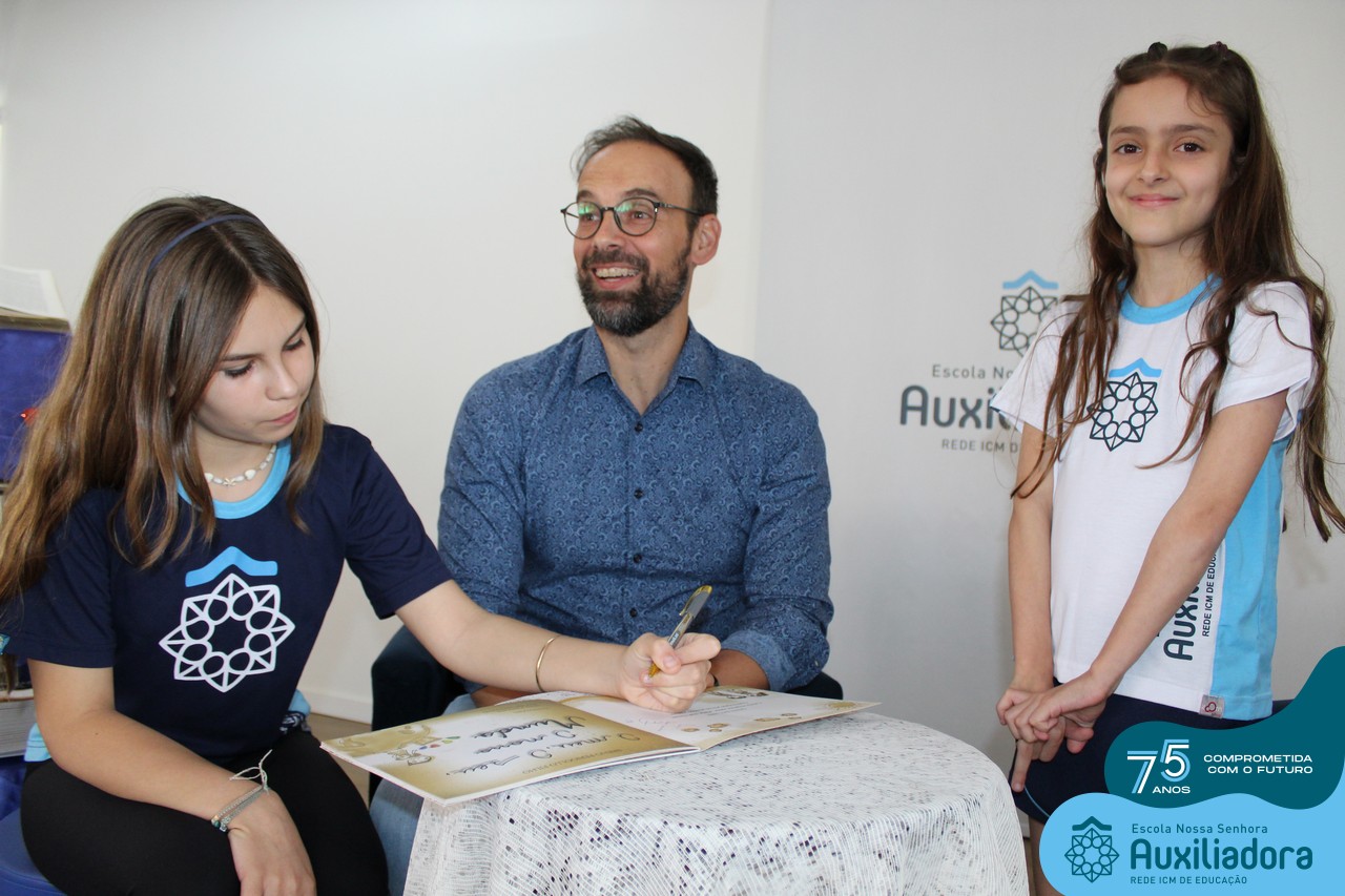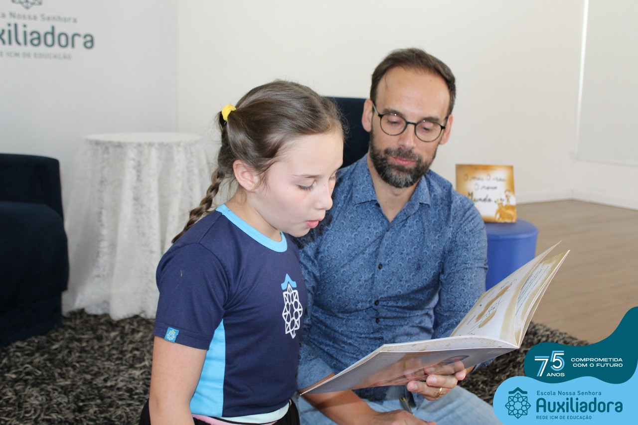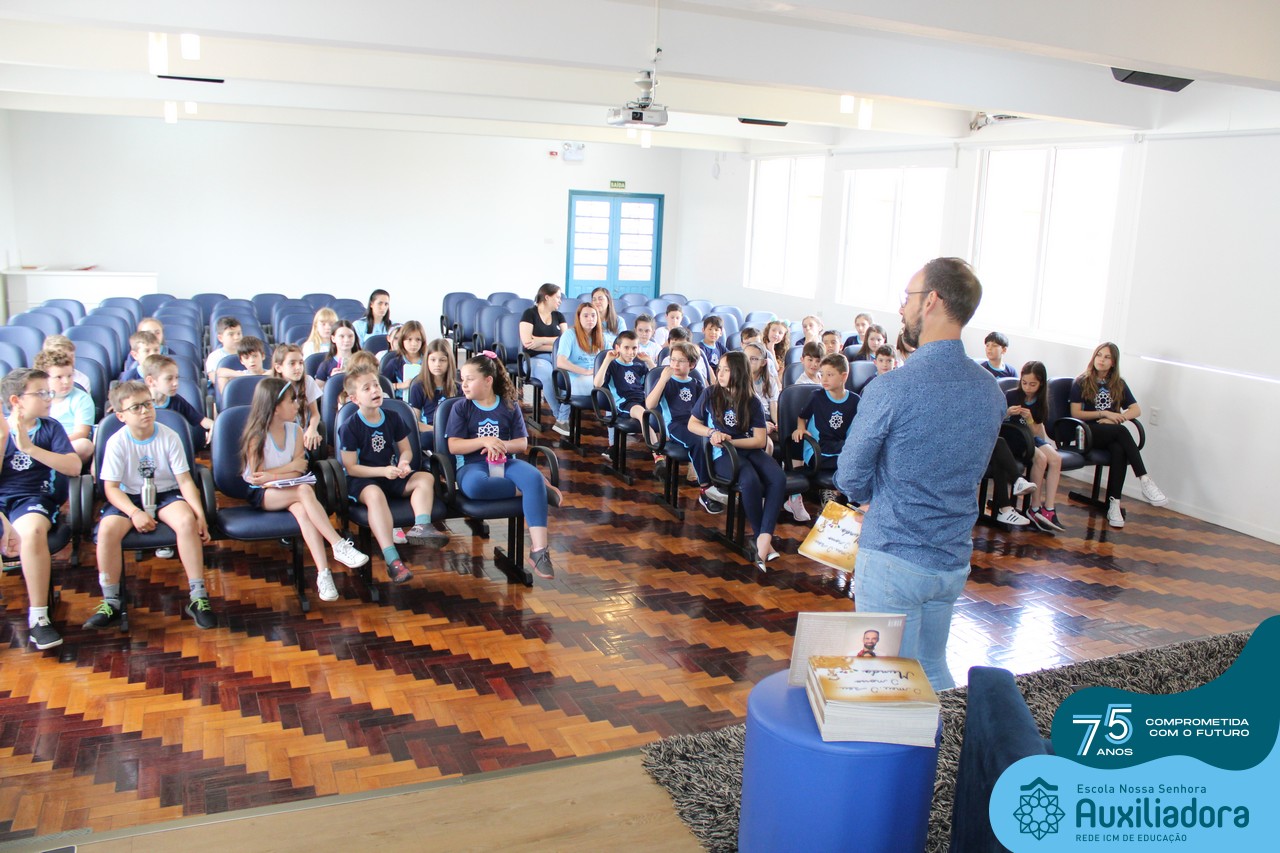 Foi com muita alegria, orgulho e gratidão que recebemos o Autor, ex-aluno e pai Breno Ferigollo Filho para o lançamento de seu novo livro “O meu, o seu, o nosso mundo”. O lançamento aconteceu no auditório da escola no dia 10/11.