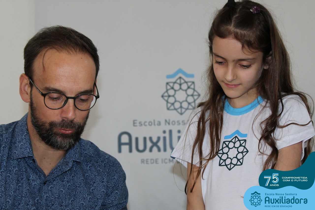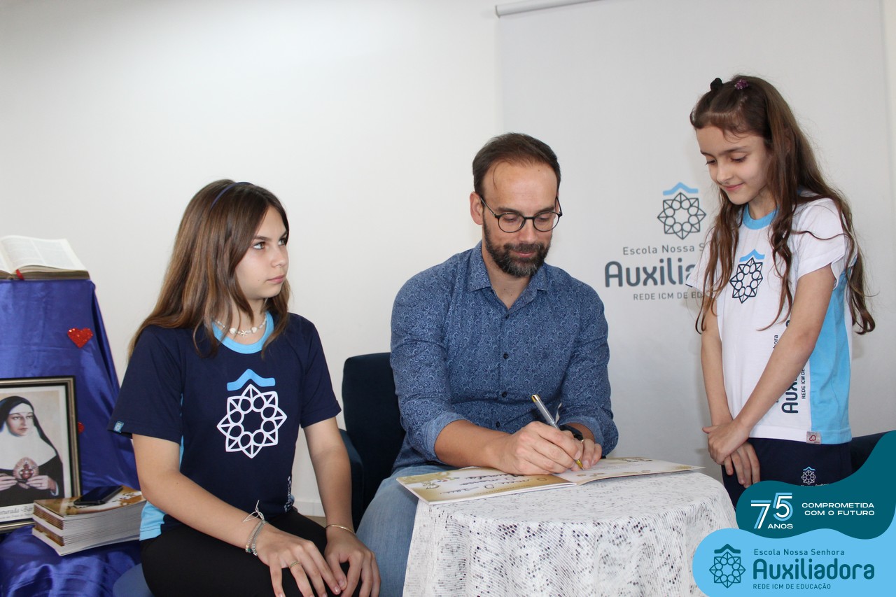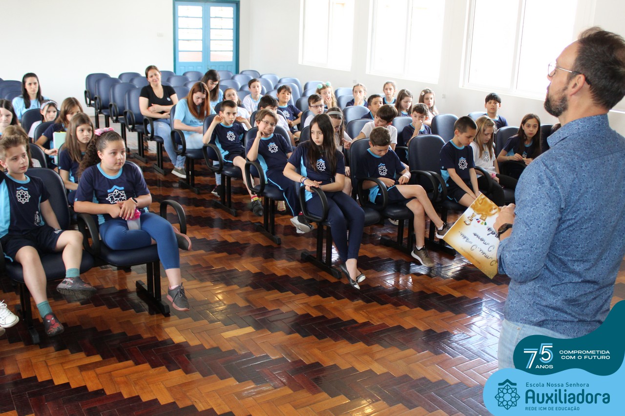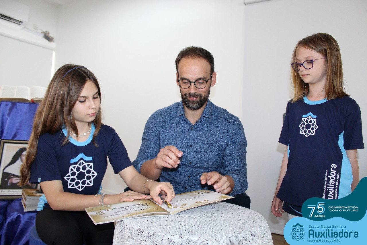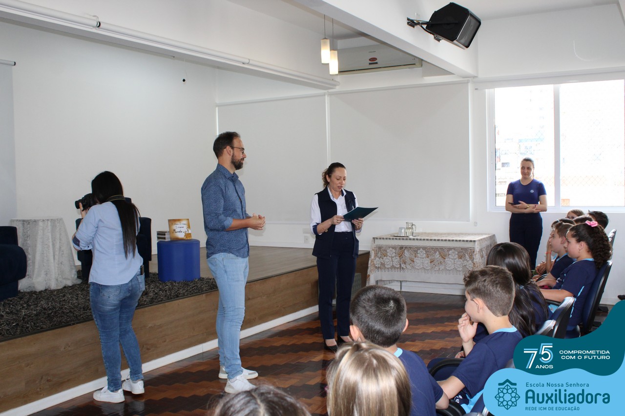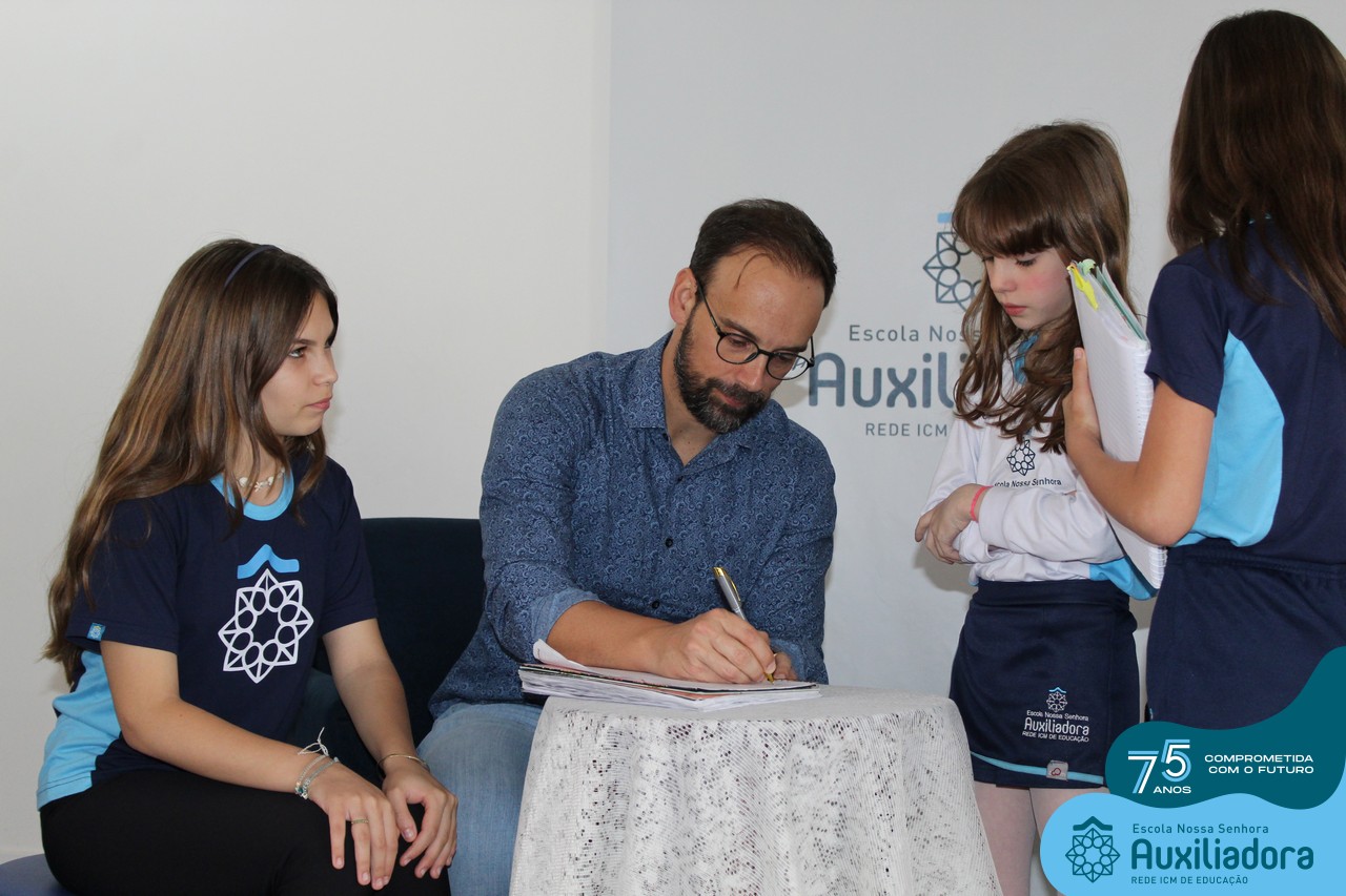 Foi com muita alegria, orgulho e gratidão que recebemos o Autor, ex-aluno e pai Breno Ferigollo Filho para o lançamento de seu novo livro “O meu, o seu, o nosso mundo”. O lançamento aconteceu no auditório da escola no dia 10/11.