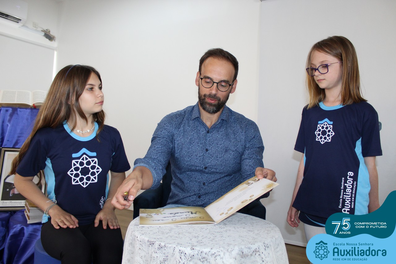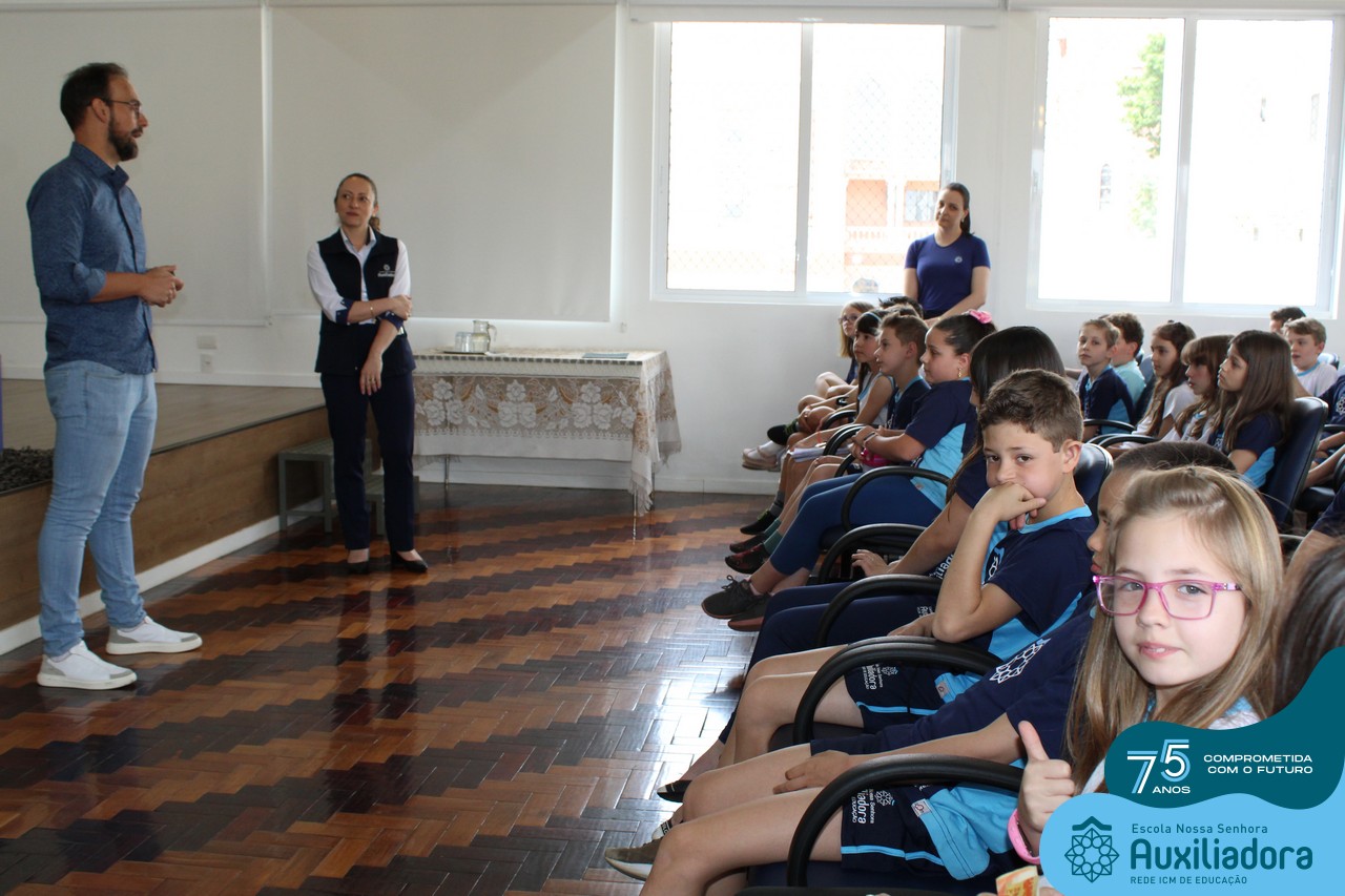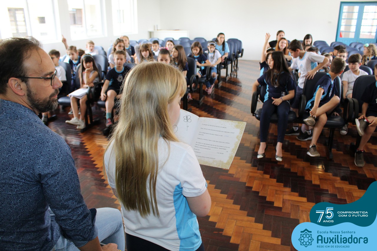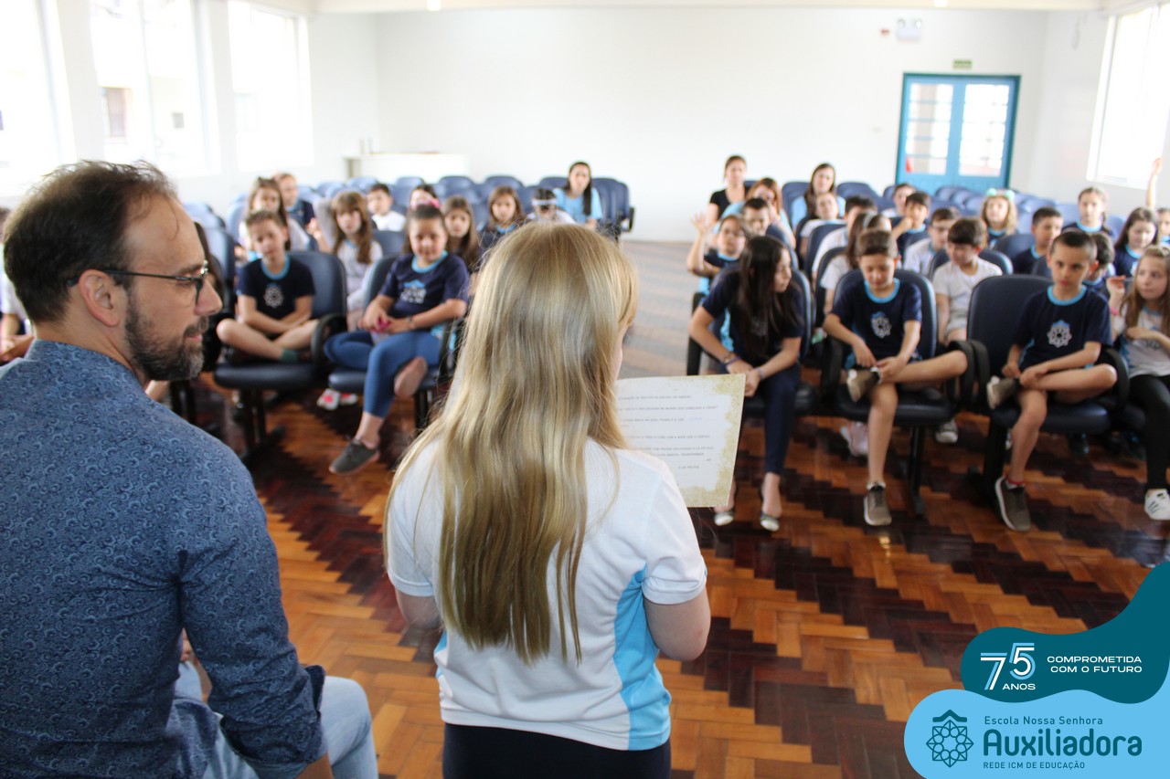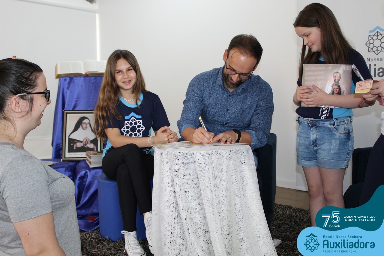 Foi com muita alegria, orgulho e gratidão que recebemos o Autor, ex-aluno e pai Breno Ferigollo Filho para o lançamento de seu novo livro “O meu, o seu, o nosso mundo”. O lançamento aconteceu no auditório da escola no dia 10/11.
