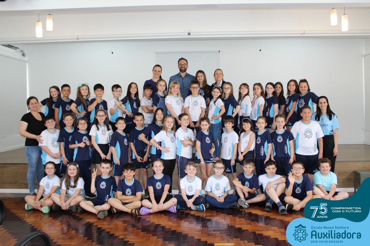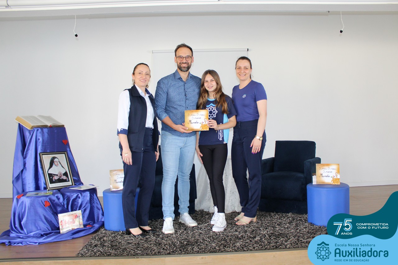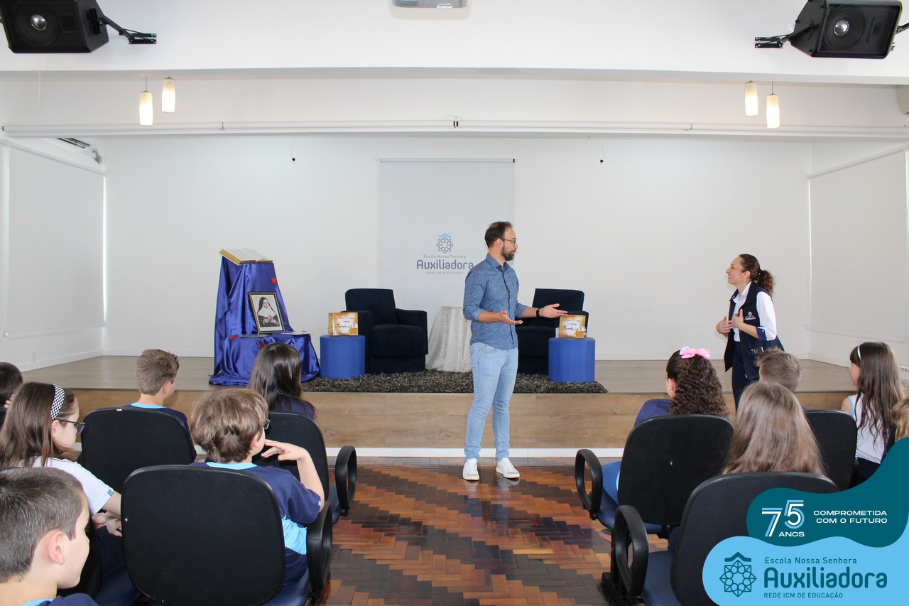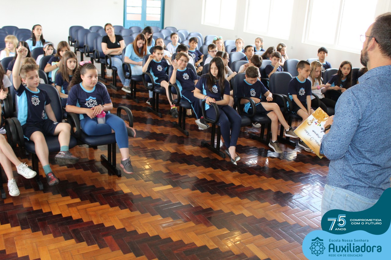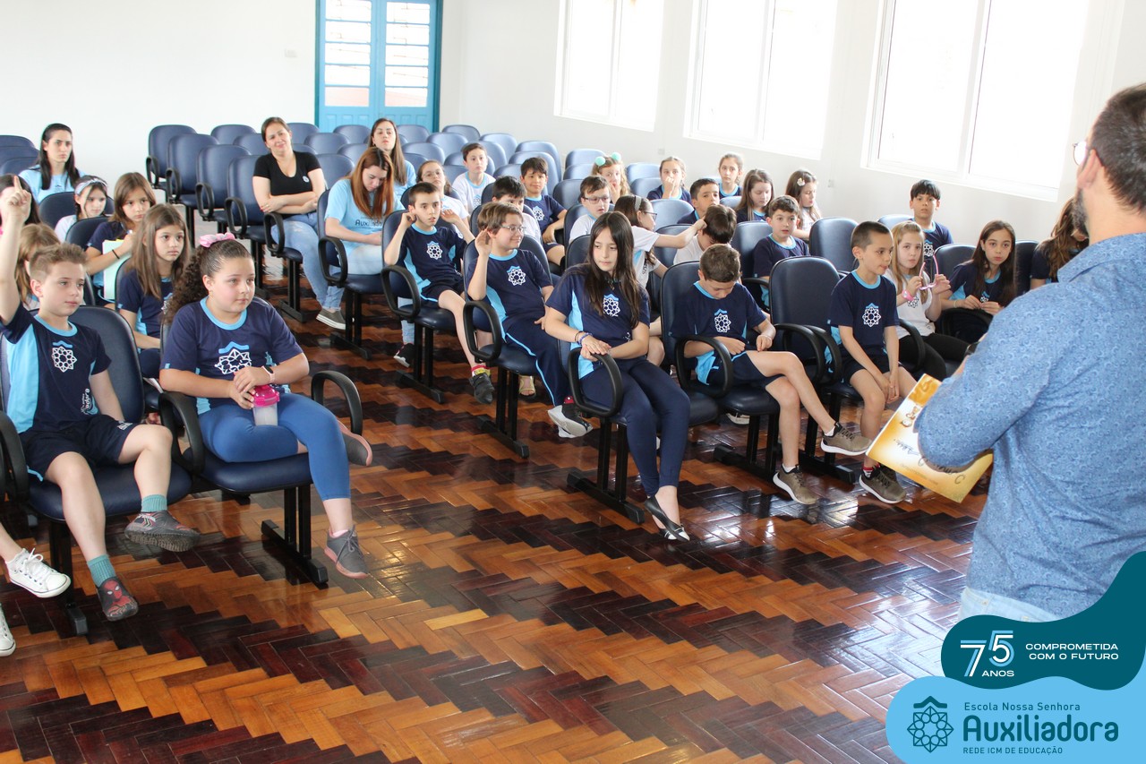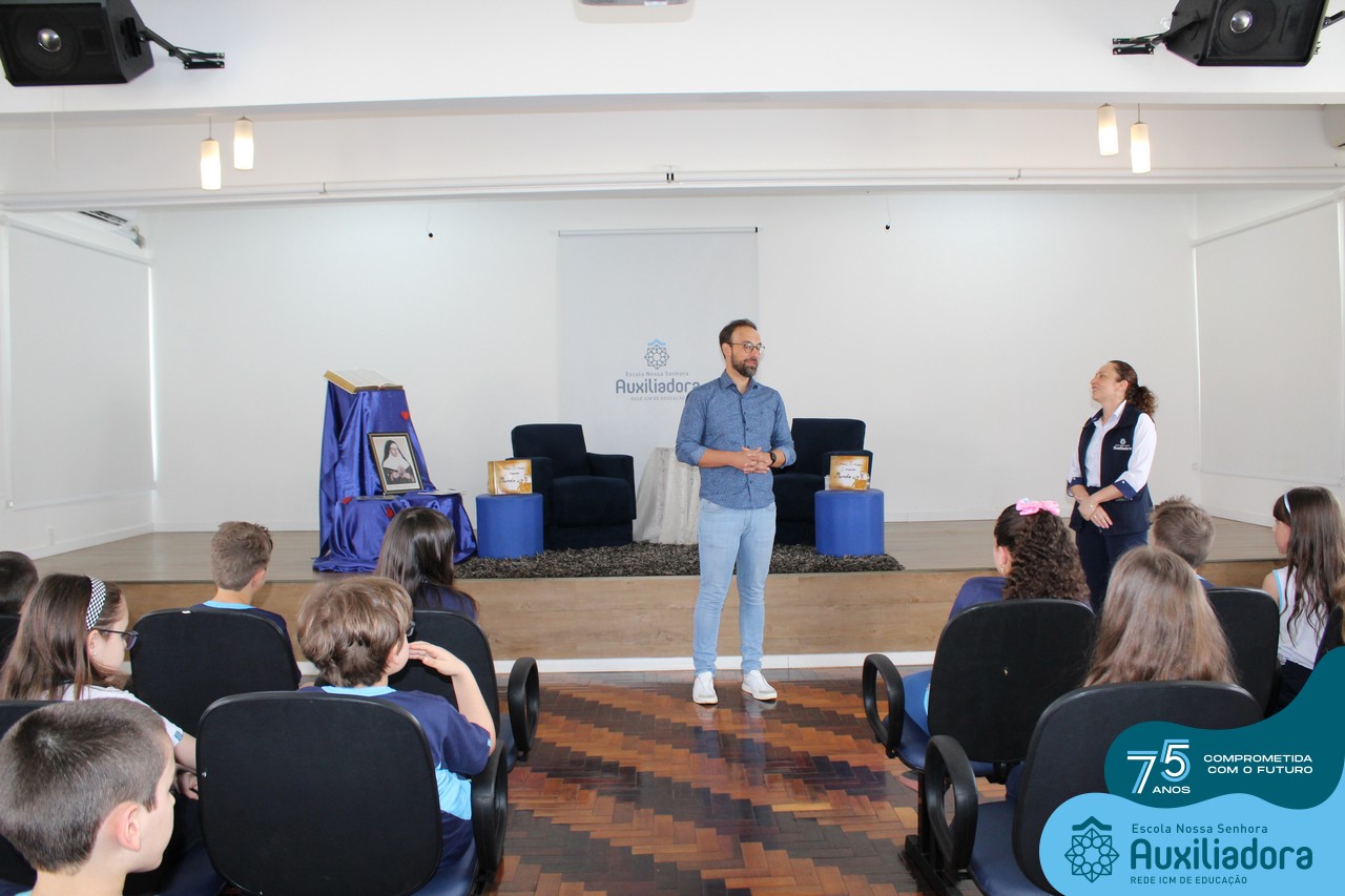Foi com muita alegria, orgulho e gratidão que recebemos o Autor, ex-aluno e pai Breno Ferigollo Filho para o lançamento de seu novo livro “O meu, o seu, o nosso mundo”. O lançamento aconteceu no auditório da escola no dia 10/11.