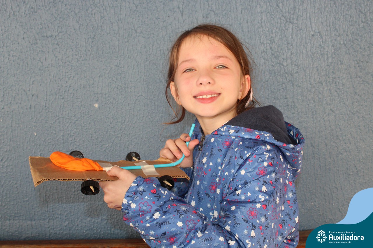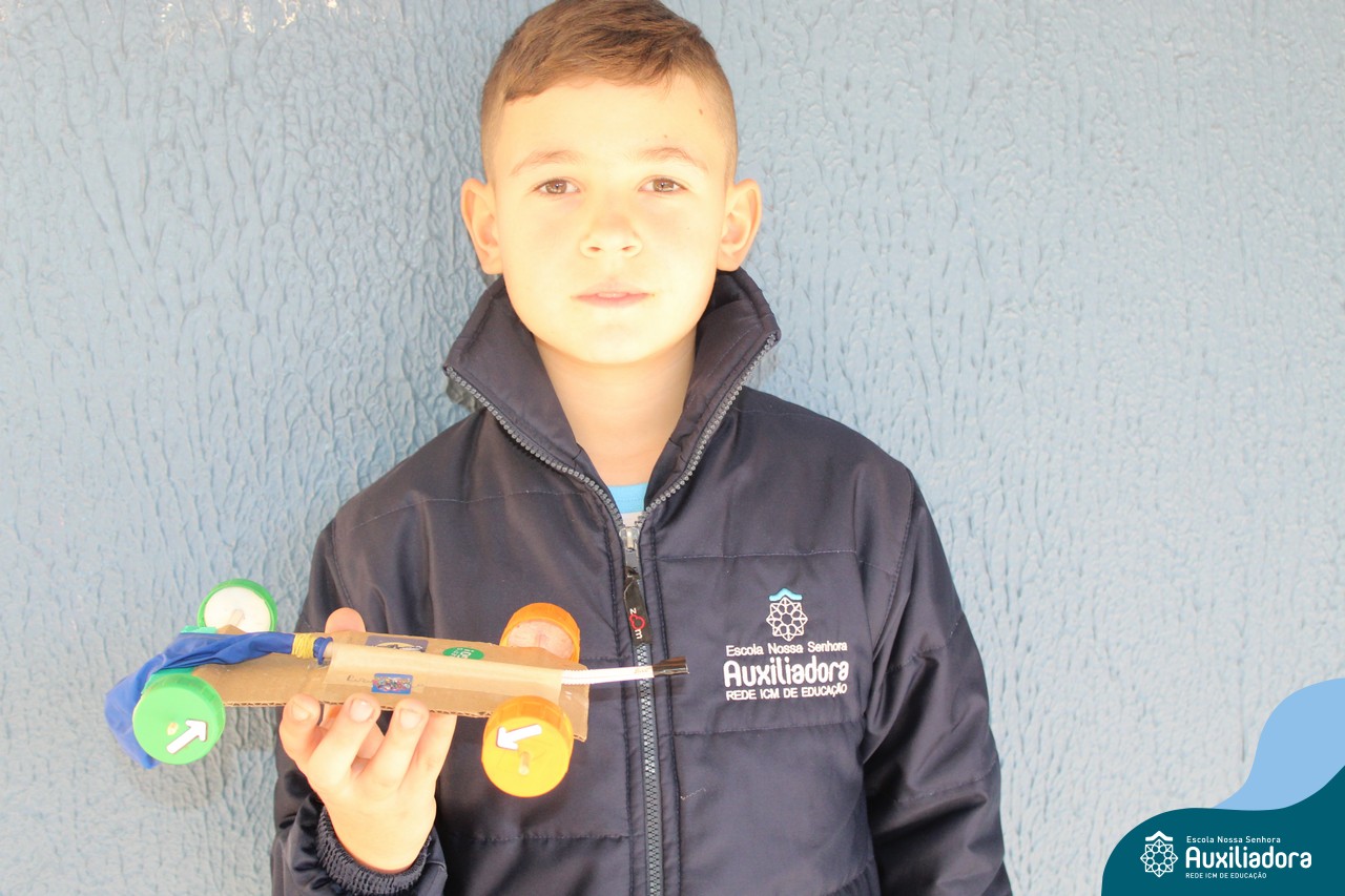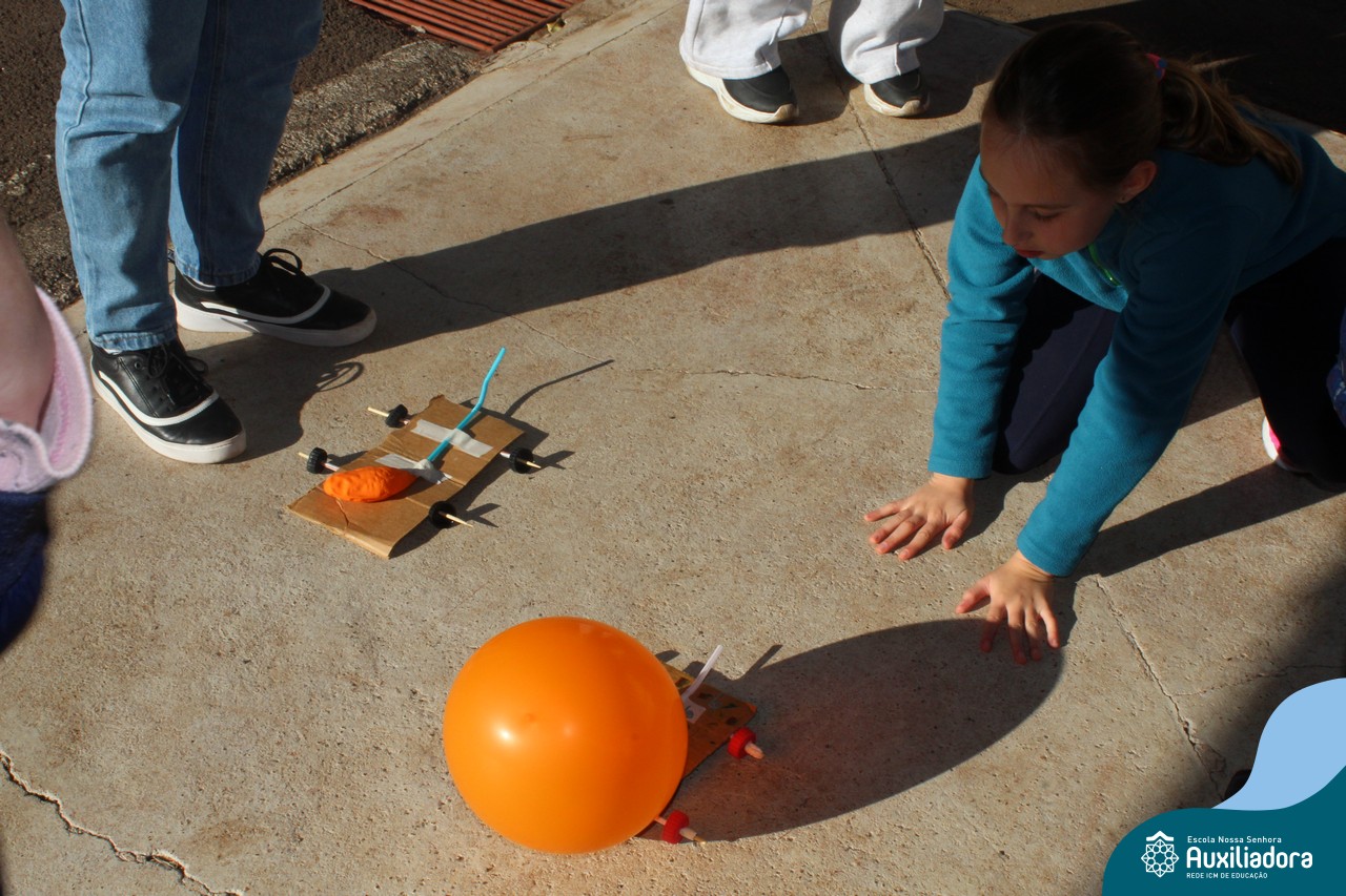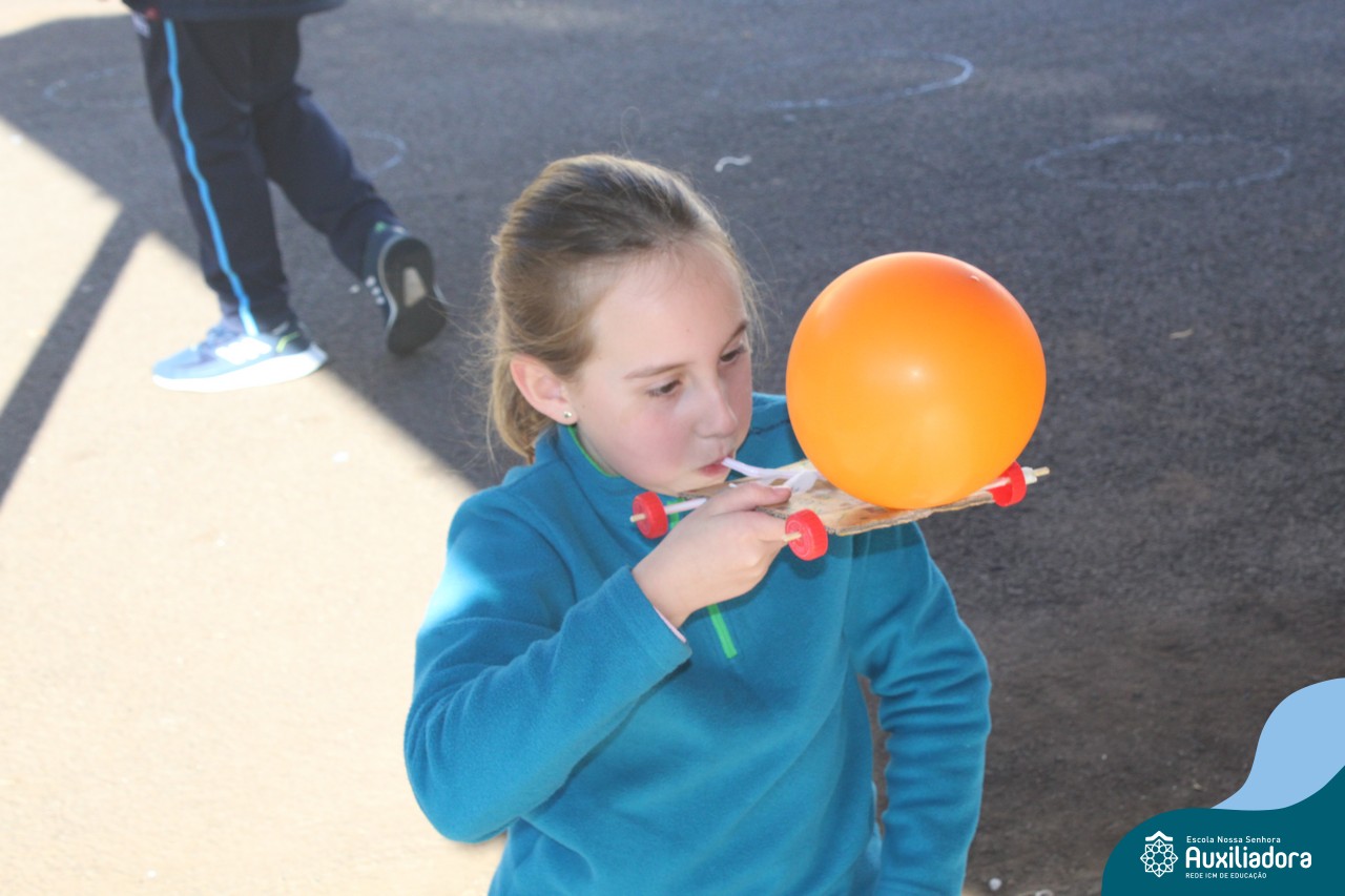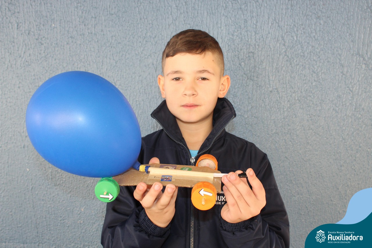 Após estudar o conceito de Kinetic Energy e executar experimentos em sala de aula, os alunos do 4º ano 41 e 42 trabalharam em grupos para construir seus próprios carros impulsionados por balões! Foram levantadas hipóteses sobre a velocidade do balão, a diferença do impulso conforme a quantidade de ar e o peso dos carros, assim como foram feitos planejamentos, construções e testes dos carros.