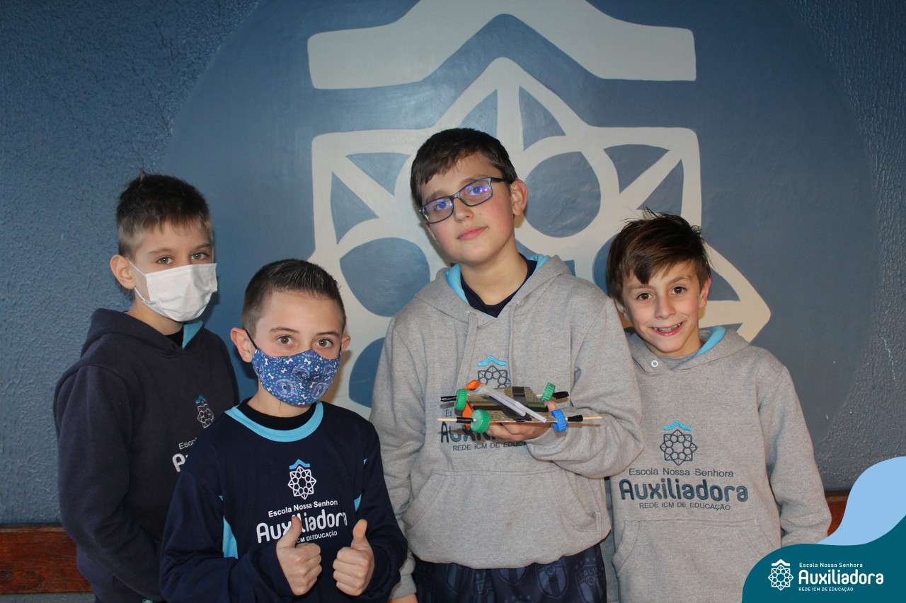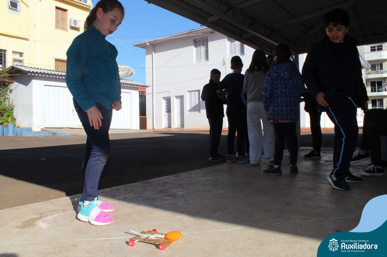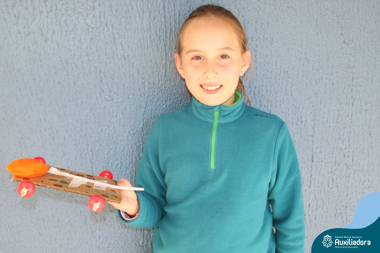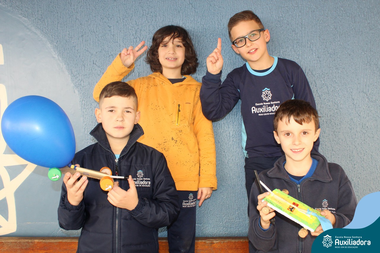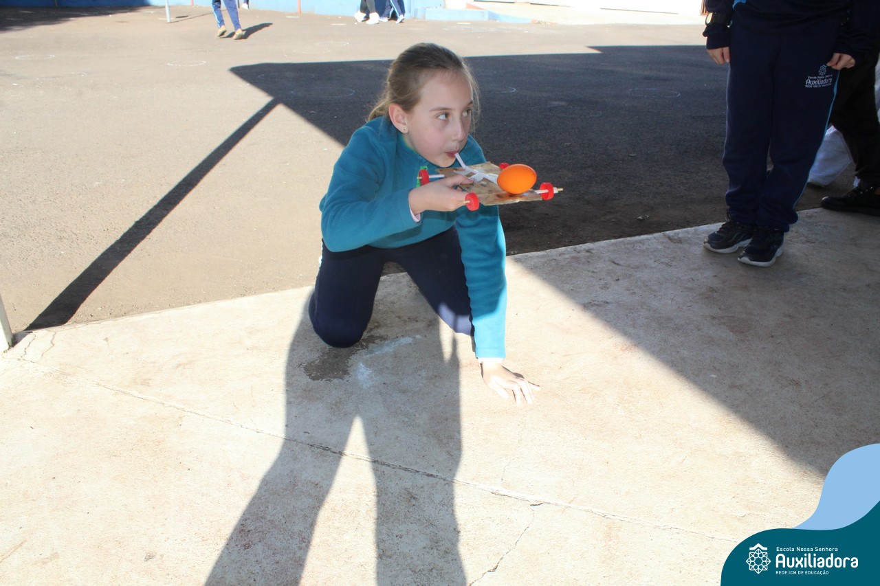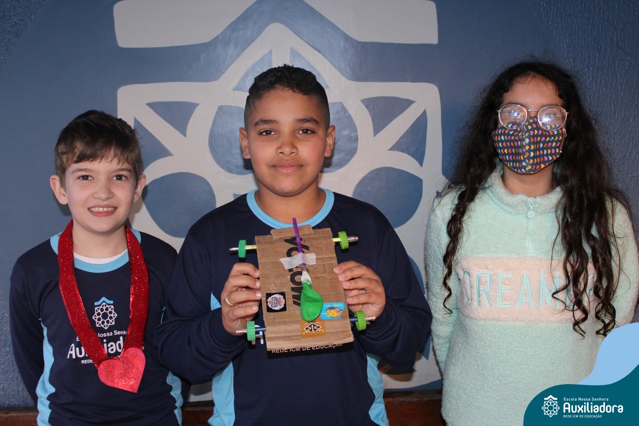 Após estudar o conceito de Kinetic Energy e executar experimentos em sala de aula, os alunos do 4º ano 41 e 42 trabalharam em grupos para construir seus próprios carros impulsionados por balões! Foram levantadas hipóteses sobre a velocidade do balão, a diferença do impulso conforme a quantidade de ar e o peso dos carros, assim como foram feitos planejamentos, construções e testes dos carros.