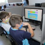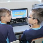 ✔️ Para isso, foram formadas duplas, aonde eles precisavam ajudar uns aos outros para praticar os feelings, numa atividade envolvendo Language, Self-awareness and Technology!!