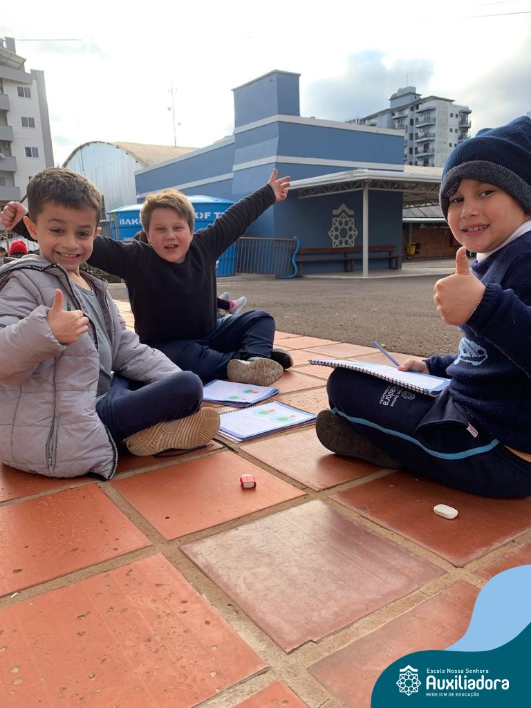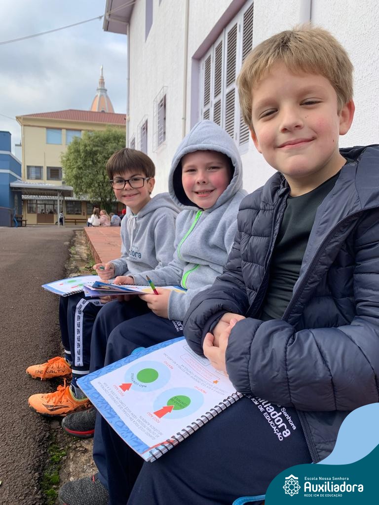 A turma do 2º ano 21 está fazendo descobertas sobre o Diagrama do Círculo de Controle, que consiste em classificar as coisas da nossa vida que podemos controlar e as coisas que não podemos controlar. Assim, é possível gastar o tempo e energia nas coisas que dependem das nossas ações. Após o estudo das atividades do livro didático, a turma aproveitou o pátio da escola para uma atividade lúdica complementar. Foi um momento muito rico!