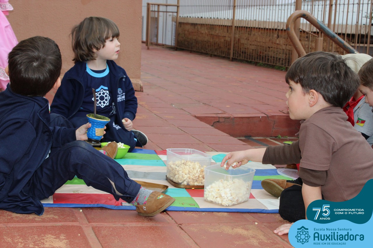 As prendas e gaúchos trouxeram pipoca, chimarrão e tererê para o momento de integração entre as turmas. ❤️💛💚