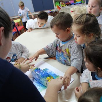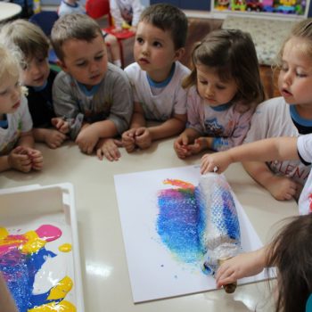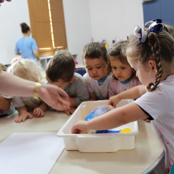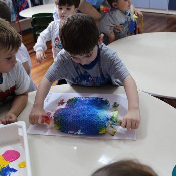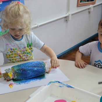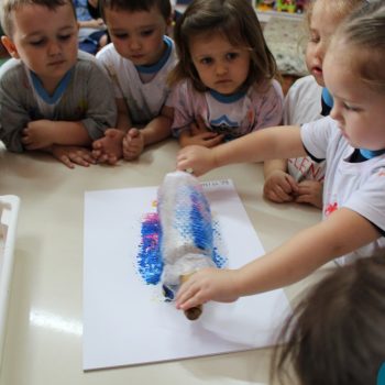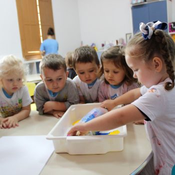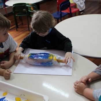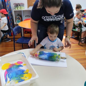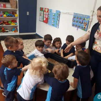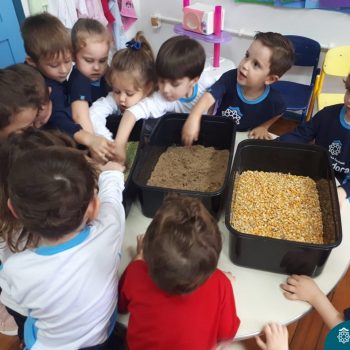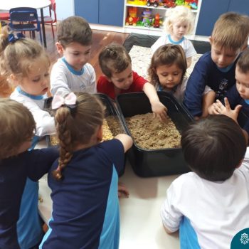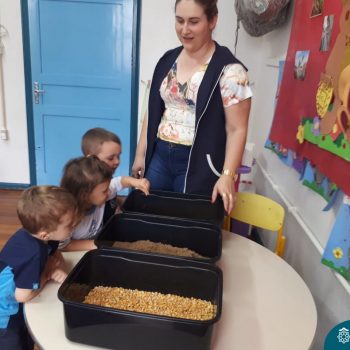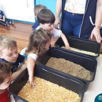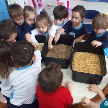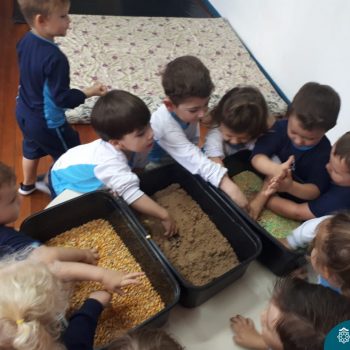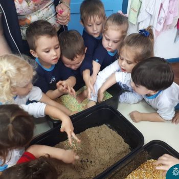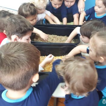 Trabalhando com atividades sensoriais. Com intuito de experienciar e vivenciar texturas a turma do Maternal 1 B da Profe Jaque está trabalhando com materiais diversos entre eles se destacam a areia, milho, o isopor, a tinta e outros. São atividades que estimulam a aprendizagem e a imaginação na criança!
