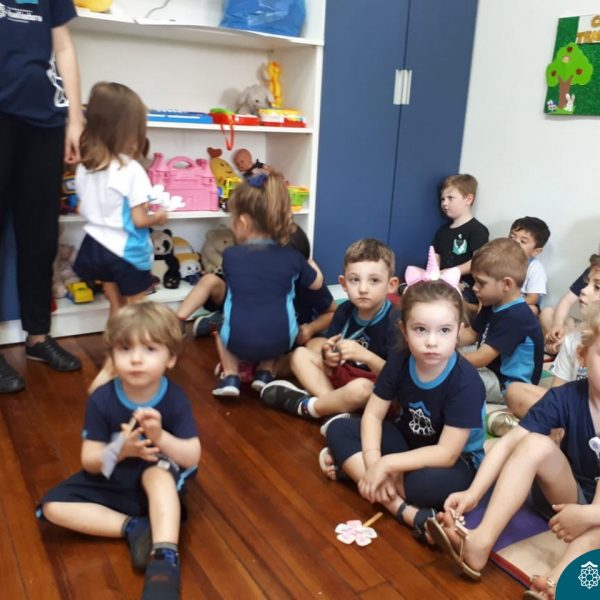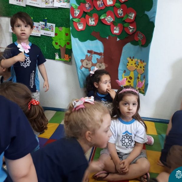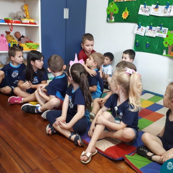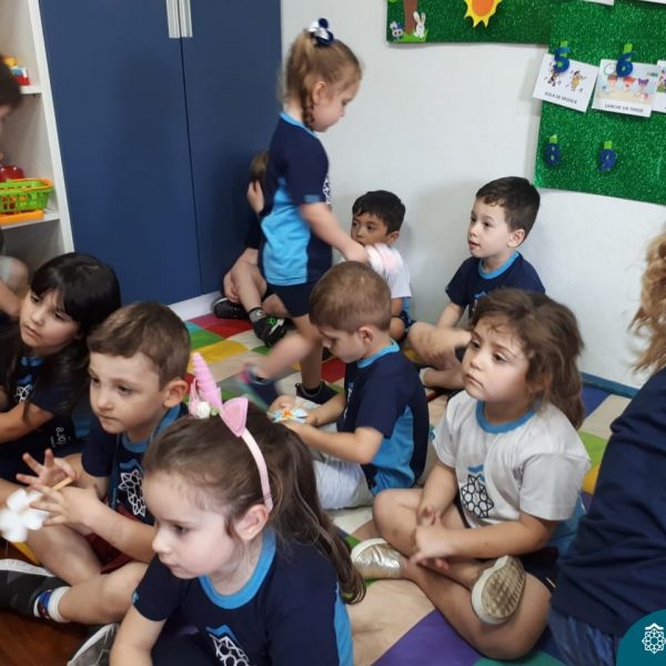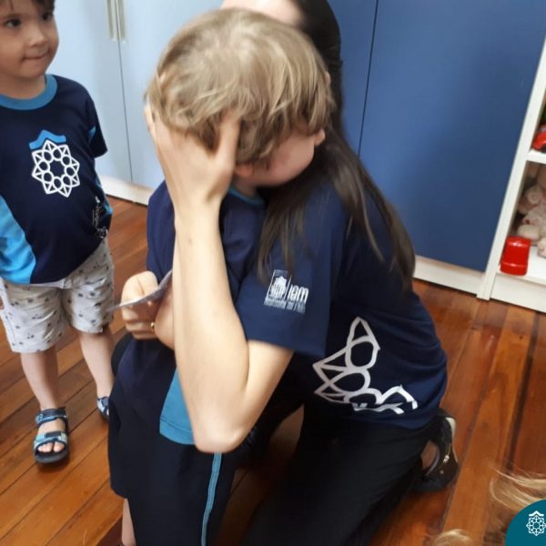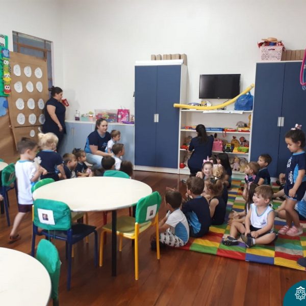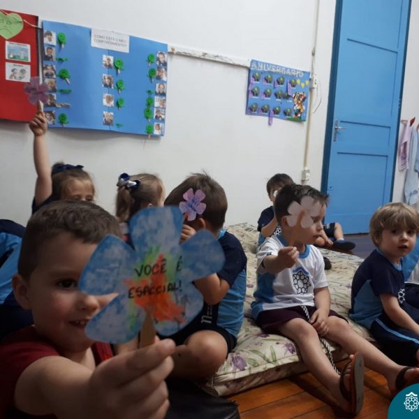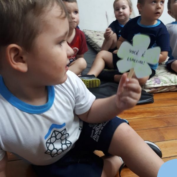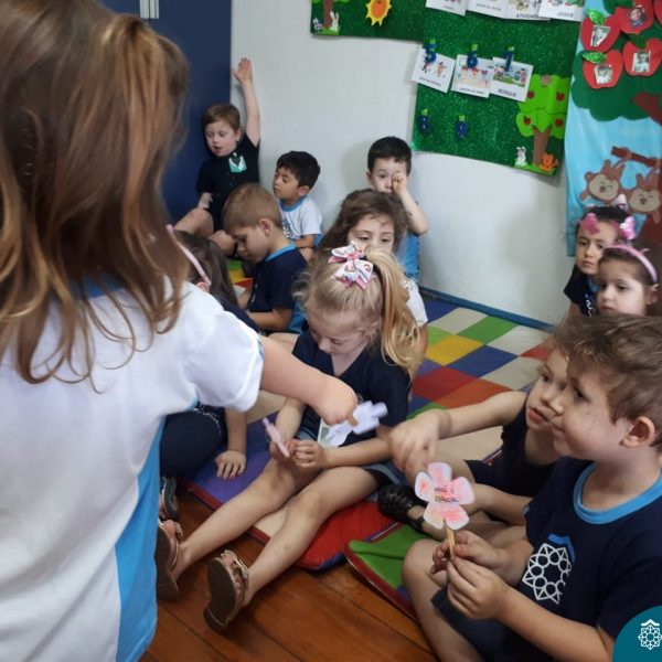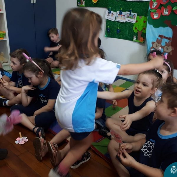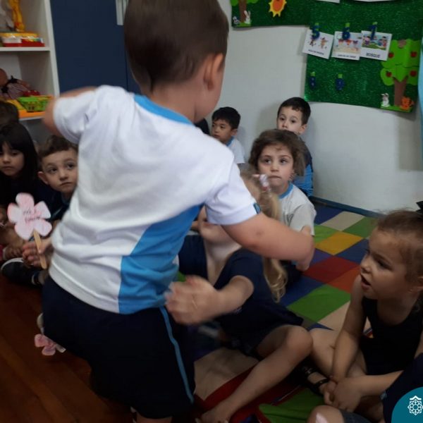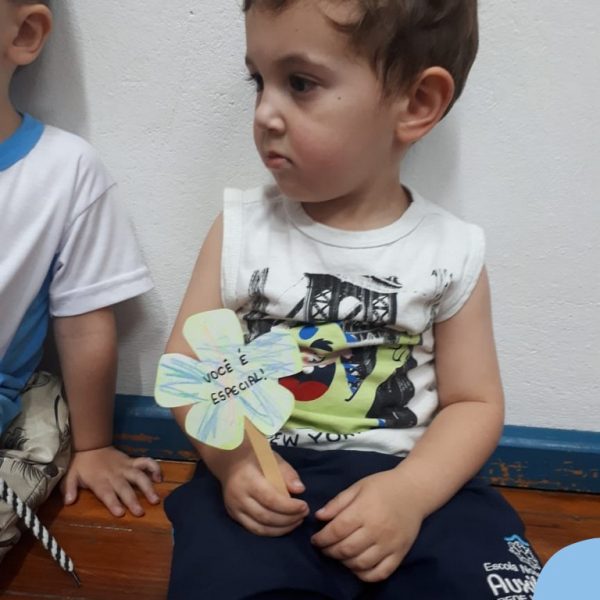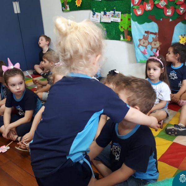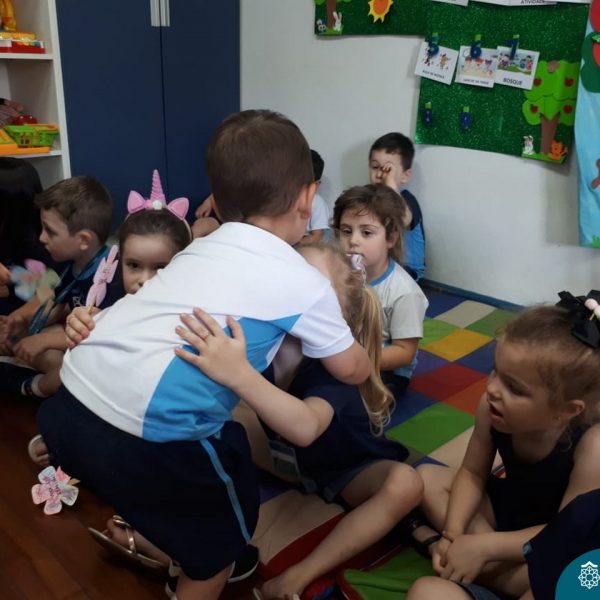 Assim como na história a Margarida Feiorenta nós também precisamos de um abraço! Neste intuito a turma do Maternal 1 B da Profe Jaque foi até a turma da Profe Tais levar uma flor e um abraço aos amigos.