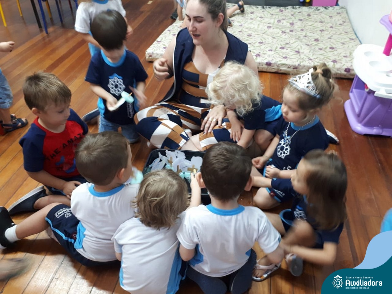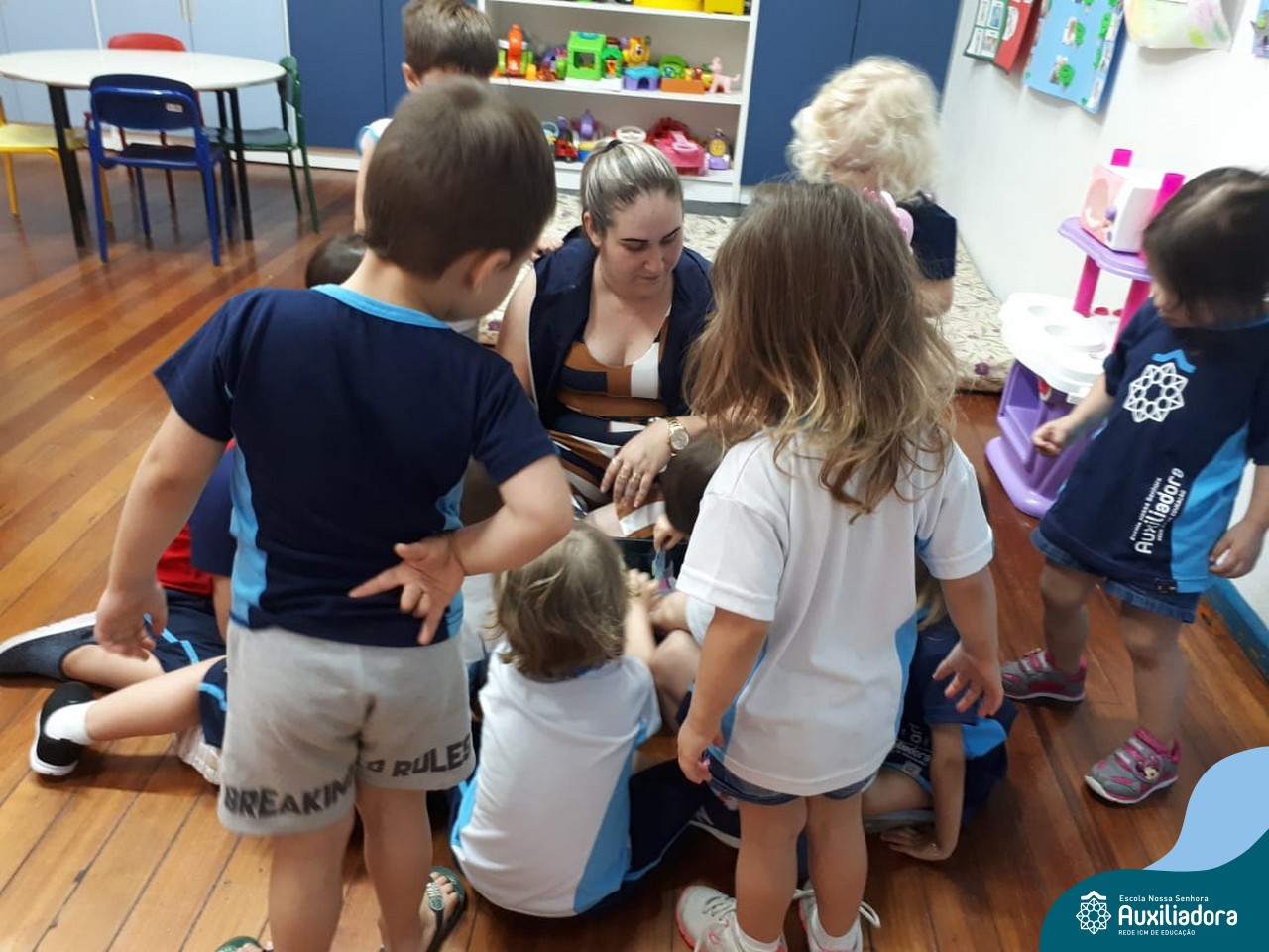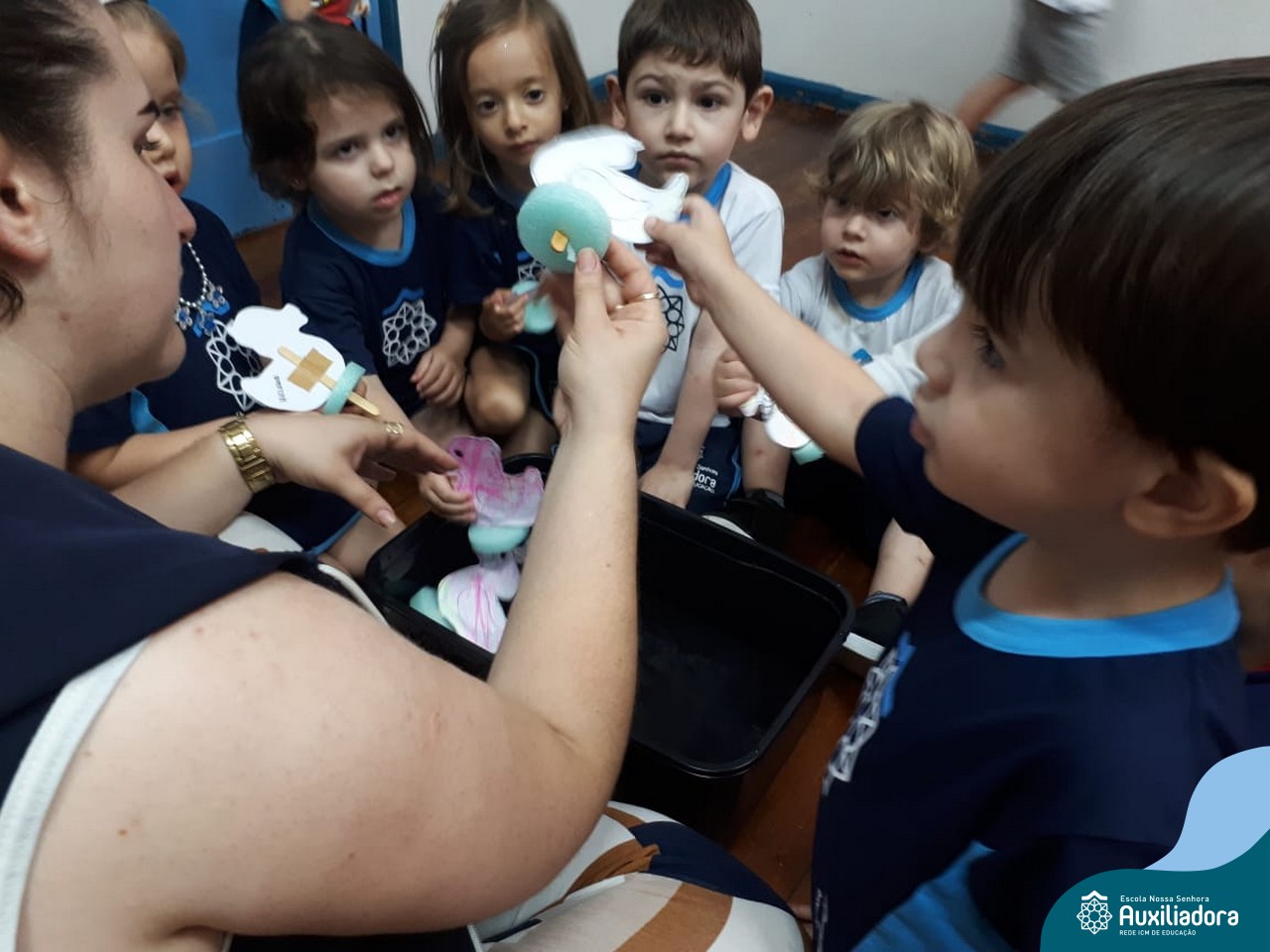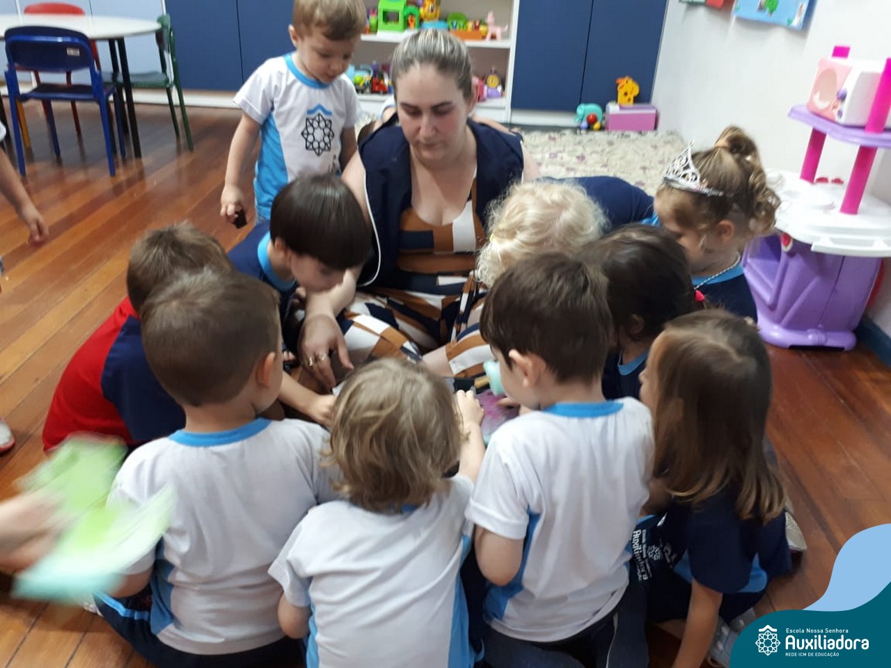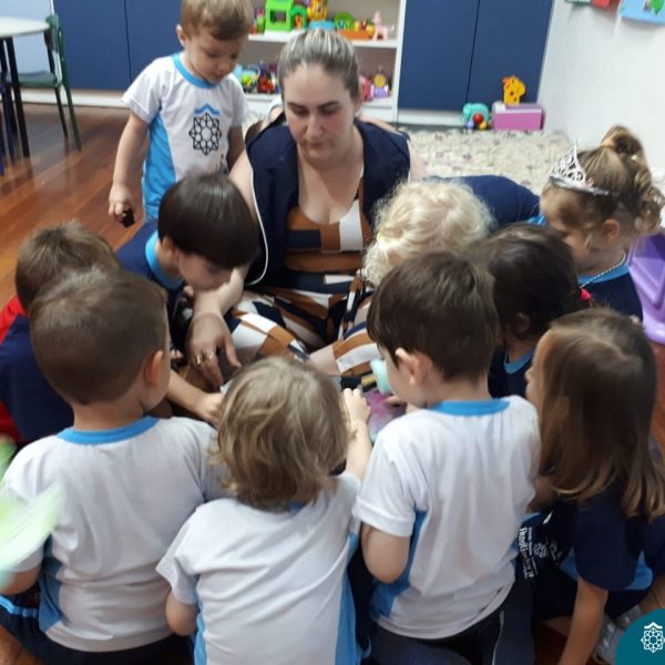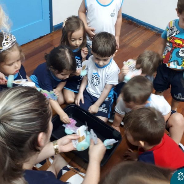A turma do Maternal 1 B da Profe Jaque trabalhou os animais da Fazenda. A atividade que mais fez a alegria das crianças foi a do patinho flutuando na água, atividade sensorial que desenvolve a imaginação do aluno.