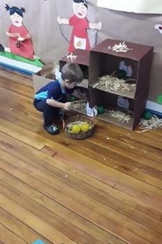 š°A PĆ”scoa estĆ” chegando! Mas quem, realmente, pƵe os ovos? AtravĆ©s da história “O mistĆ©rio do ovo” foi realizada a atividade de juntar os ovos do galinheiro e as crianƧas do Maternal 2 tambĆ©m apresentaram a pesquisa sobre a alimentação do coelho.š° Maternal 2 – š©āš« Profe Tais.