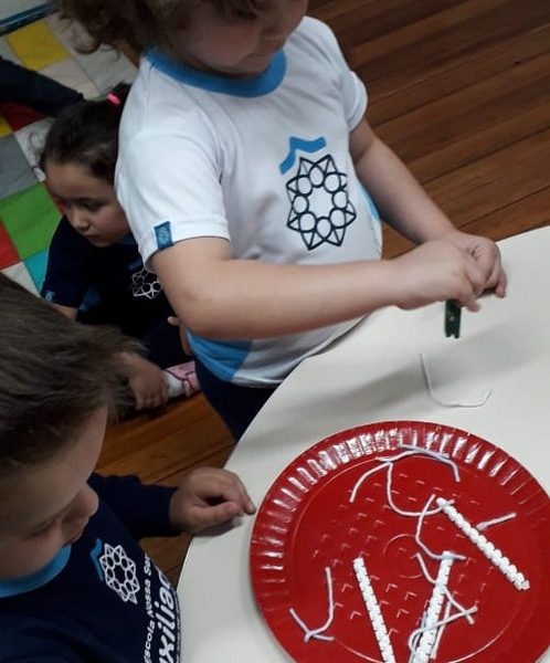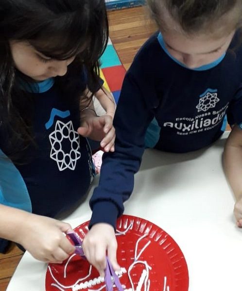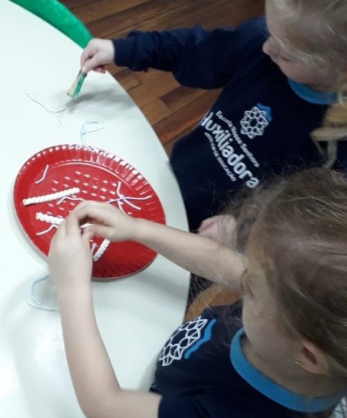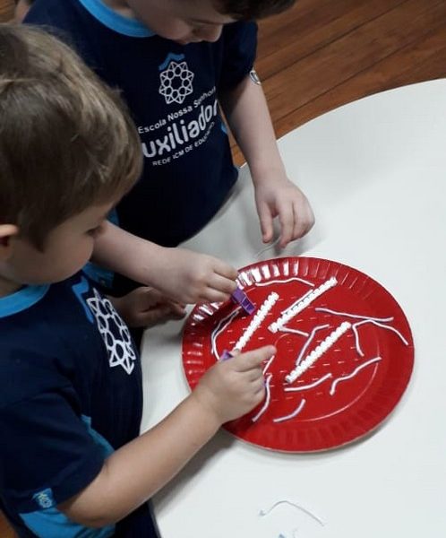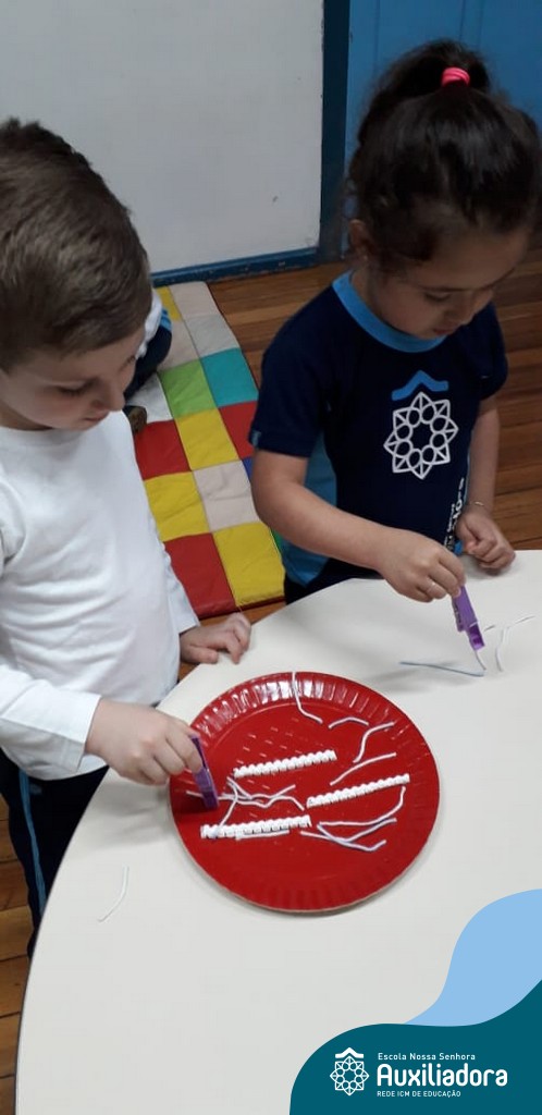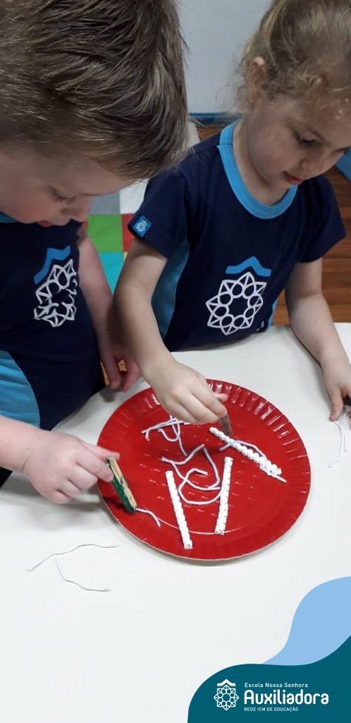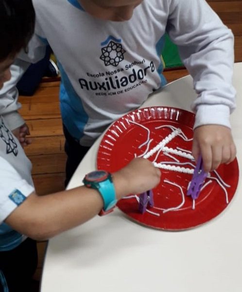 A brincadeira “Tentando pegar o bicho da seda” proporcionou muita alegria e imaginação. Além do brincar, foi desenvolvida a concentração, paciência e a coordenação motora fina das crianças.