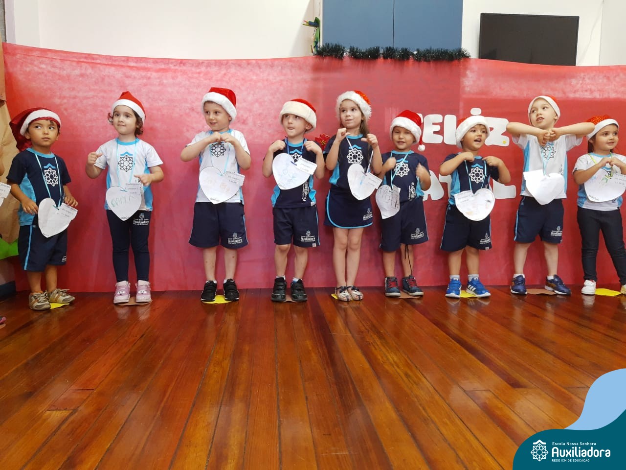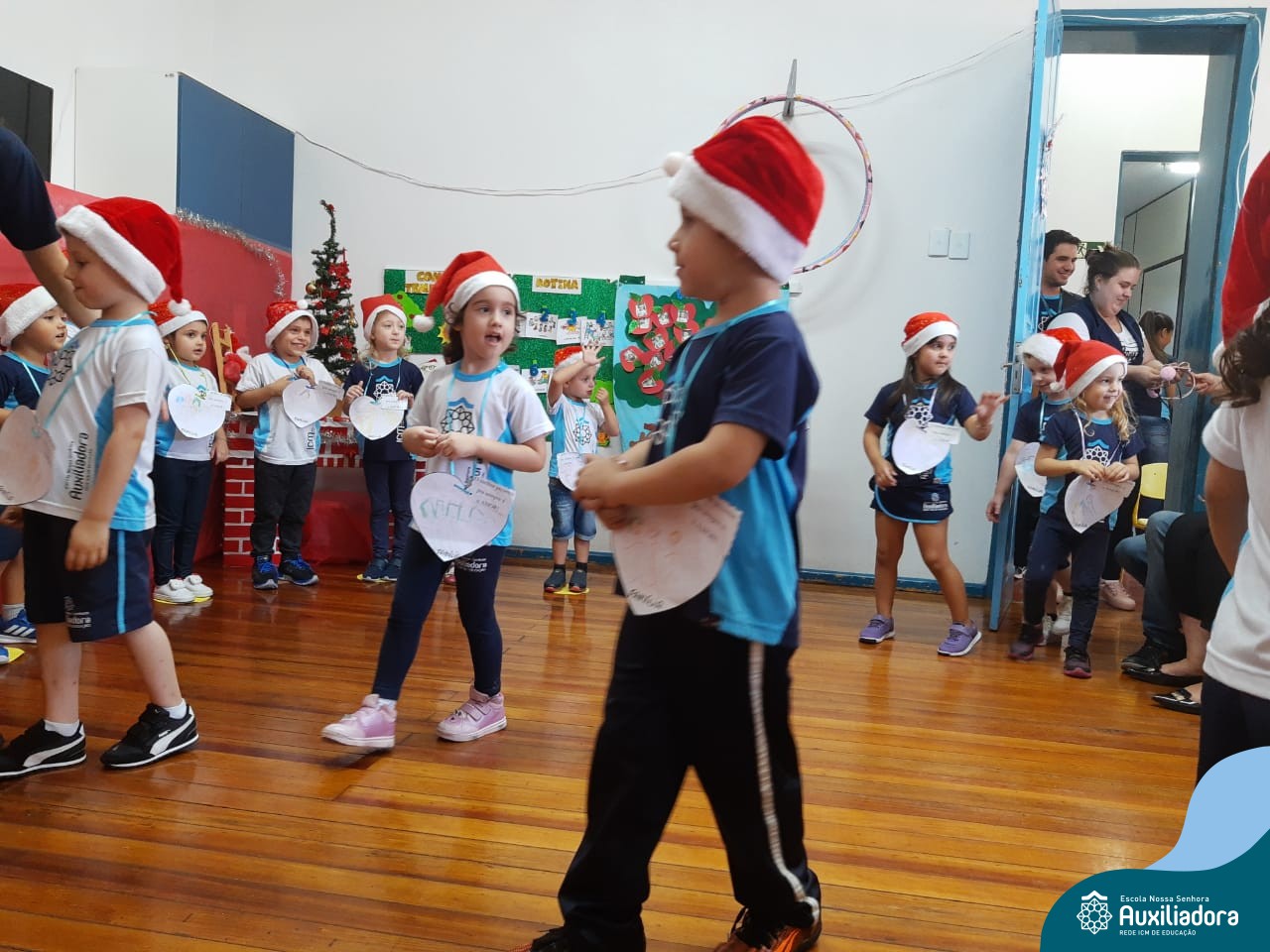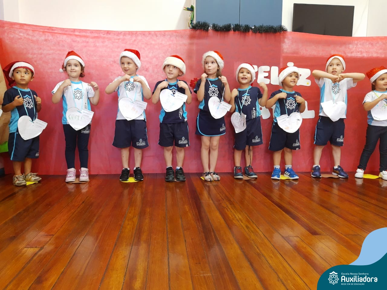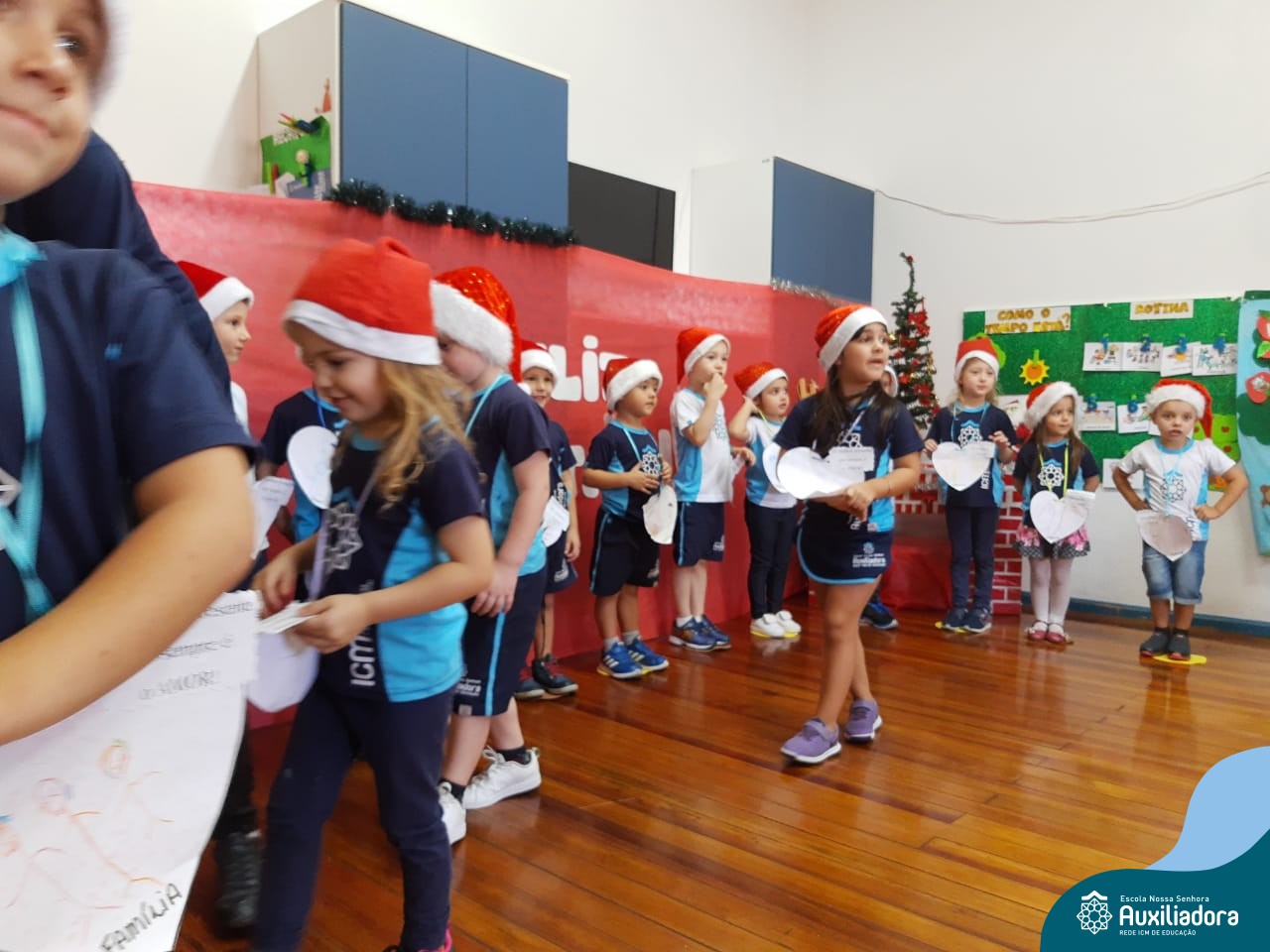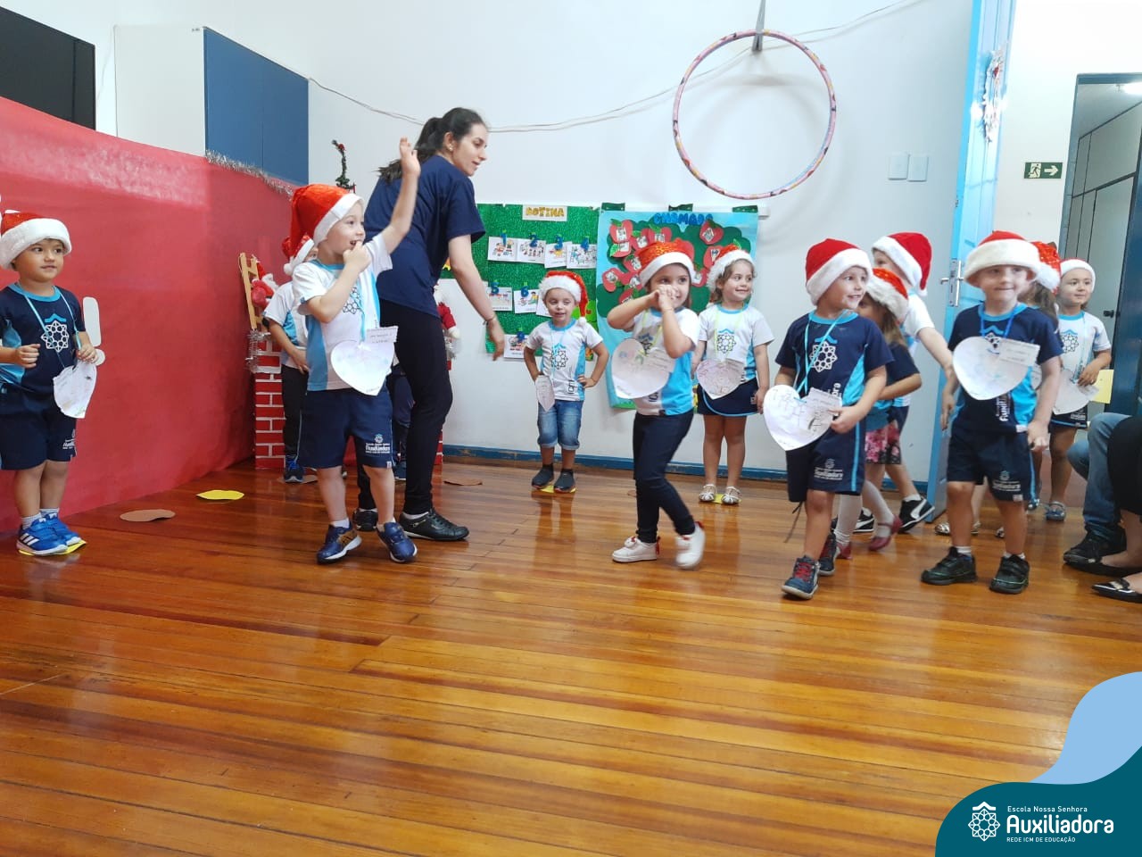 No encerramento das atividades do Maternal 2 teve homenagens aos pais, apresentação das crianças e a chegada do Papai Noel.