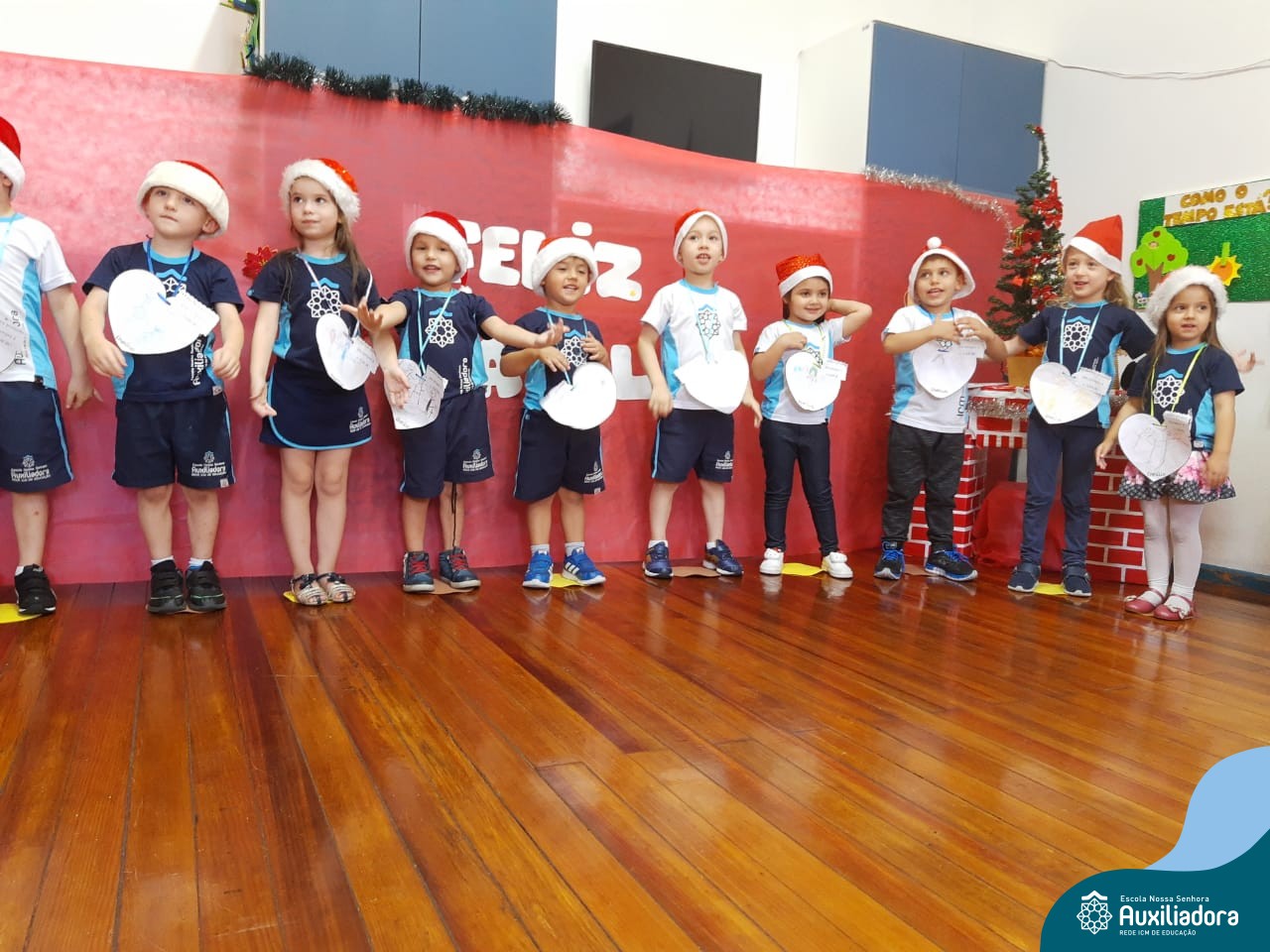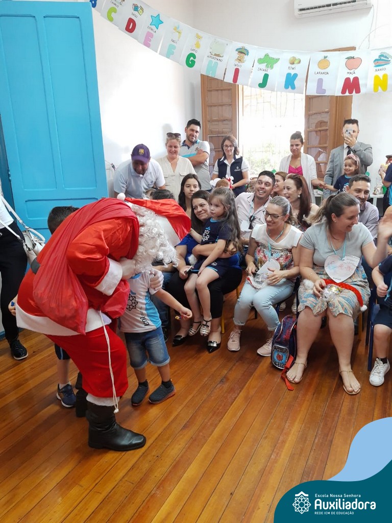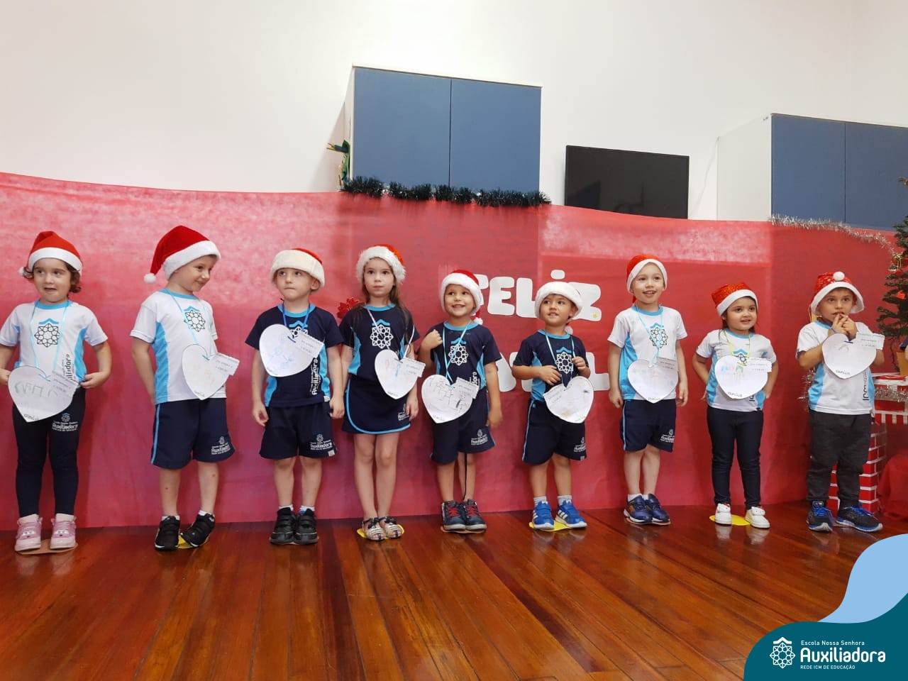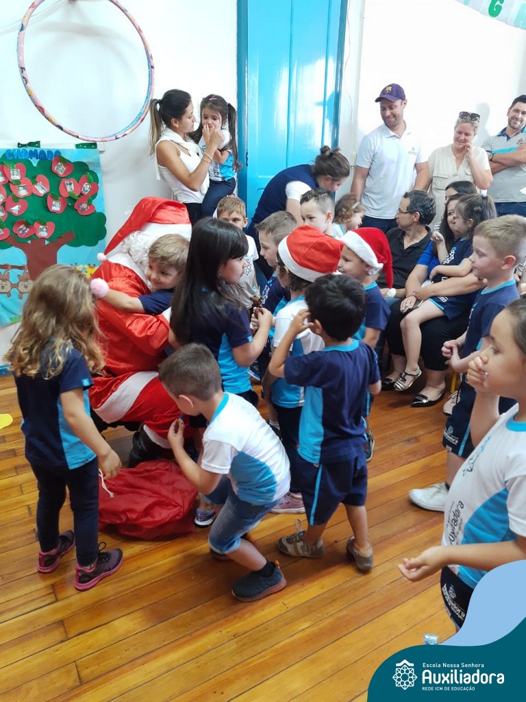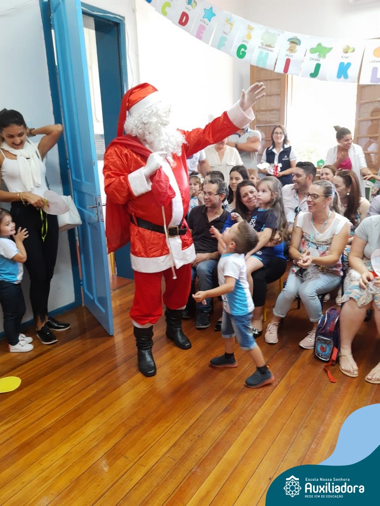 No encerramento das atividades do Maternal 2 teve homenagens aos pais, apresentação das crianças e a chegada do Papai Noel.