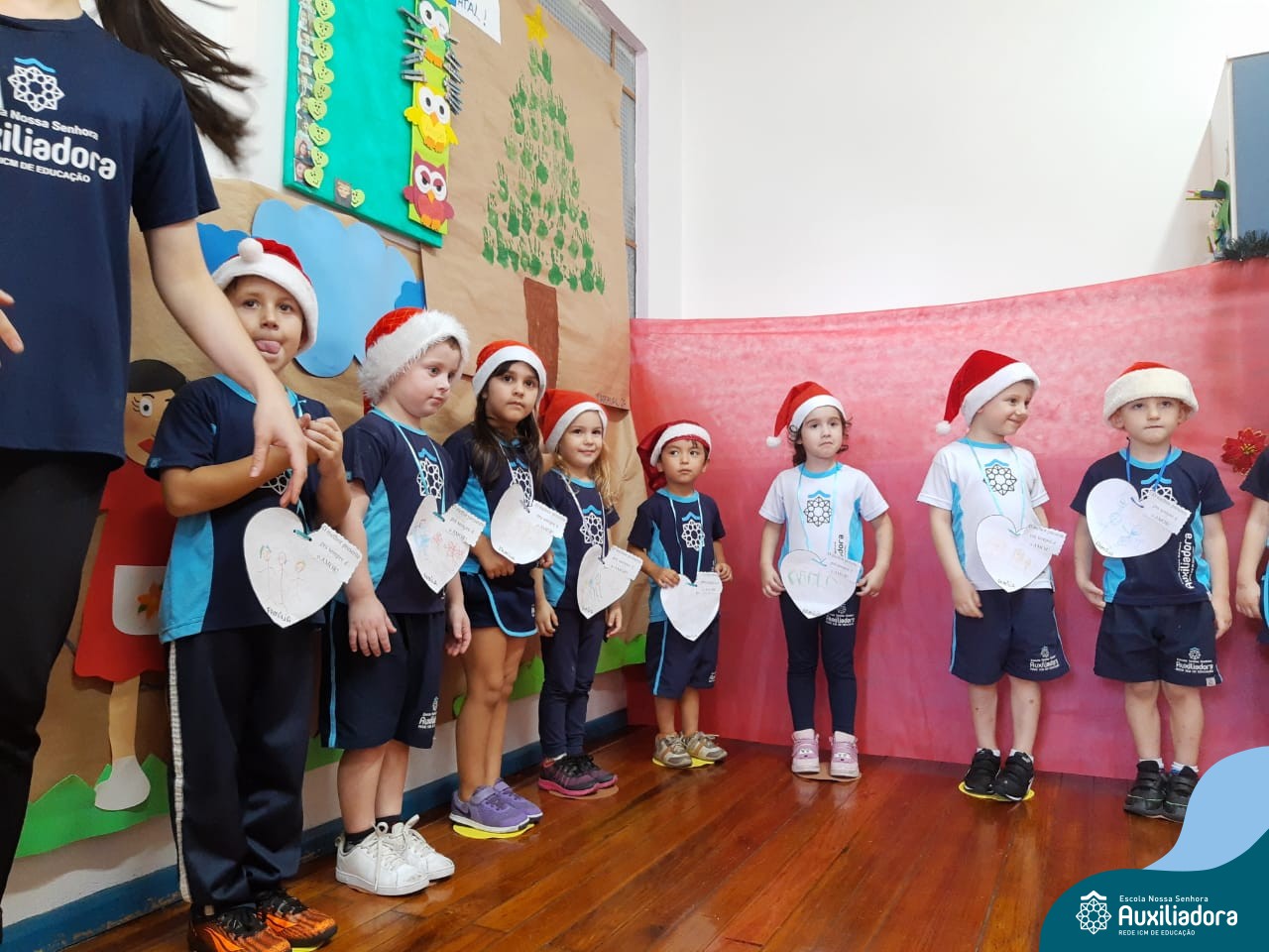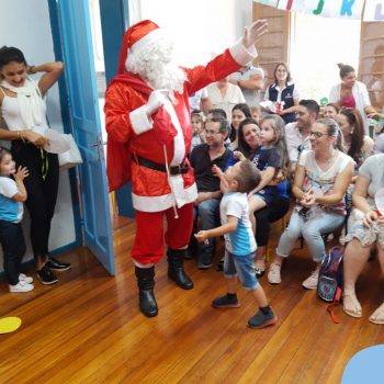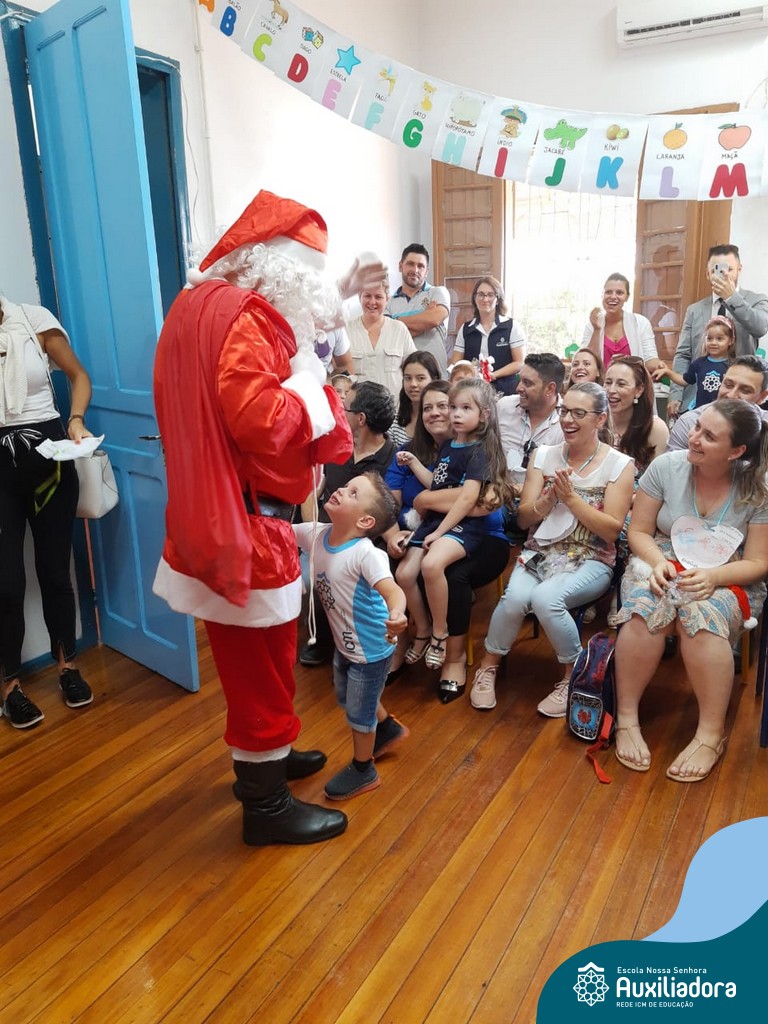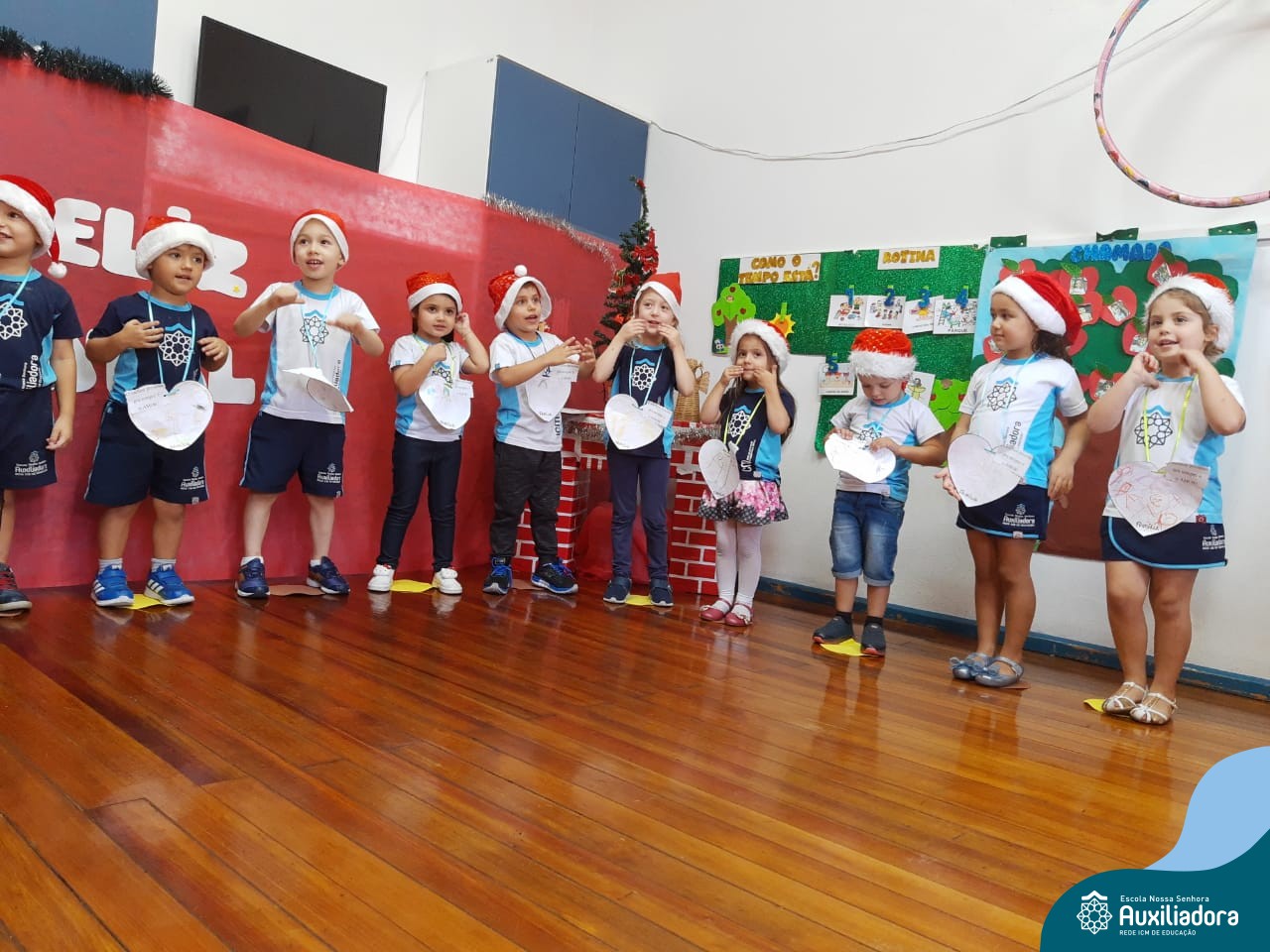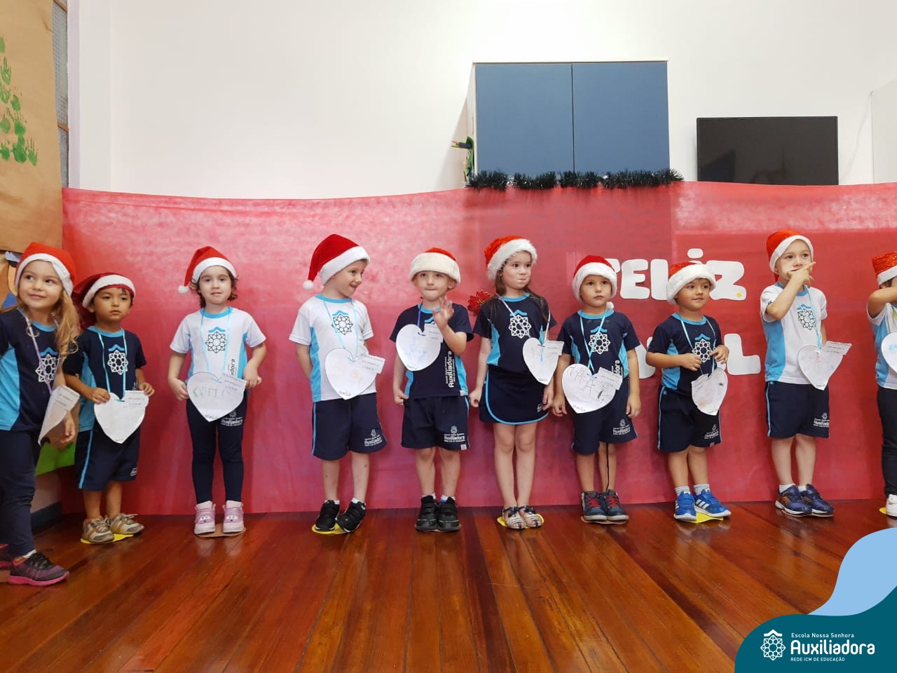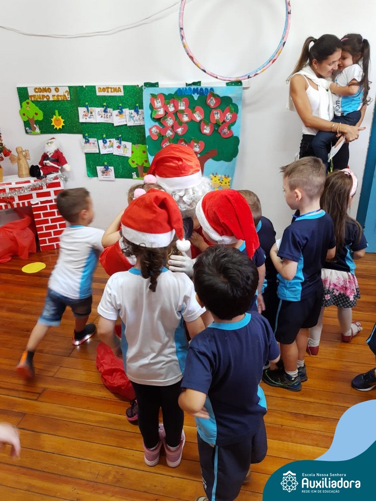 No encerramento das atividades do Maternal 2 teve homenagens aos pais, apresentação das crianças e a chegada do Papai Noel.