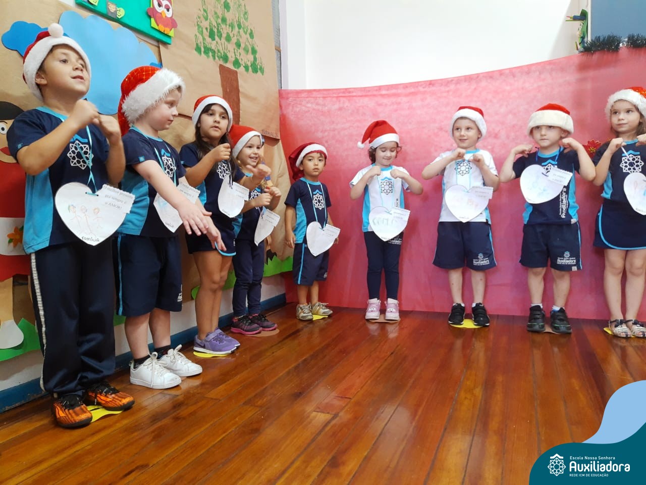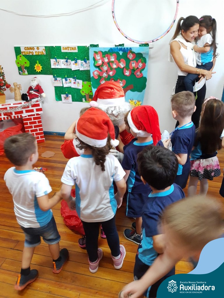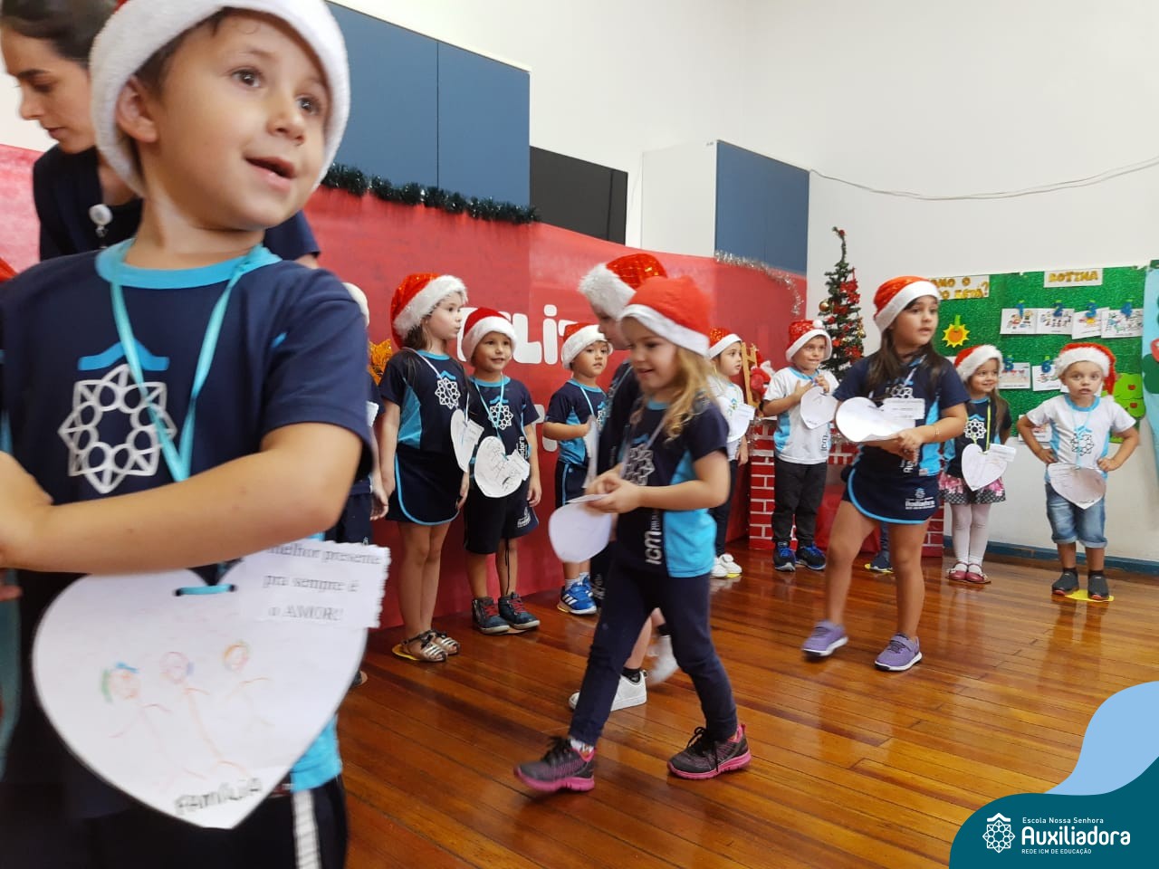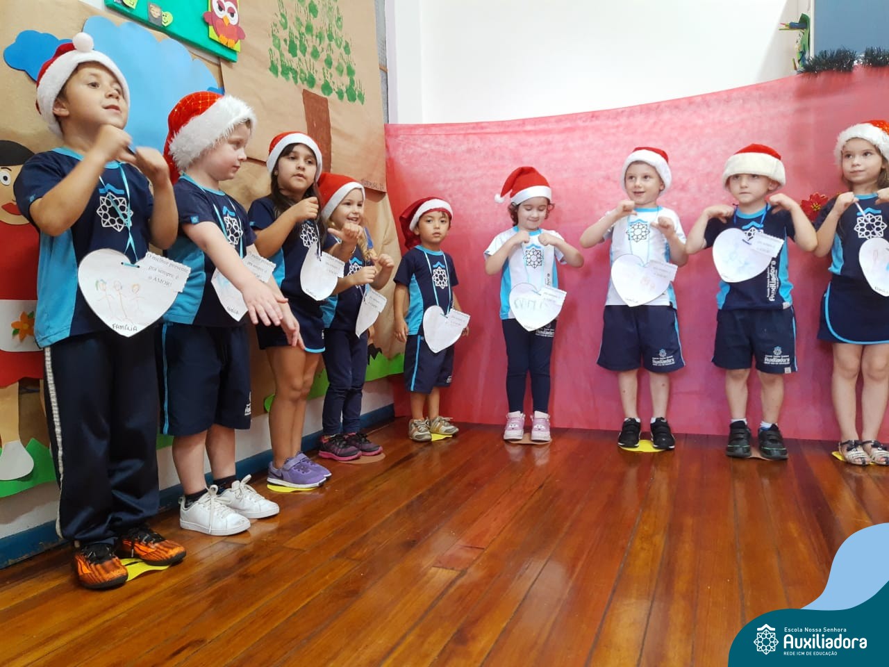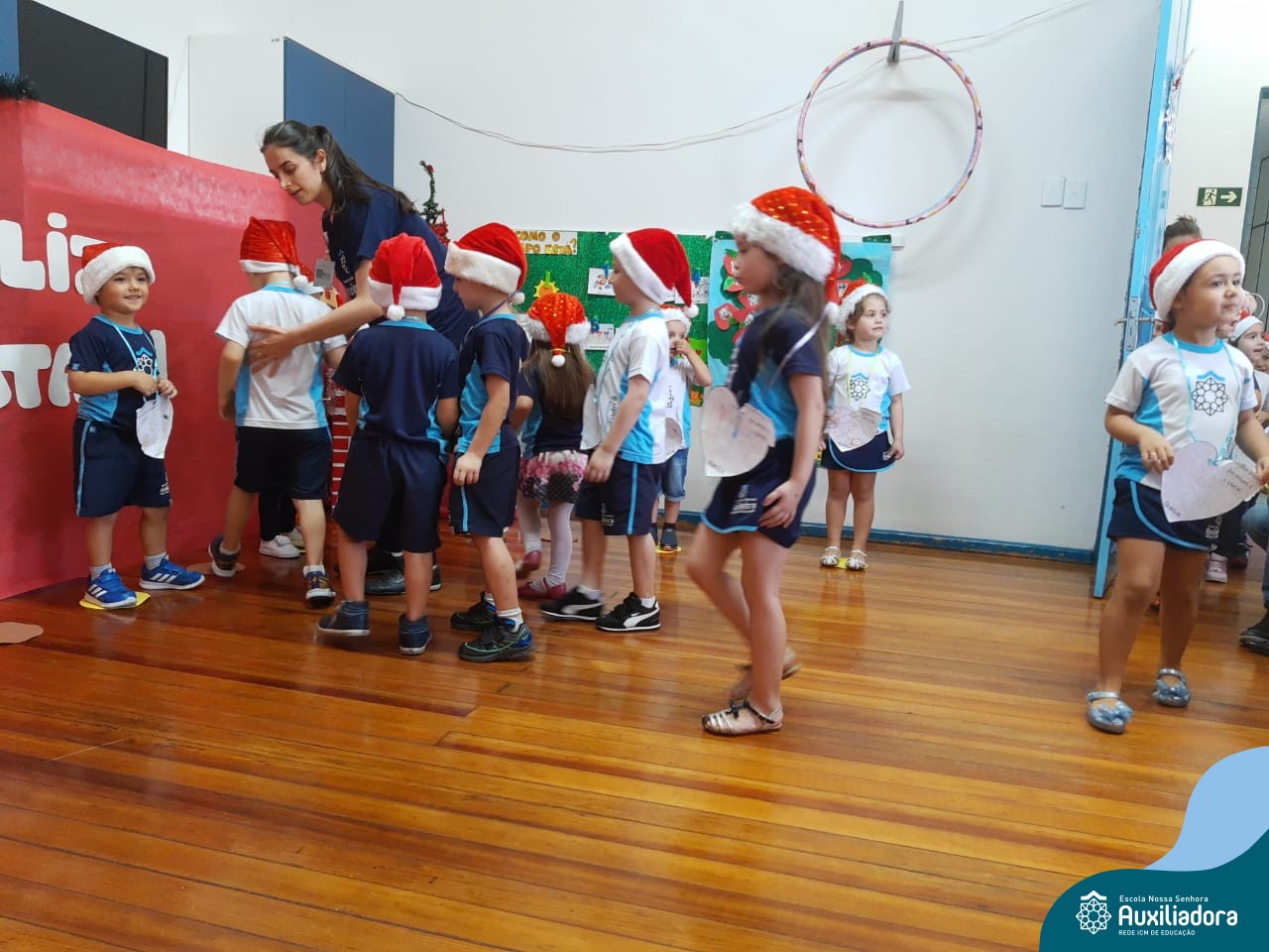 No encerramento das atividades do Maternal 2 teve homenagens aos pais, apresentação das crianças e a chegada do Papai Noel.