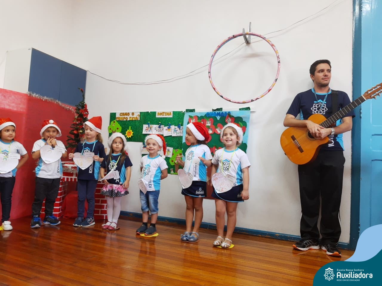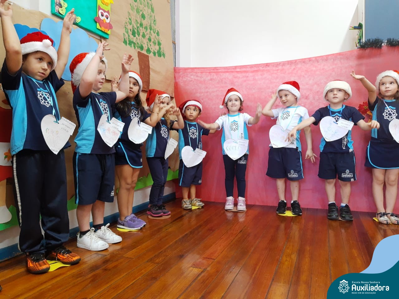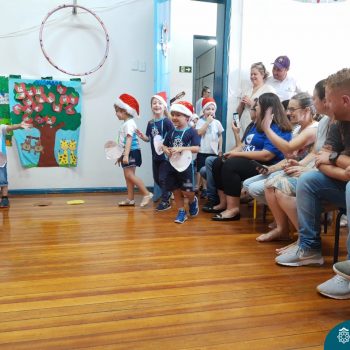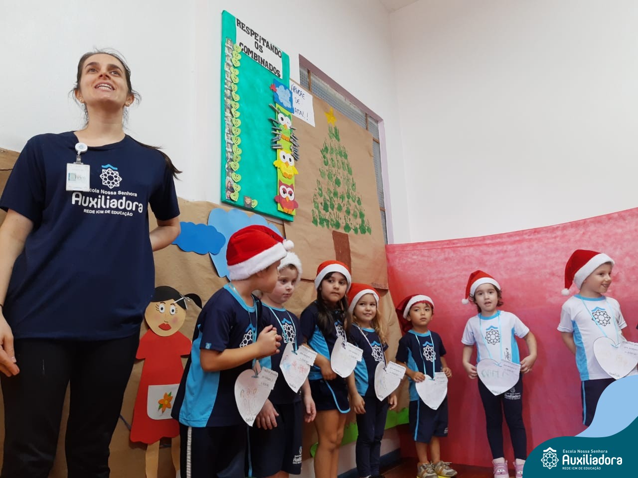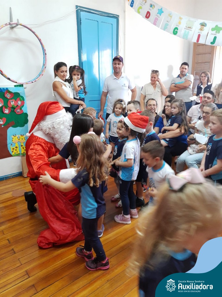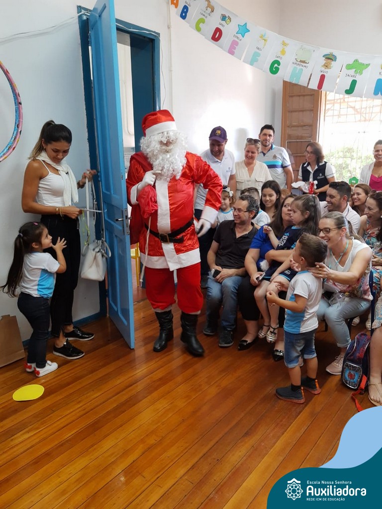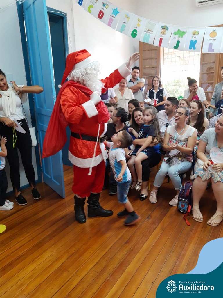 No encerramento das atividades do Maternal 2 teve homenagens aos pais, apresentação das crianças e a chegada do Papai Noel.