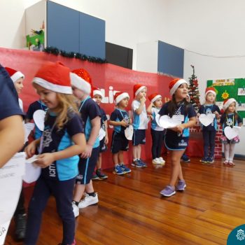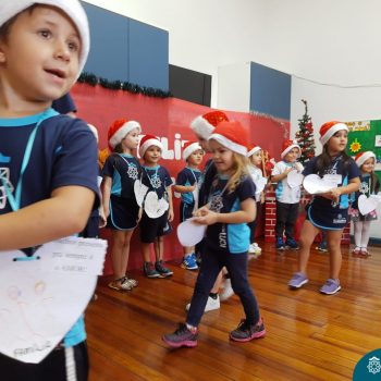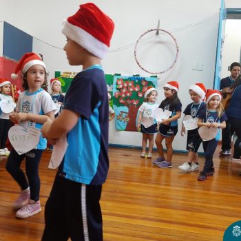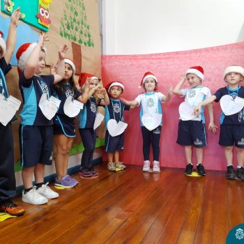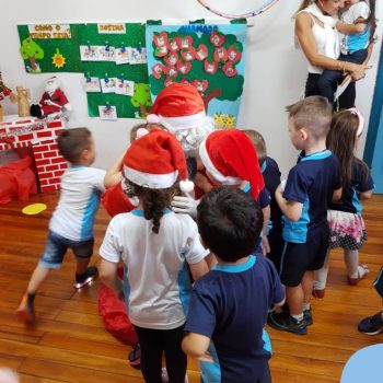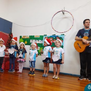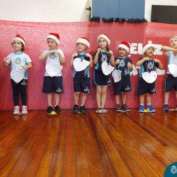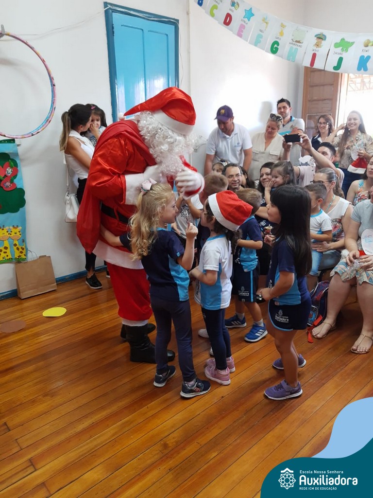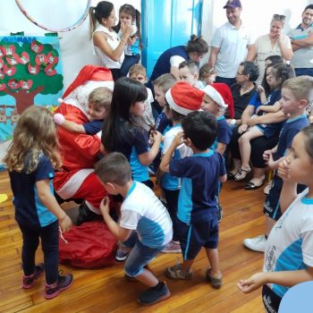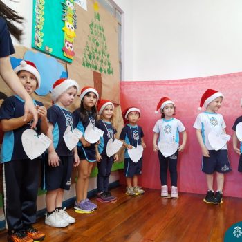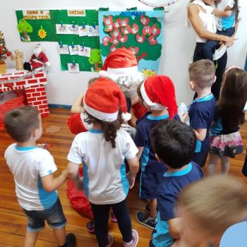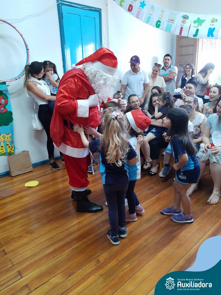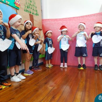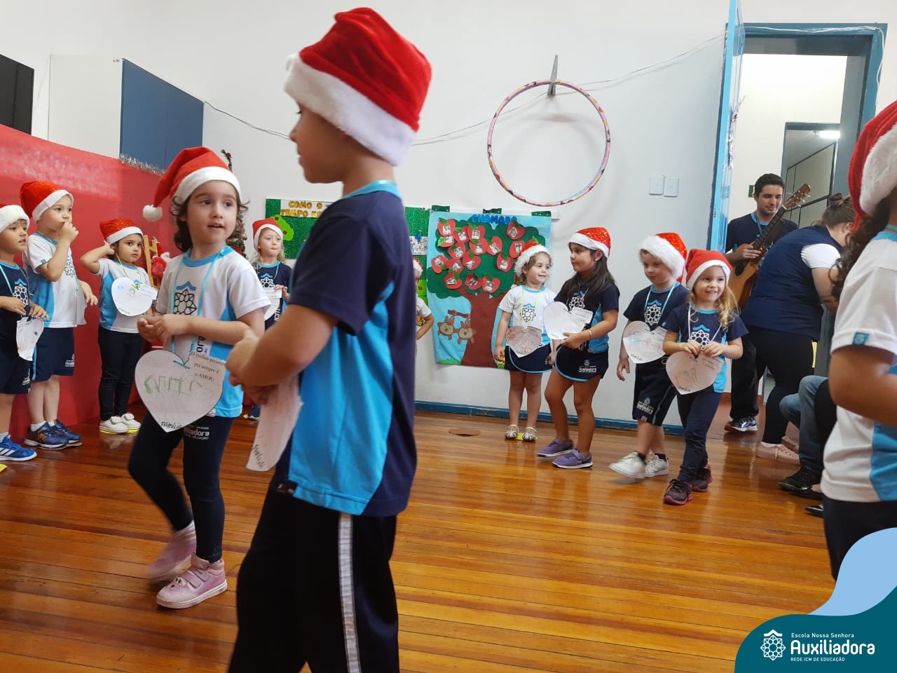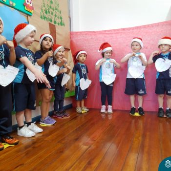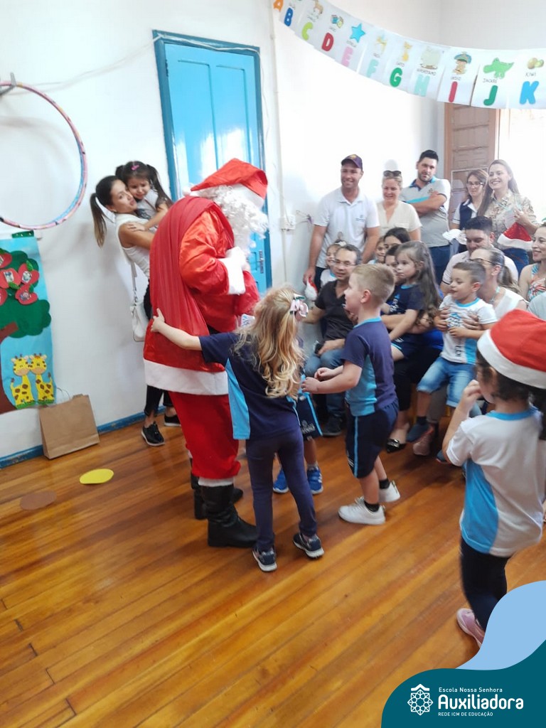 No encerramento das atividades do Maternal 2 teve homenagens aos pais, apresentação das crianças e a chegada do Papai Noel.