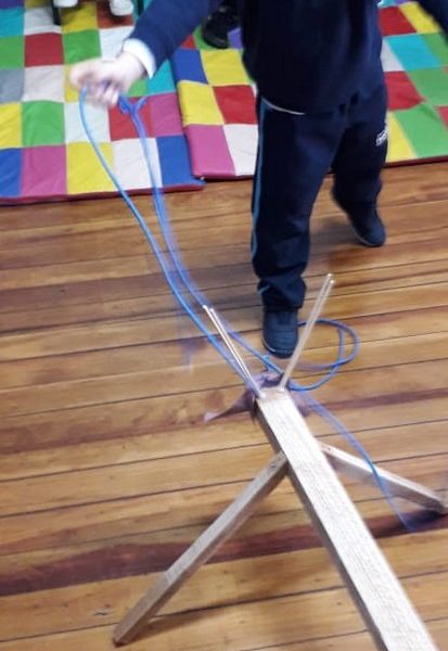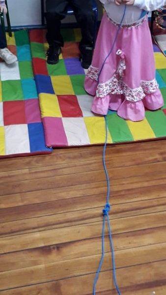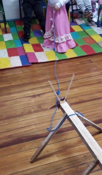 Para cultivar a tradição gaúcha foi realizada a brincadeira do” Laço da Vaca Parada”, que além de ser uma forma divertida de aprender, desenvolve a coordenação motora das crianças.