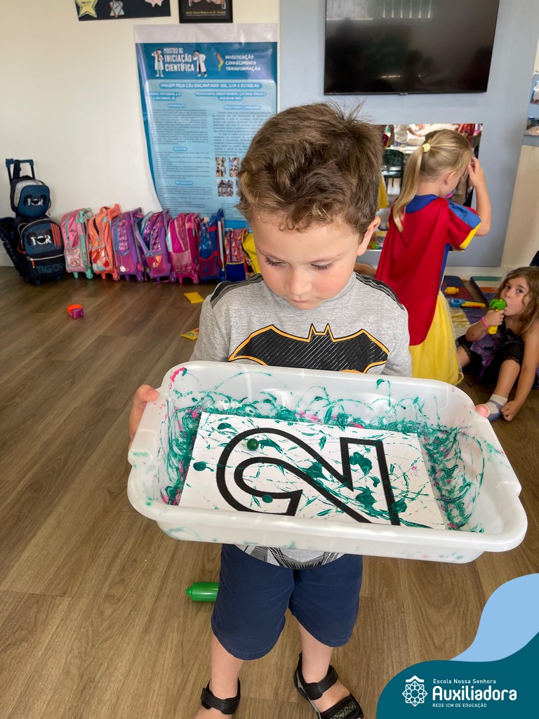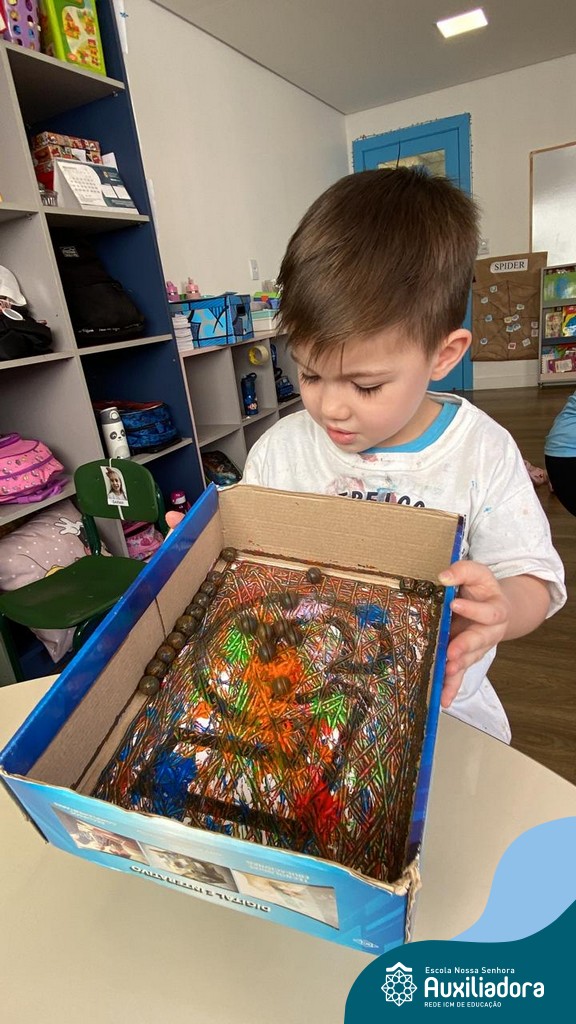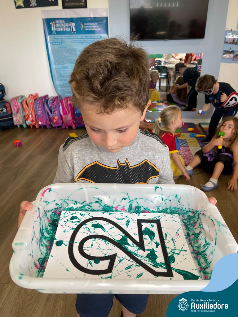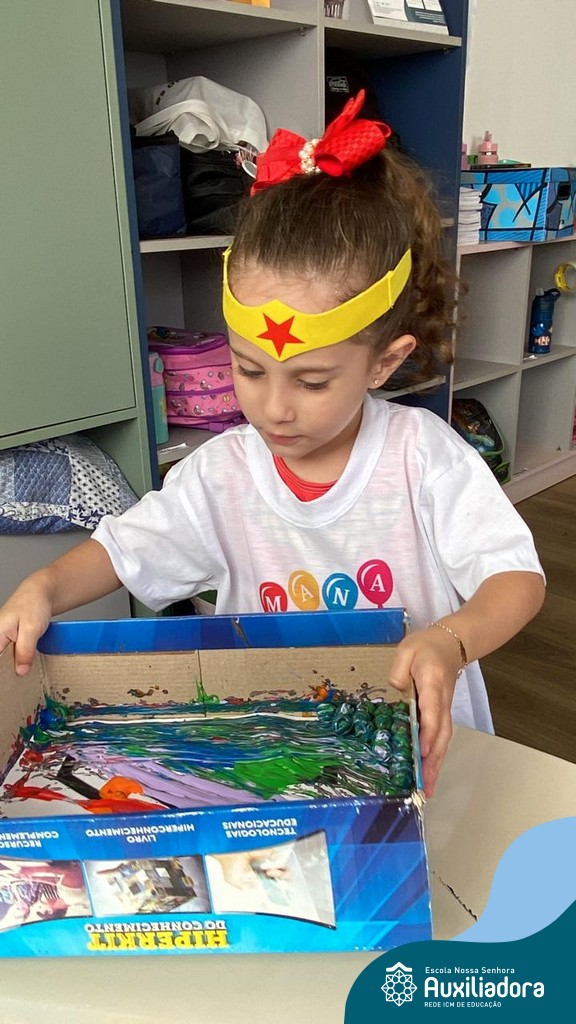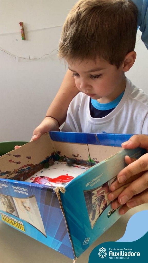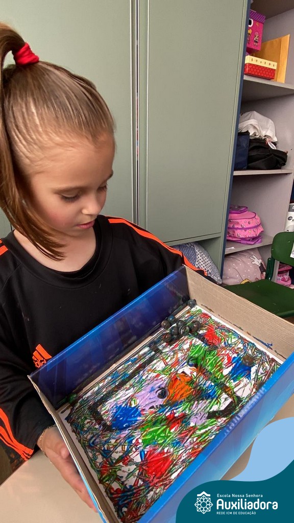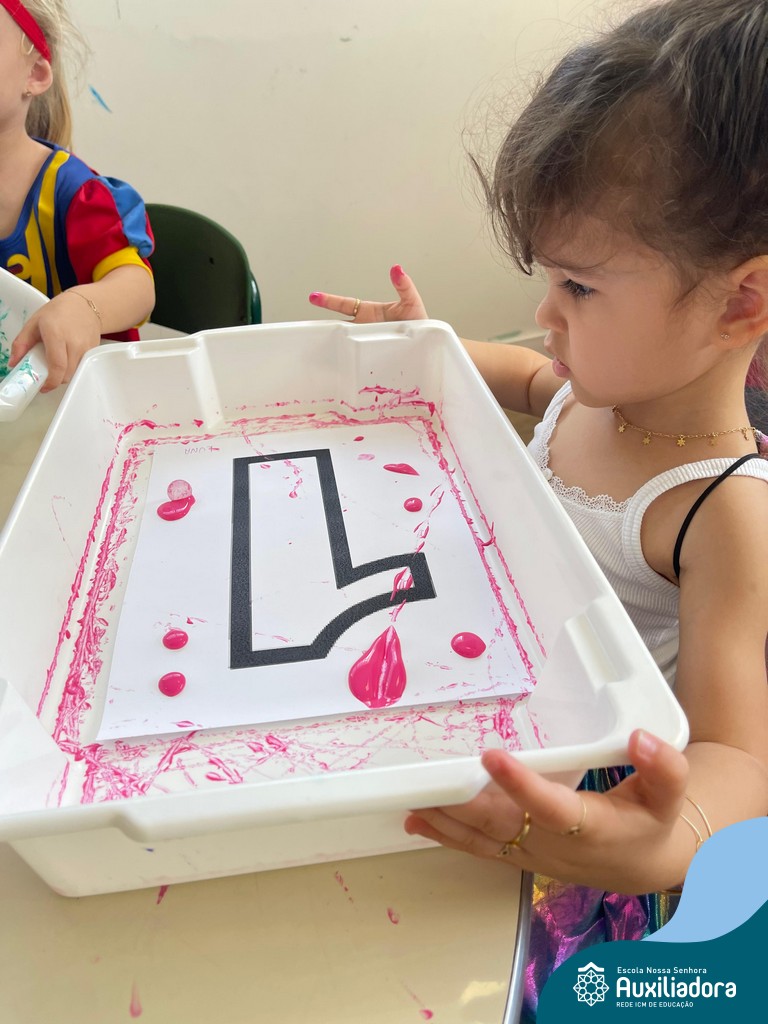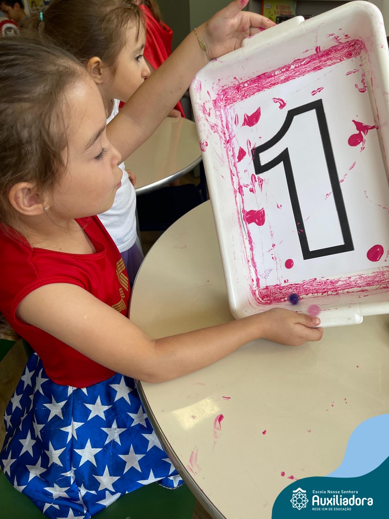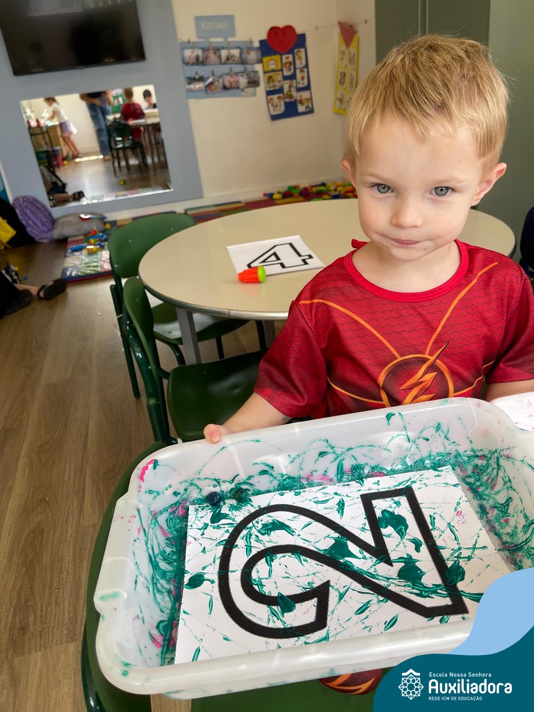Esta semana realizamos uma atividade divertida e educativa com os numerais de 0 a 5. As crianças escolheram um número, identificaram-no e, em seguida, exploraram a técnica da ‘pintura em movimento’. Dentro de uma caixa de papelão, colocamos o número escolhido, pingos de tintas coloridas e algumas bolinhas de gude. Ao movimentar a caixa, as bolinhas rolavam e espalhavam as cores, criando um efeito único e encantador nos números! Foi uma experiência lúdica que estimulou o reconhecimento dos numerais e a criatividade. 🥰