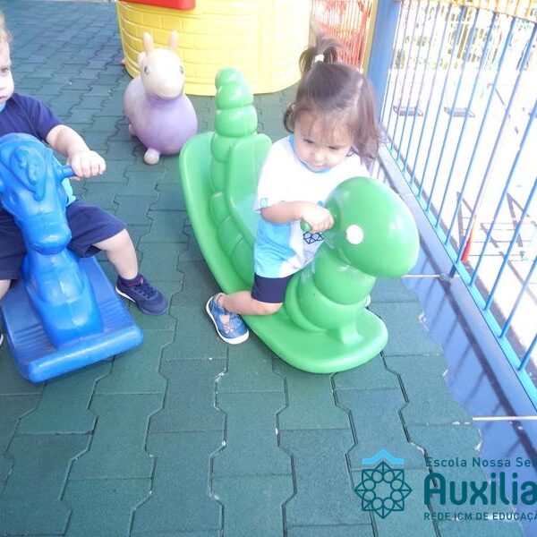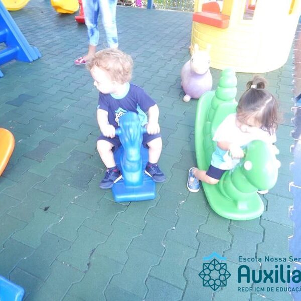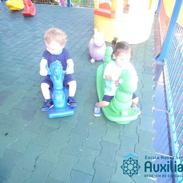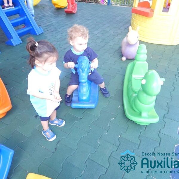 As crianças do Maternal I se divertem e aprendem brincando com as professoras Josiane e Patricia. As tardes são alegres e divertidas juntos com os colegas. A aprendizagem se realiza diariamente cantando, brincando, ouvindo histórias, pintando e registrando momentos mágicos. Venha você também fazer parte de nossas tardes.