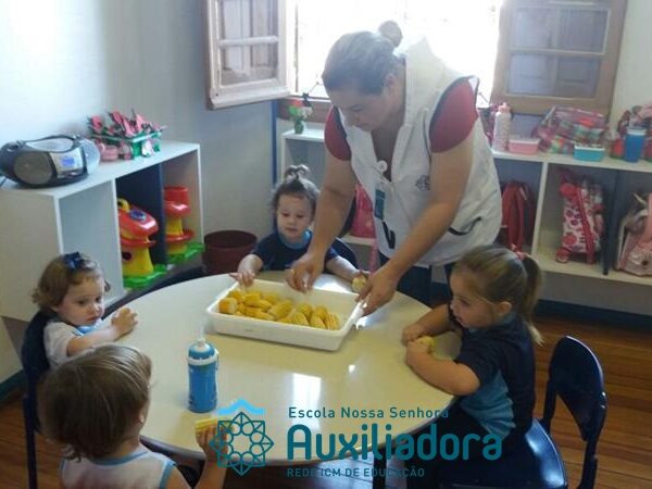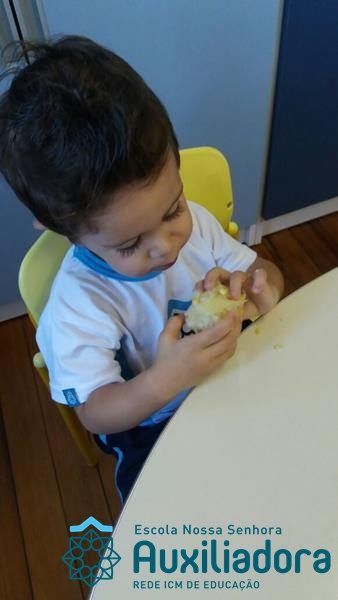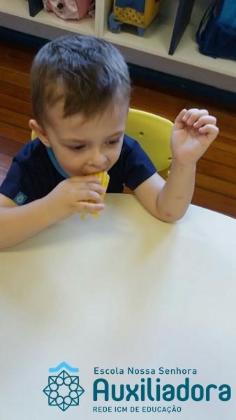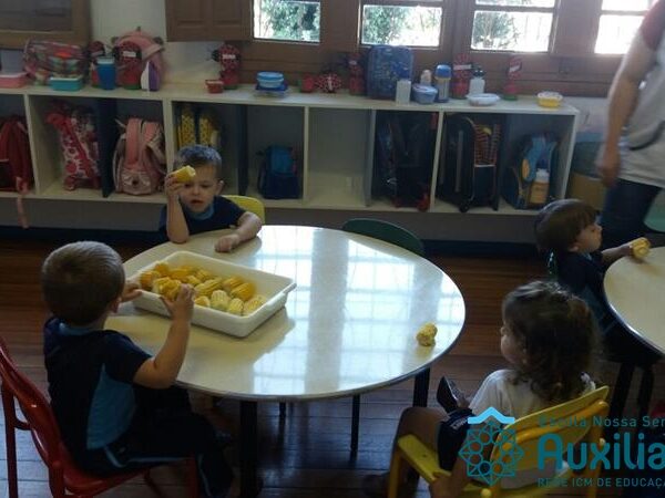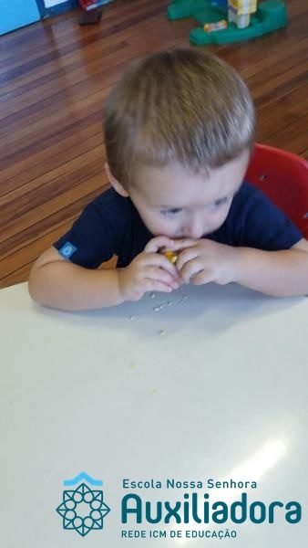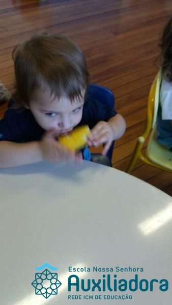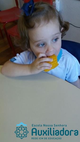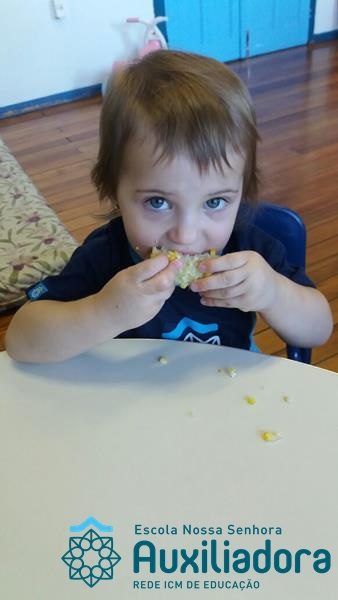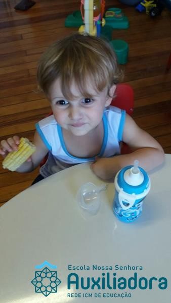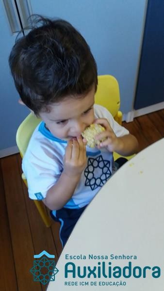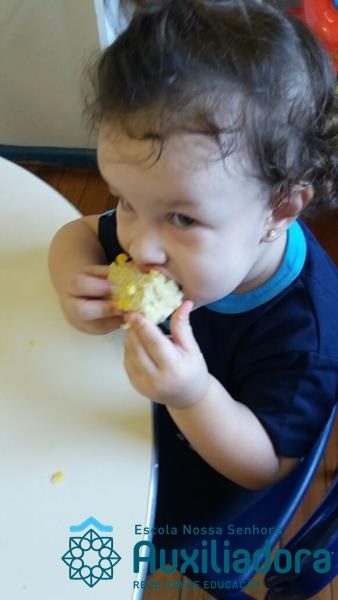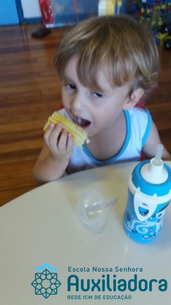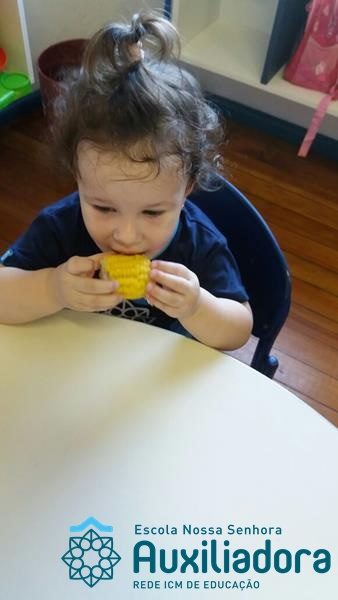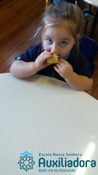 Uma alimentação saudável é essencial em todas as fases de nossa vida, mas em cada uma delas a alimentação tem uma importância diferente. Quando somos crianças, nossa alimentação é voltada para o crescimento de nossos ossos, pele, músculos e órgãos. Nessa fase brincamos, pulamos, aprendemos a ler e a escrever, entre várias outras coisas, por isso uma alimentação balanceada é imprescindível, pois precisamos de energia necessária para todas essas atividades. É também nessa época da vida que formamos nossos hábitos alimentares, ou seja, que “aprendemos” a gostar ou não de certos alimentos. A turminha do Maternal II da Profe Cledinara Stefanello trabalhou a historia da Galinha Ruiva e assim fizeram uma degustação de milho verde. Foi uma festa, eles amaram!!! Confiram!