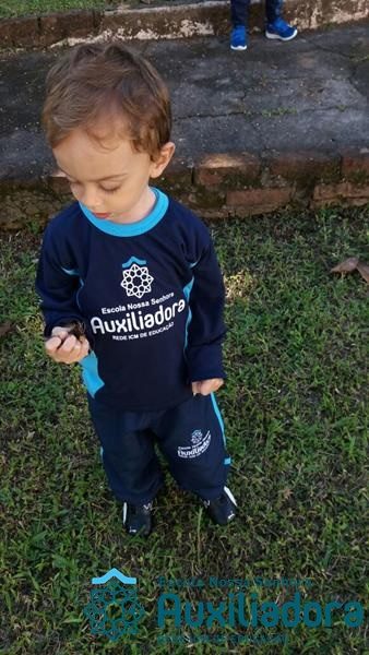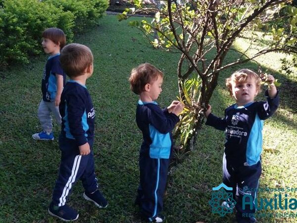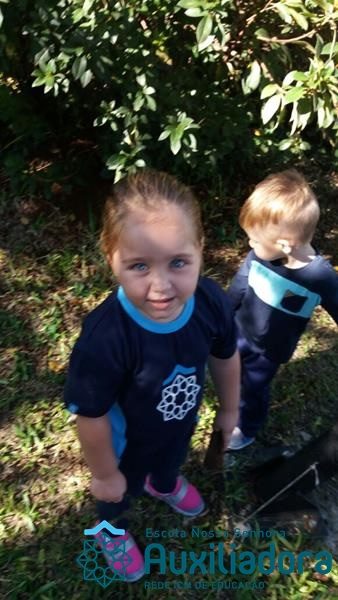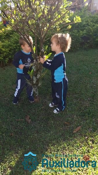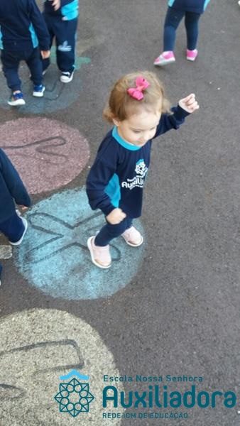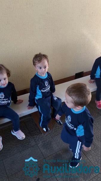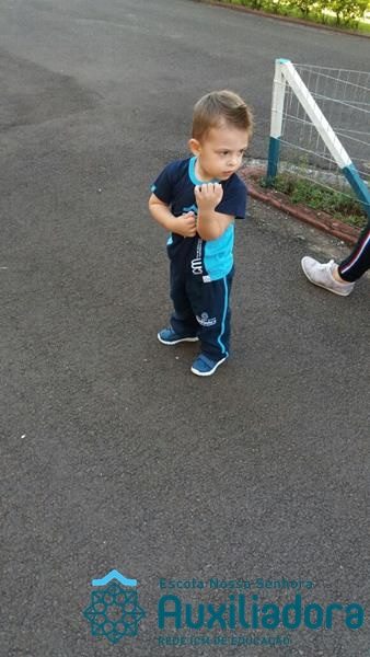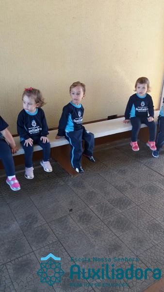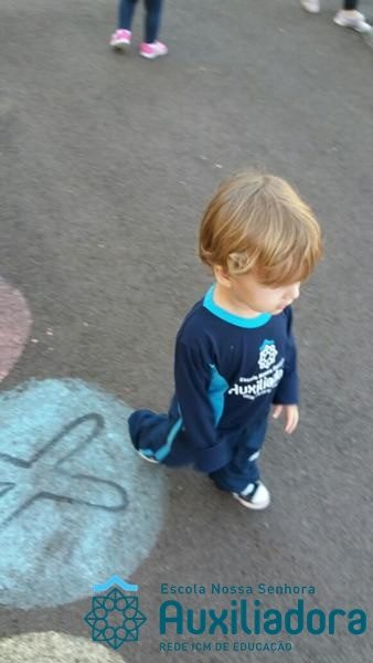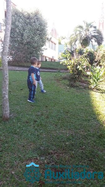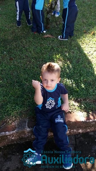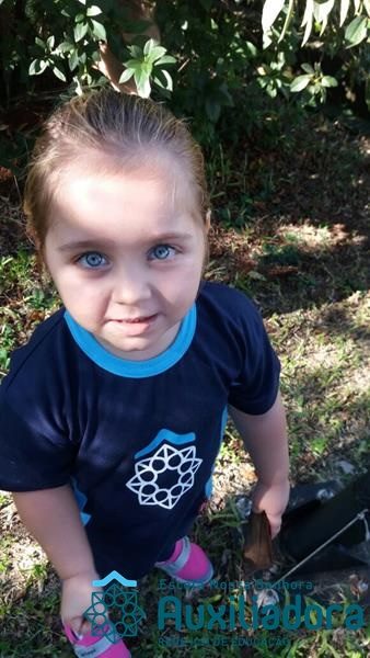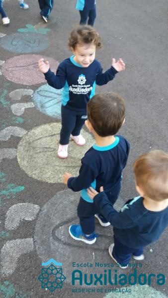 “Nada é mais perfeito e cheio de esperança do que o sorriso de uma criança feliz.” A turminha do Maternal ll da Profe Cledinara Stefanello se divertindo no pátio da escola.