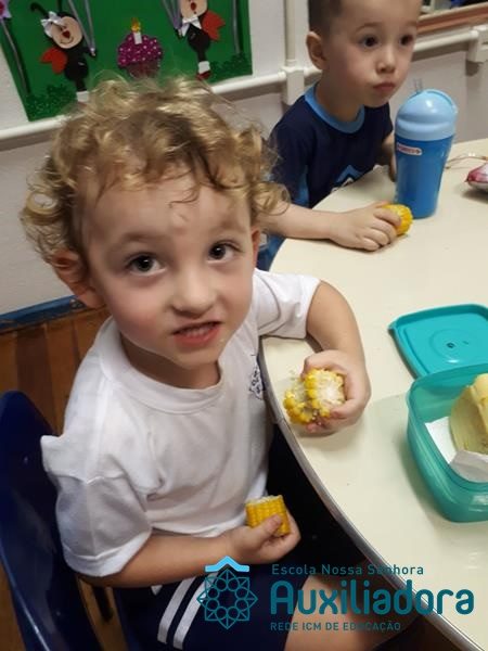 Na semana que passou a turma do Maternal ll da Profe Jaque Freu dentro do projeto alimentação saudável e higiene trabalharam a história da Galinha Ruiva, nesta semana houve a degustação do milho, culinária: bolo de milho da Galinha Ruiva e degustação do mesmo. Também a confecção do fantoche da galinha. Nossa semana foi cheia de atividades e trabalhos. Confiram nas nossas fotos!