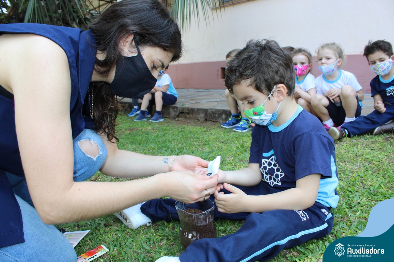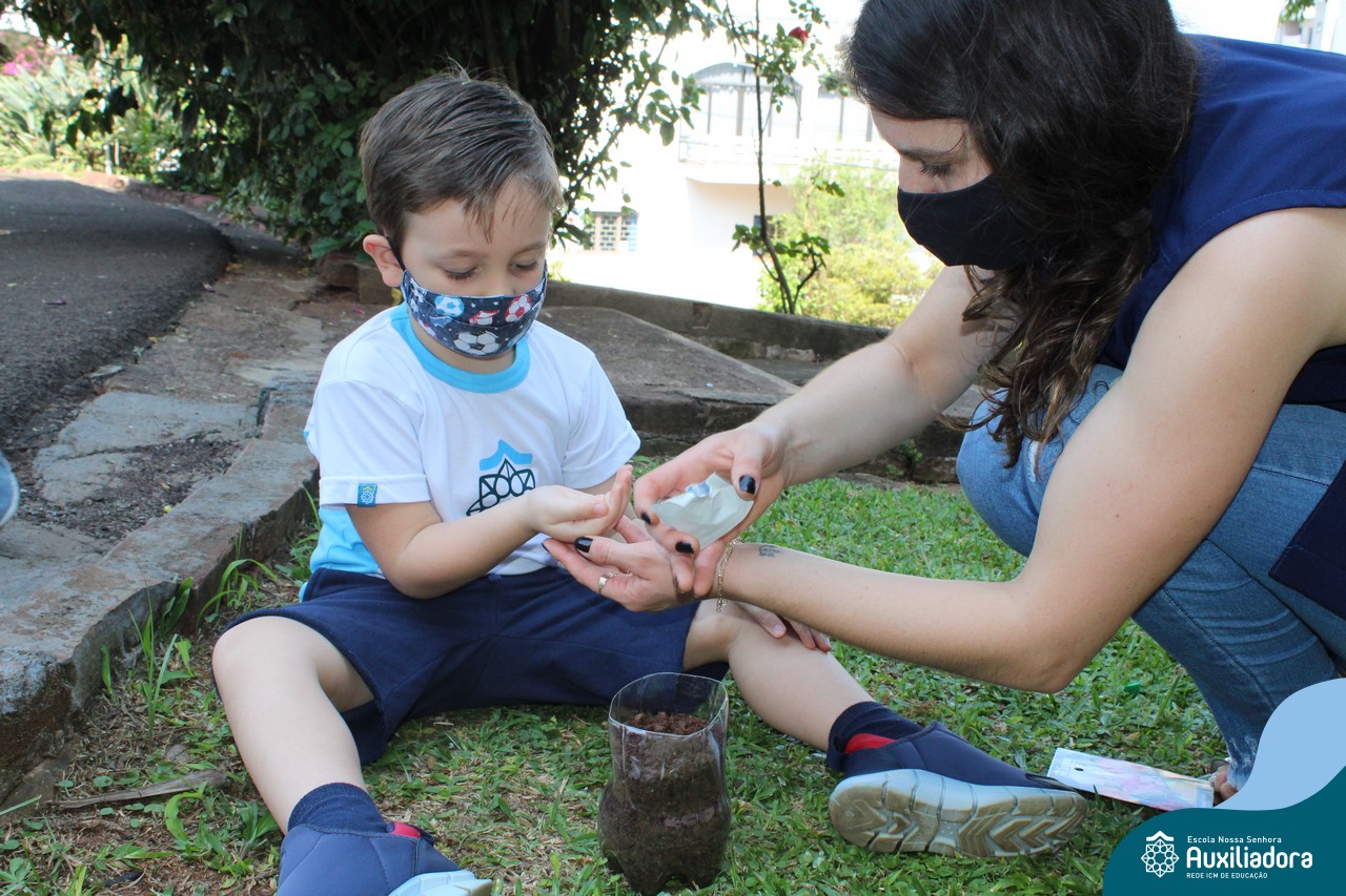 O contato com a natureza, proporciona diversas descobertas. Com esse intuito, a galerinha do Maternal 2 B desenvolveu várias atividades. Uma delas foi a plantação de sementinhas de flores, para observar o seu desenvolvimento.