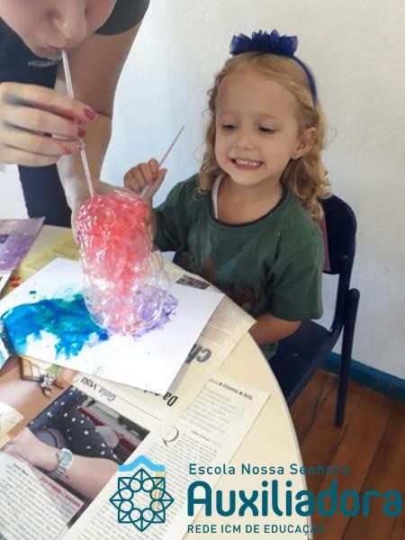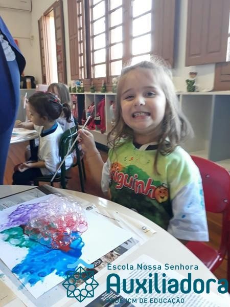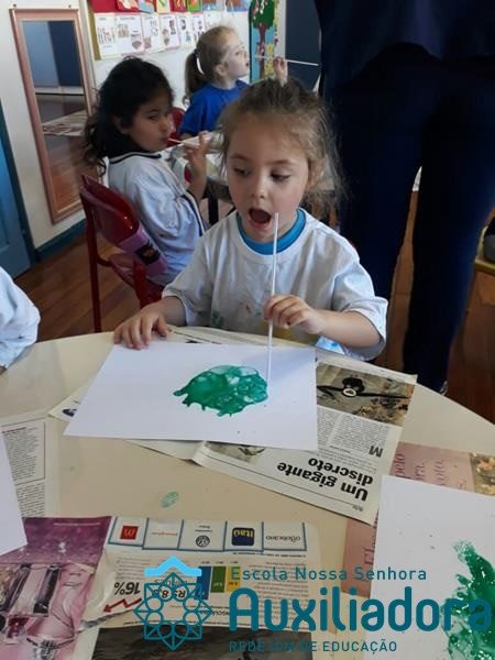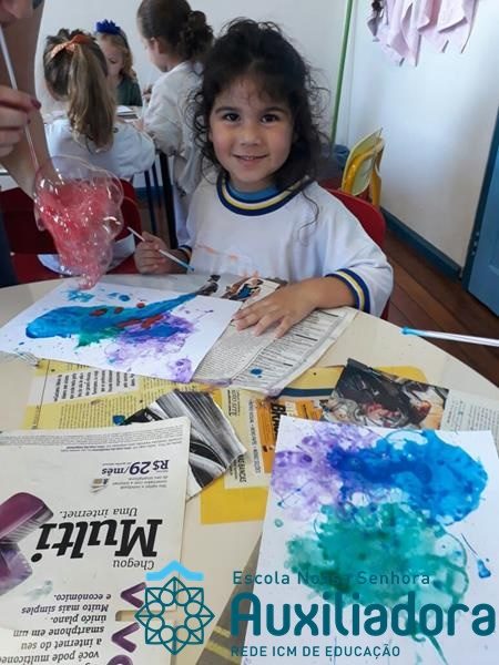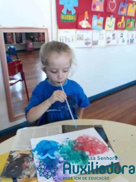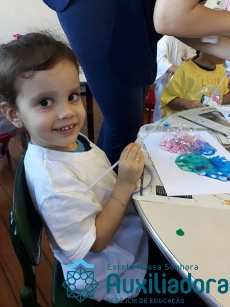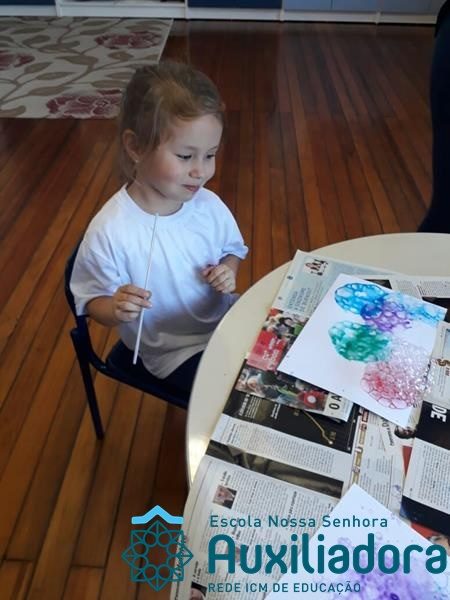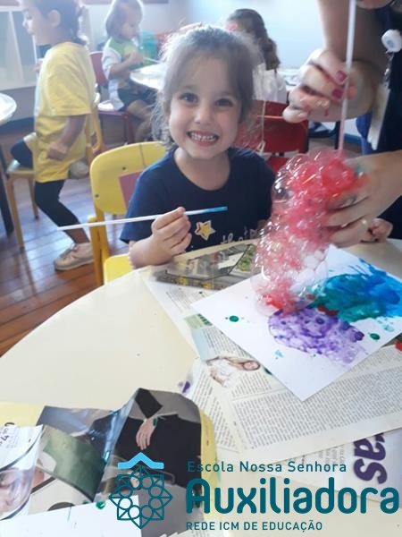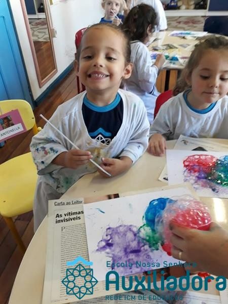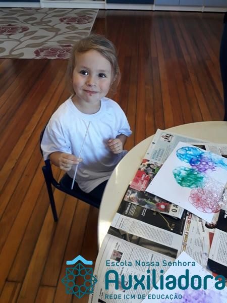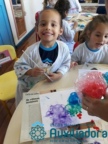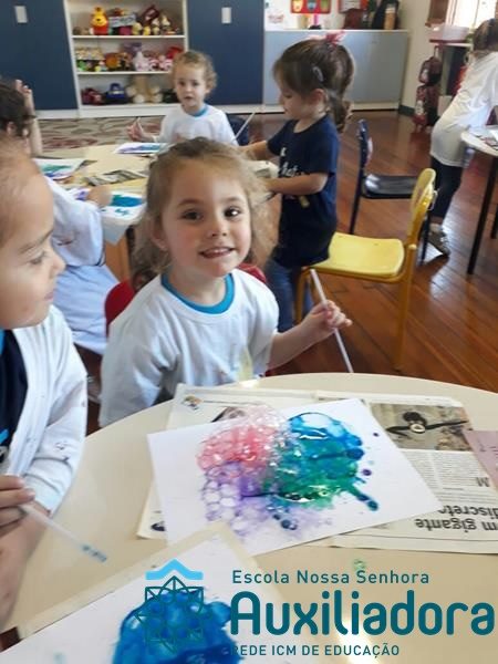 Neste mês de abril, as crianças do Maternal III estão vivenciando experiências relacionadas ao corpo e aos cuidados com ele, como é o caso da atividade física, higiene corporal e alimentação saudável. Nesta semana, foi realizada uma experiência de pintura com bolha de sabão. Confira como foi divertido! Profe Lisi Lippi