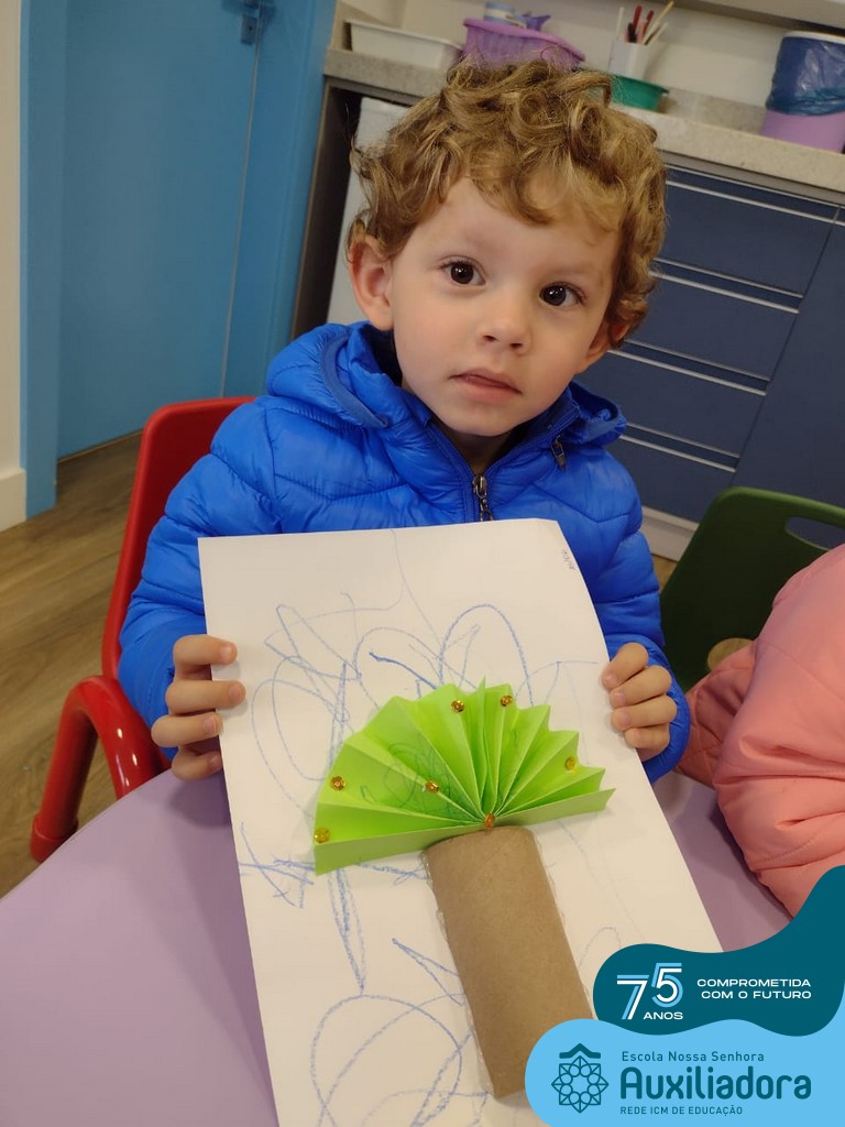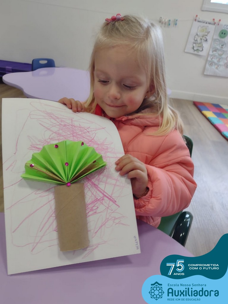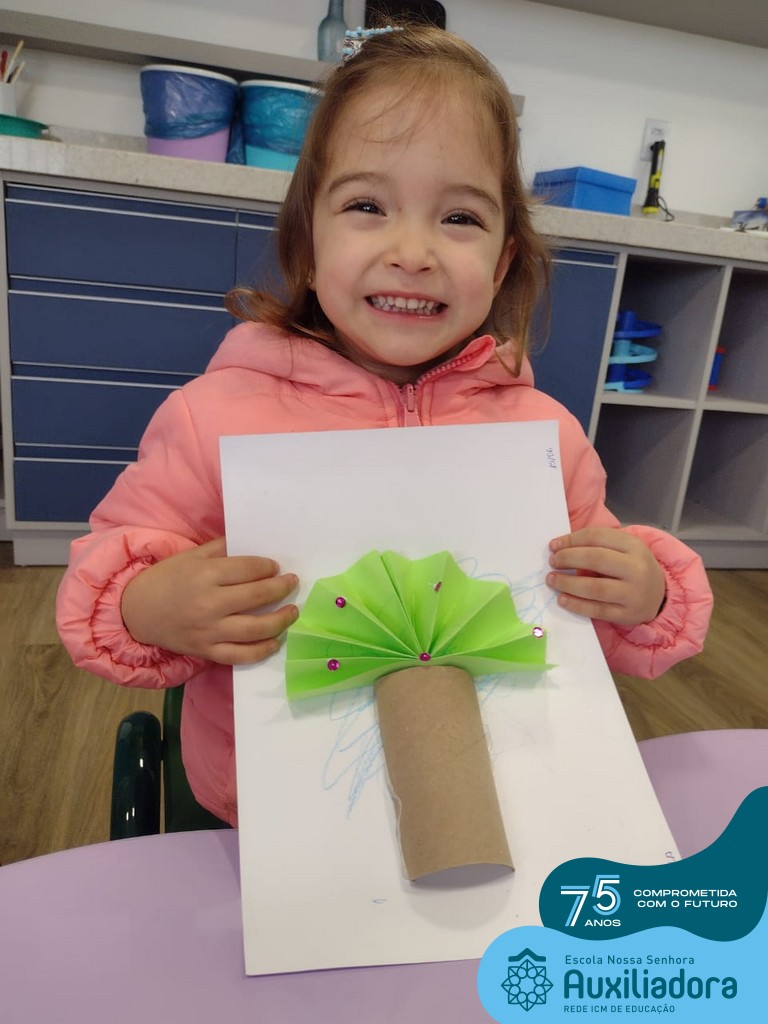 Além disso, a entrega de uma muda de árvore para as famílias e a construção dos Mascotes “Nino” e “Lilo” utilizando maravalha e alpiste, foram atividades que a turminha realizou com muita alegria, aprendizagem e diversão!