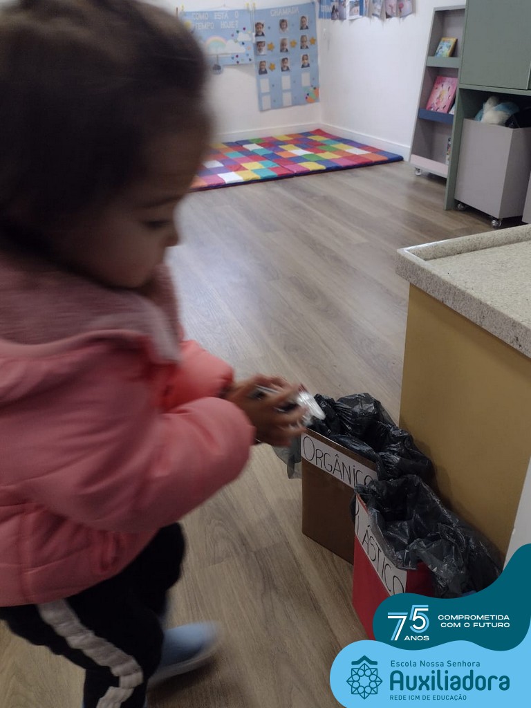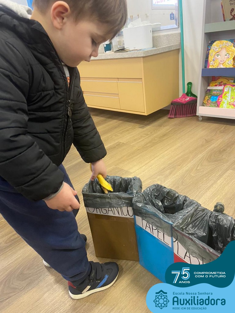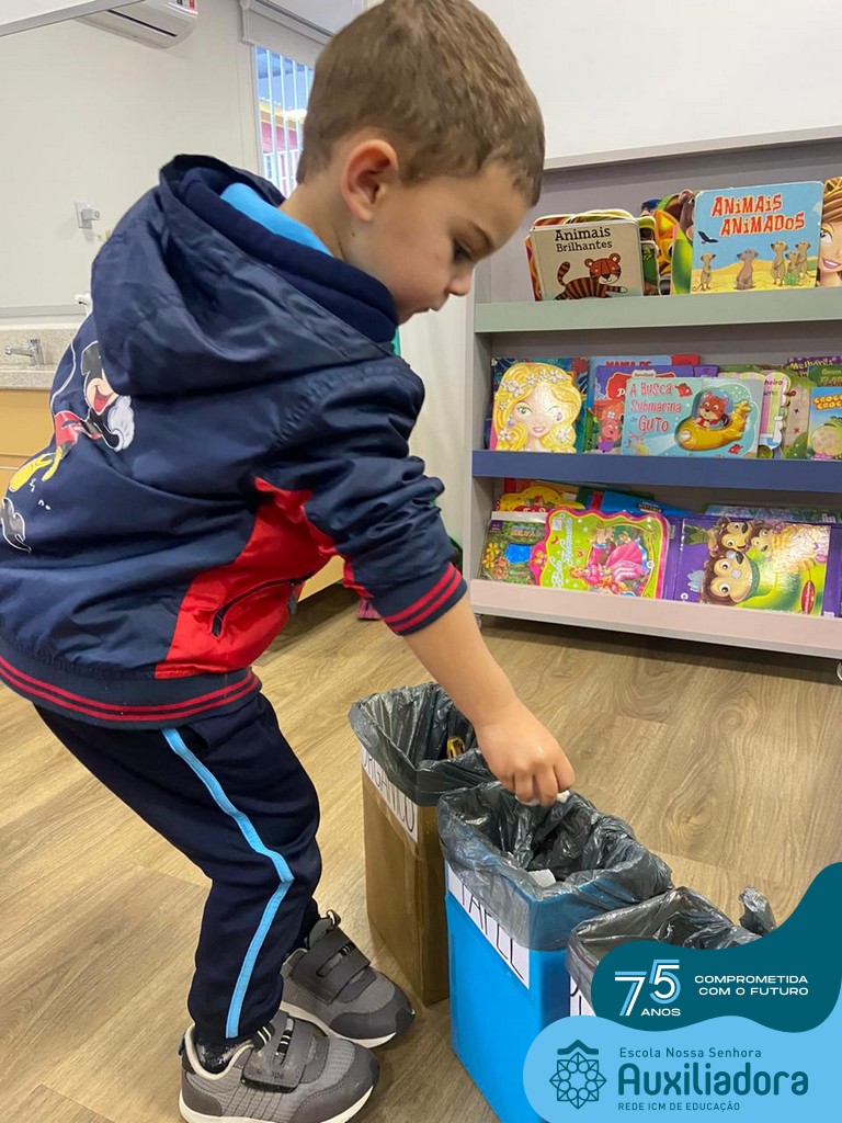 A partir da história: “Vamos Abraçar o Mundinho”, foram desenvolvidas atividades diversificadas tendo como objetivo sensibilizar os alunos sobre a importância da preservação do Meio Ambiente, incentivando assim o cuidado com a natureza, a necessidade de realizar a separação do lixo e reutilização de materiais recicláveis.