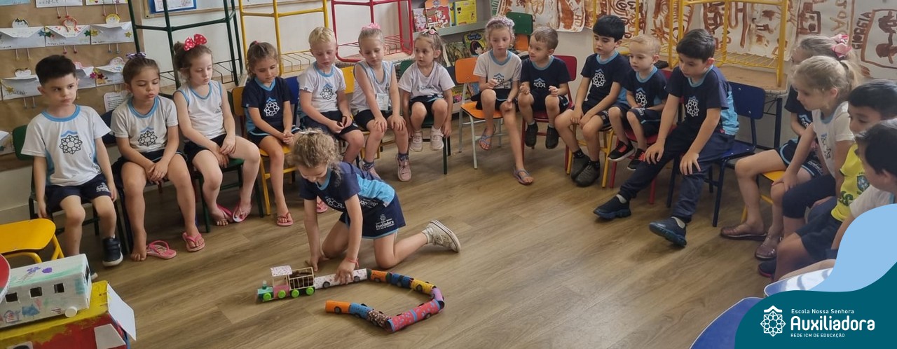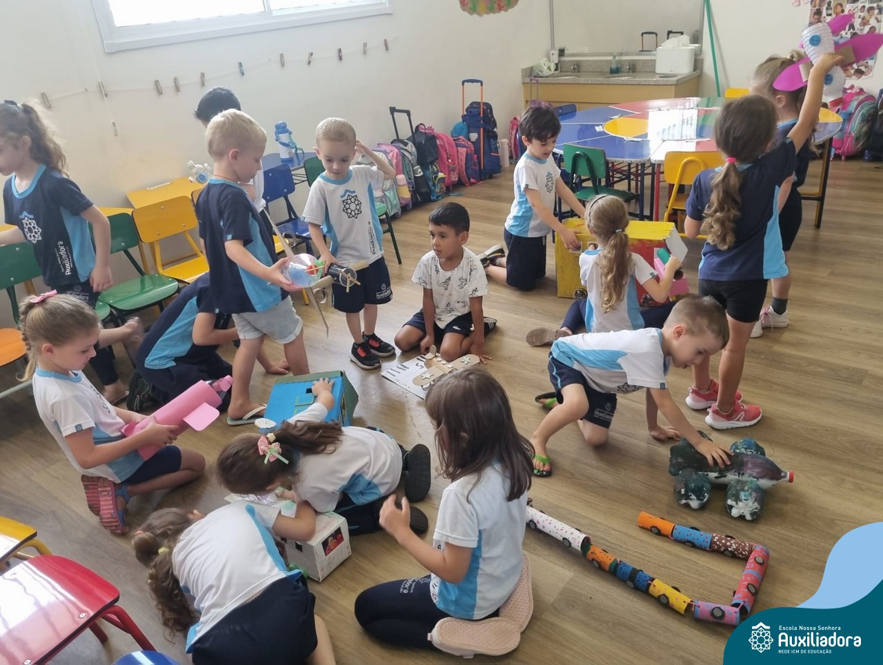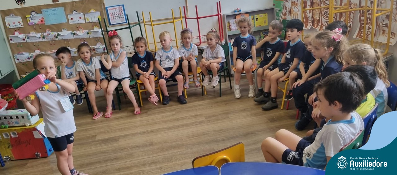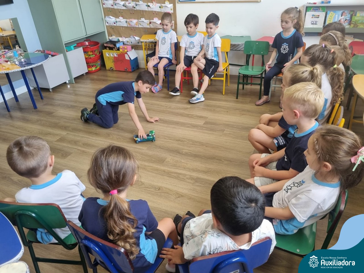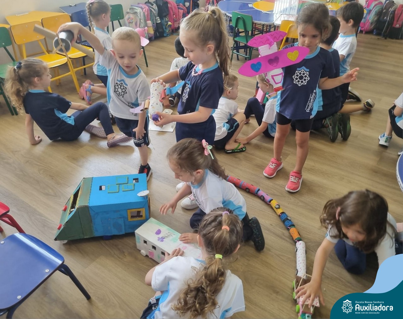 Encerramos com grande entusiasmo a proposta sobre os meios de transporte, realizada em parceria com as famílias. As crianças tiveram a oportunidade de construir, com materiais alternativos, seus próprios meios de transporte, que foram apresentados com muita criatividade e empenho para a turma e para a professora. Foi gratificante observar o resultado desse desafio, que uniu conhecimento, exploração e colaboração. Parabenizamos as famílias pelo engajamento e por tornarem esse momento ainda mais especial e significativo para nossas crianças!