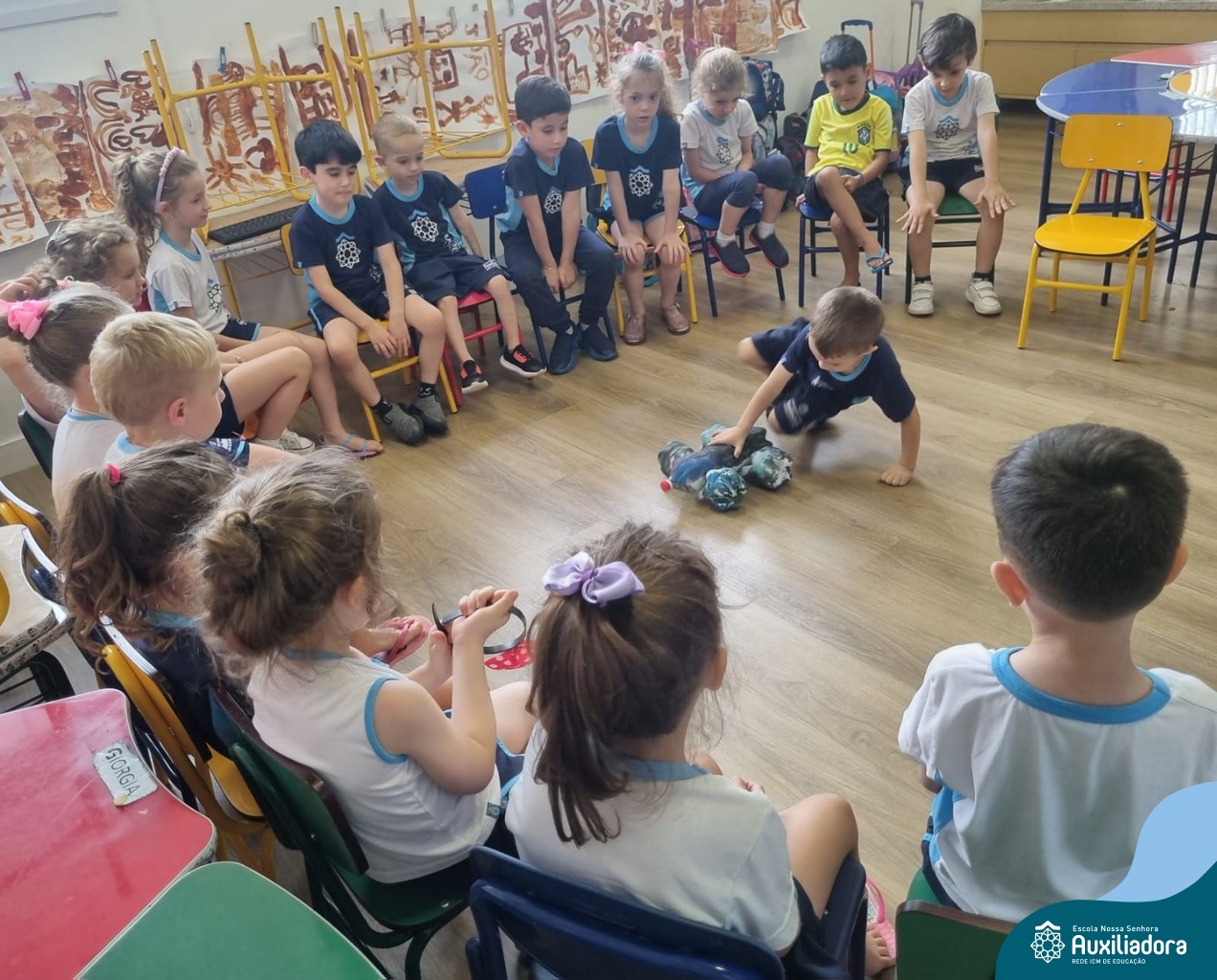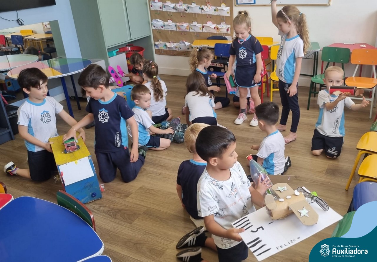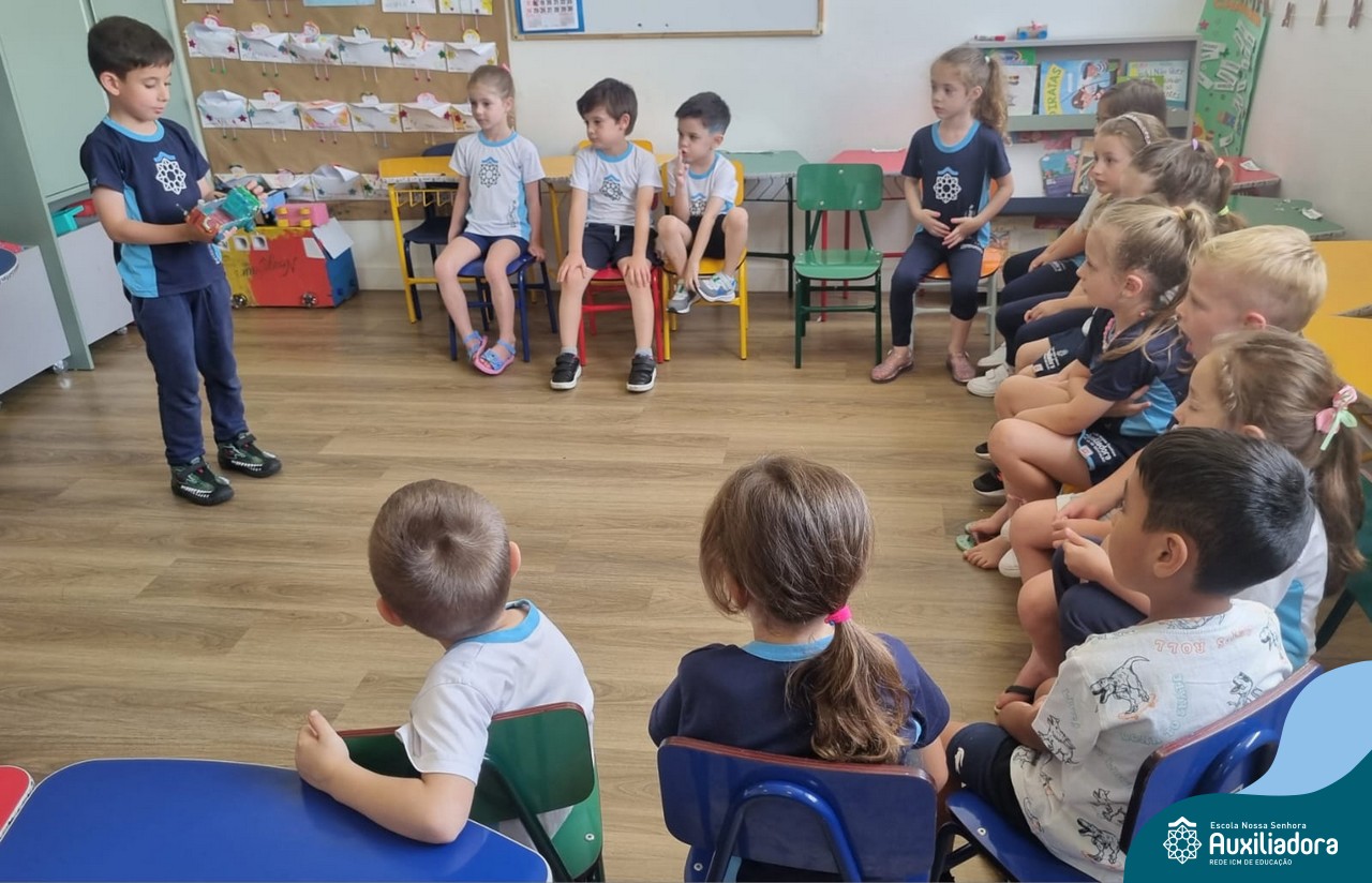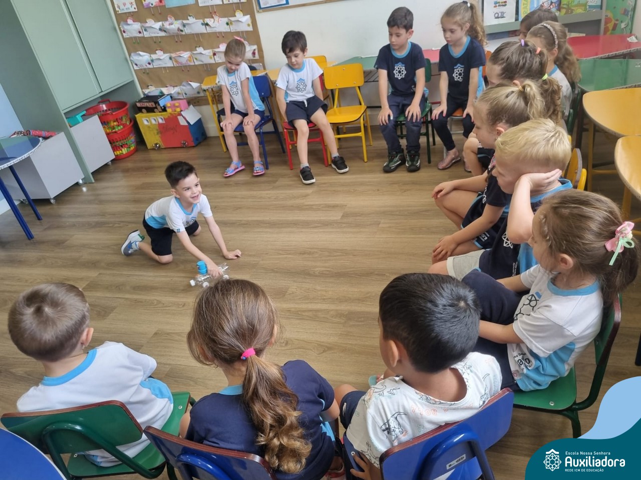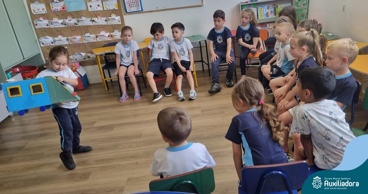 Encerramos com grande entusiasmo a proposta sobre os meios de transporte, realizada em parceria com as famílias. As crianças tiveram a oportunidade de construir, com materiais alternativos, seus próprios meios de transporte, que foram apresentados com muita criatividade e empenho para a turma e para a professora. Foi gratificante observar o resultado desse desafio, que uniu conhecimento, exploração e colaboração. Parabenizamos as famílias pelo engajamento e por tornarem esse momento ainda mais especial e significativo para nossas crianças!