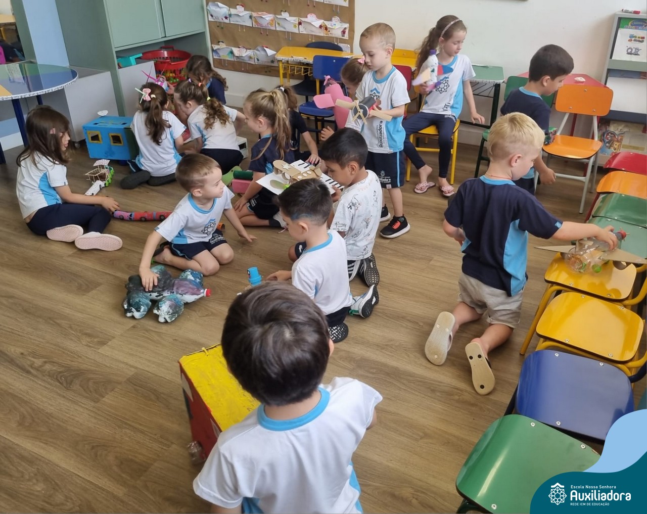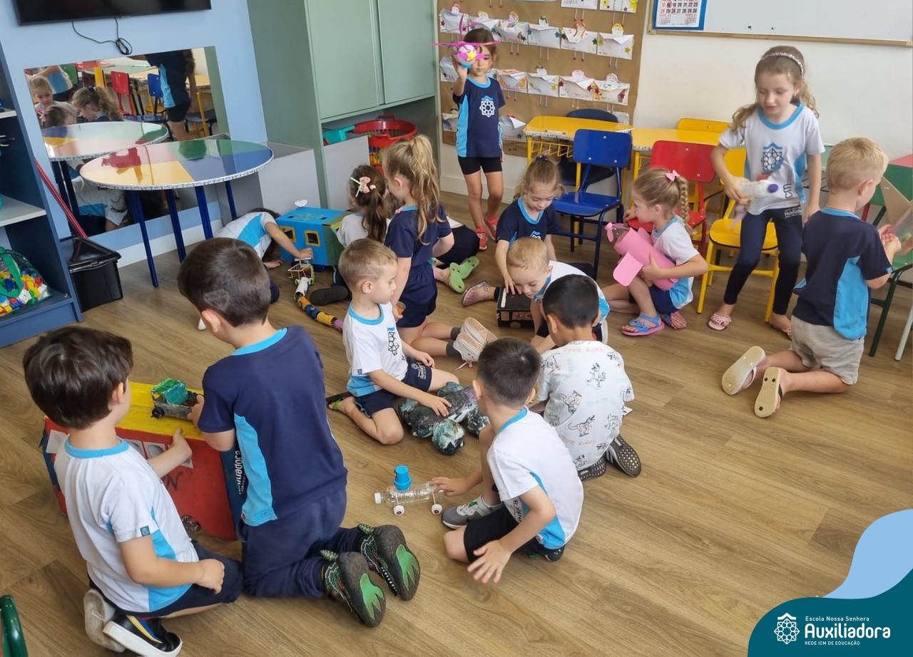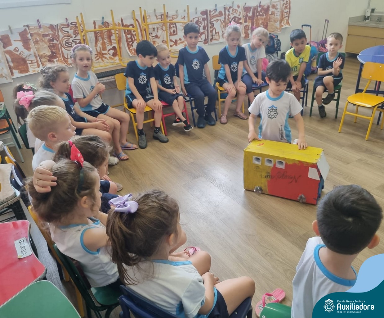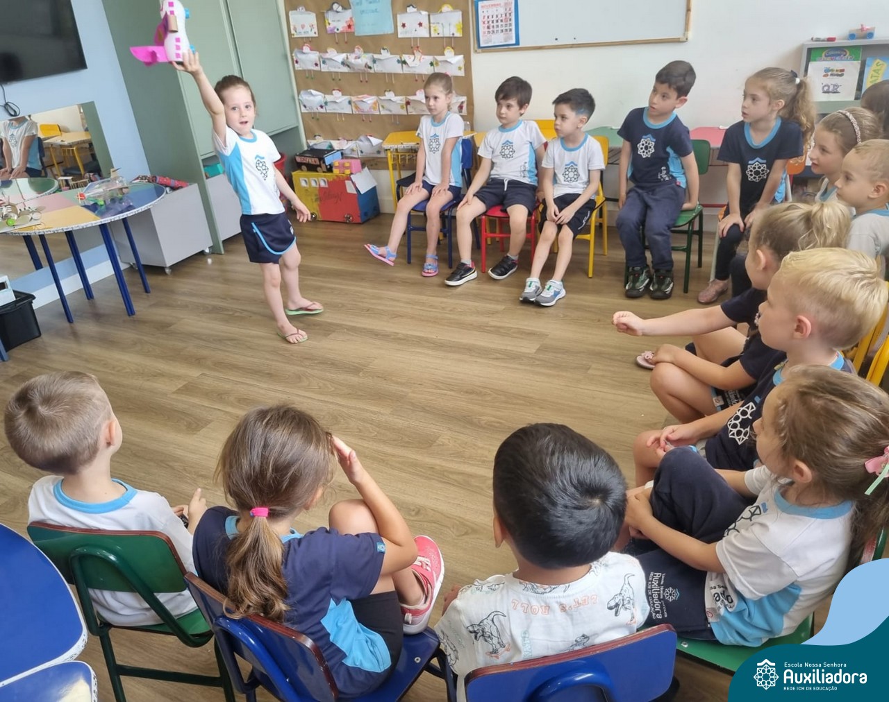 Encerramos com grande entusiasmo a proposta sobre os meios de transporte, realizada em parceria com as famílias. As crianças tiveram a oportunidade de construir, com materiais alternativos, seus próprios meios de transporte, que foram apresentados com muita criatividade e empenho para a turma e para a professora. Foi gratificante observar o resultado desse desafio, que uniu conhecimento, exploração e colaboração. Parabenizamos as famílias pelo engajamento e por tornarem esse momento ainda mais especial e significativo para nossas crianças!