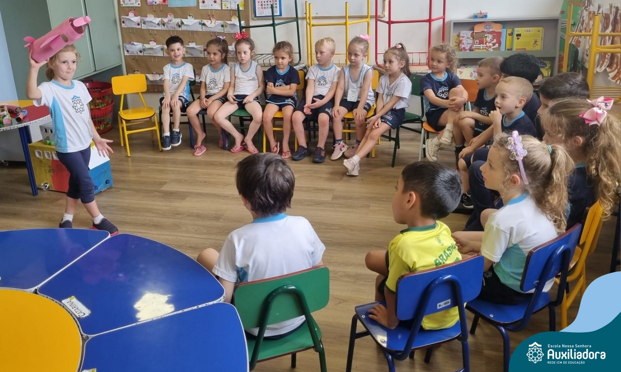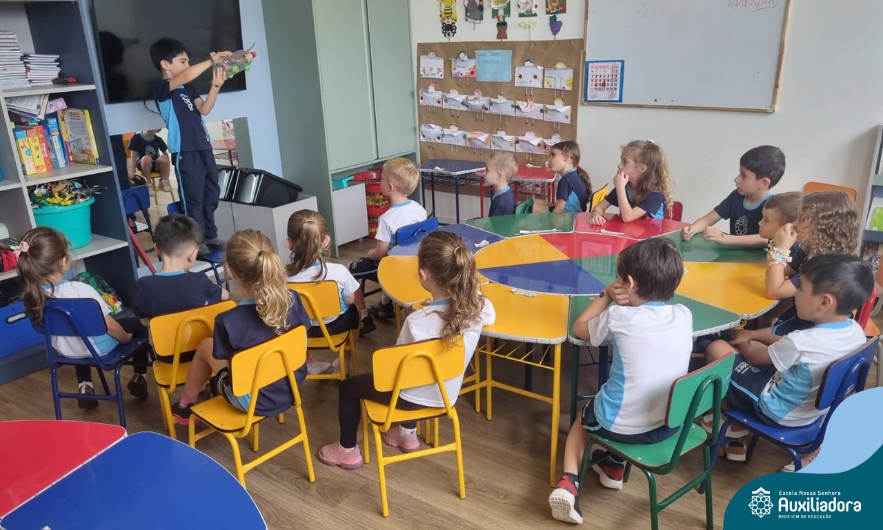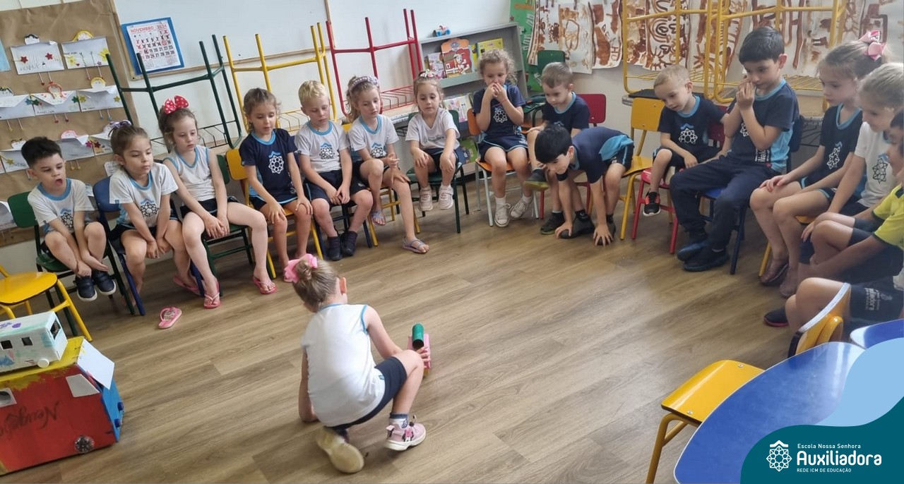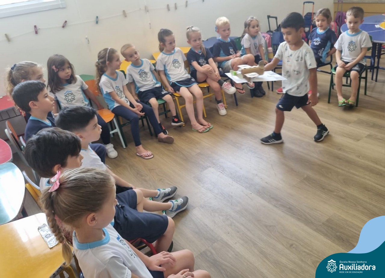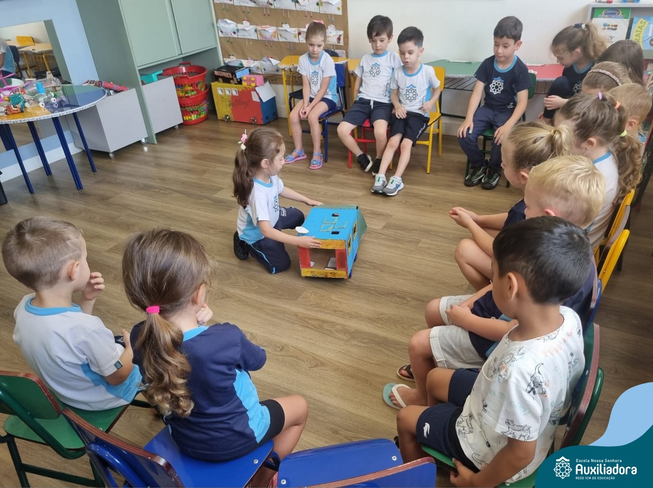Encerramos com grande entusiasmo a proposta sobre os meios de transporte, realizada em parceria com as famílias. As crianças tiveram a oportunidade de construir, com materiais alternativos, seus próprios meios de transporte, que foram apresentados com muita criatividade e empenho para a turma e para a professora. Foi gratificante observar o resultado desse desafio, que uniu conhecimento, exploração e colaboração. Parabenizamos as famílias pelo engajamento e por tornarem esse momento ainda mais especial e significativo para nossas crianças!