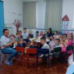Falando em diversão e aprendizagem, no mês de setembro comemoramos o Dia do Gaúcho e os peões e prendas festejaram com roda de chimarrão, bolo de erva mate, vestimentas típicas, construíram cuia com argila…