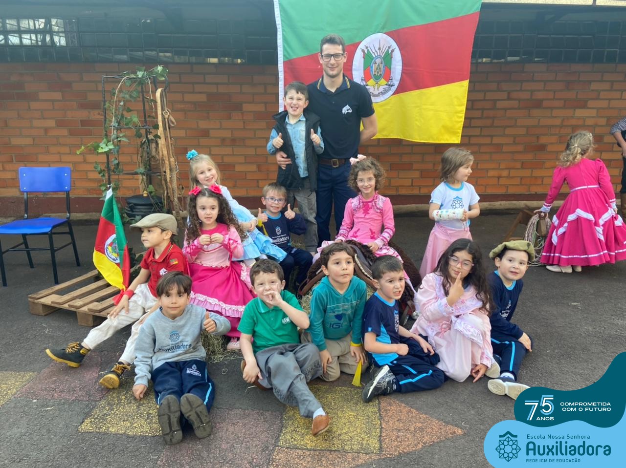 Em comemoração ao Dia do Gaúcho, a turma do Pré 1C realizou diversas brincadeiras, músicas e atividades.