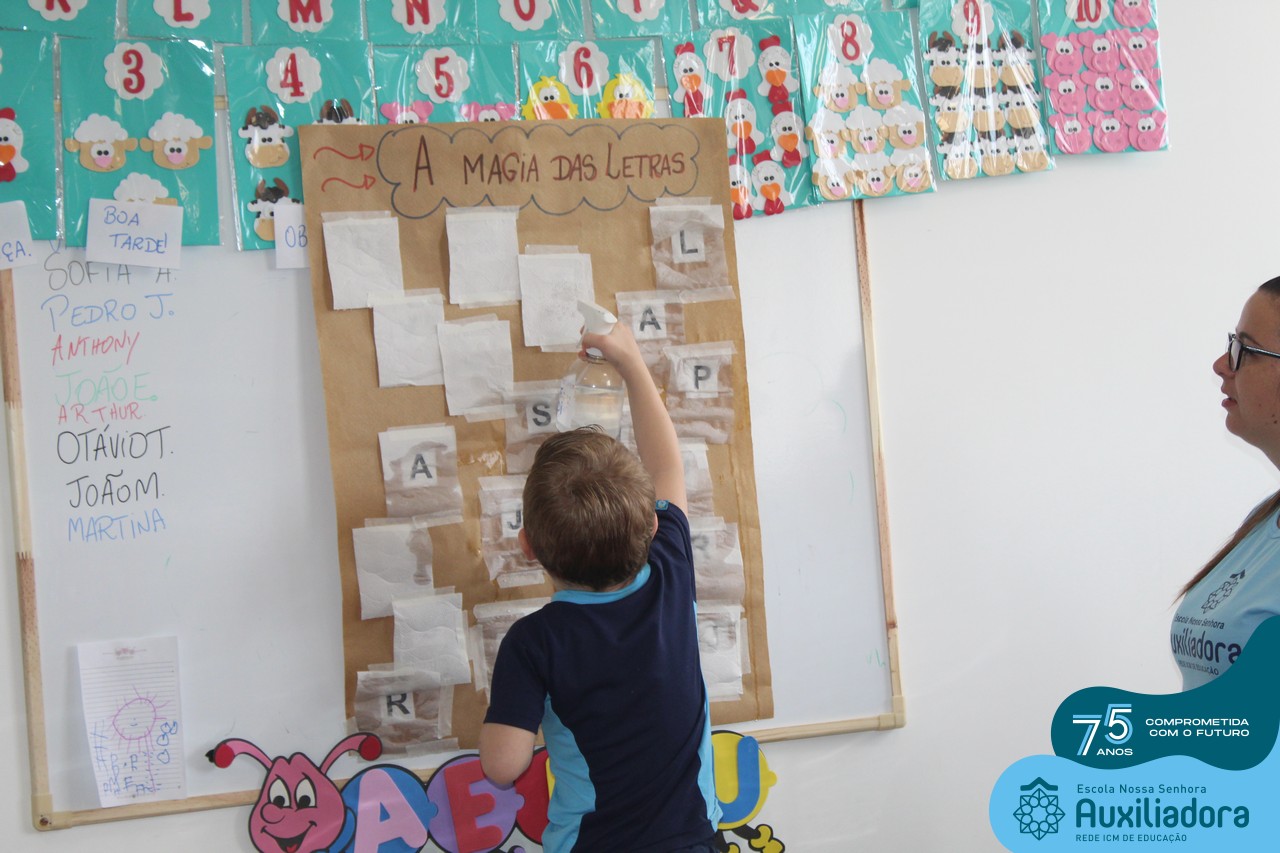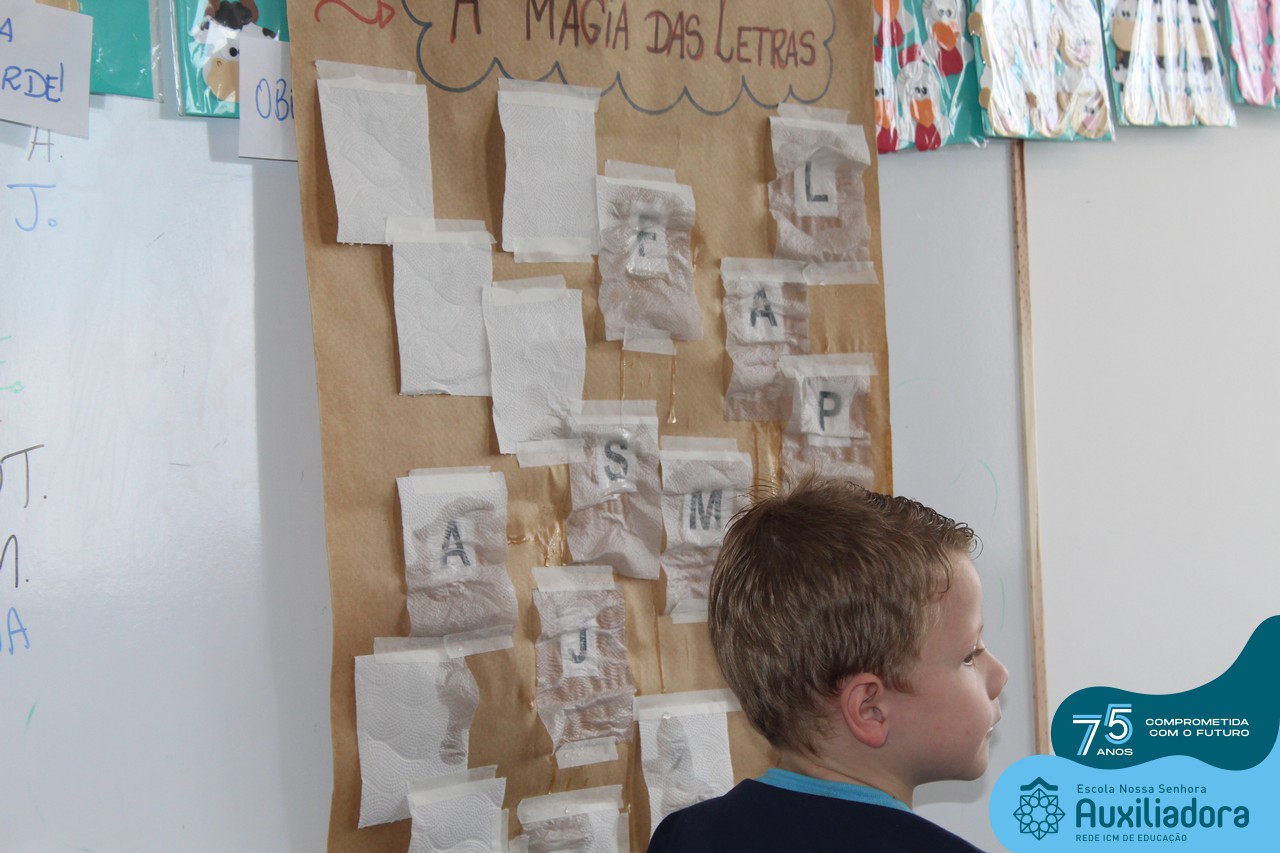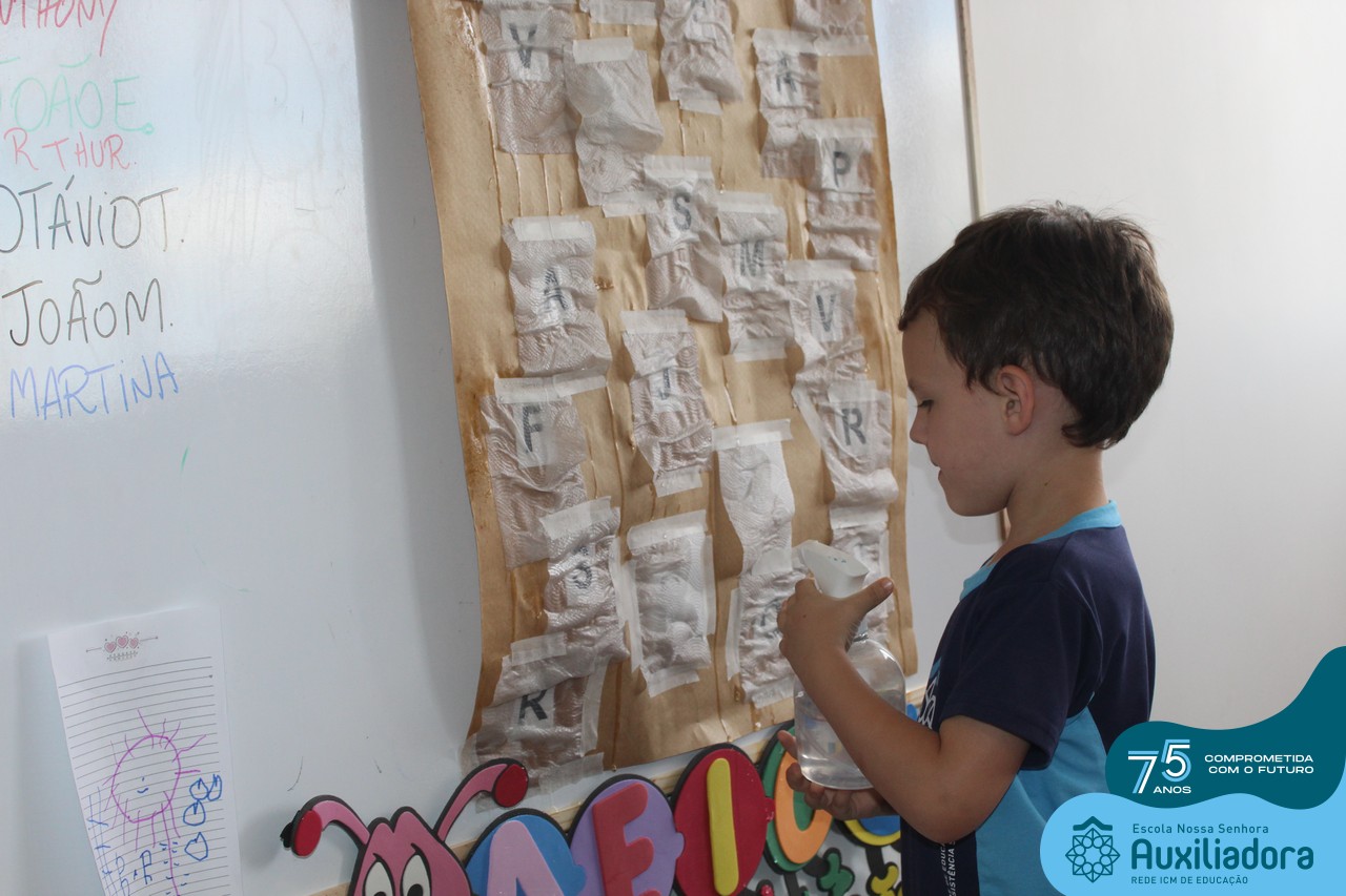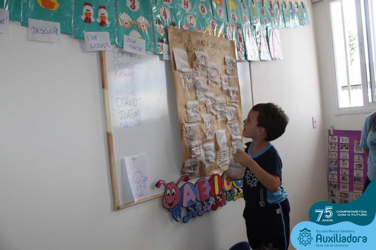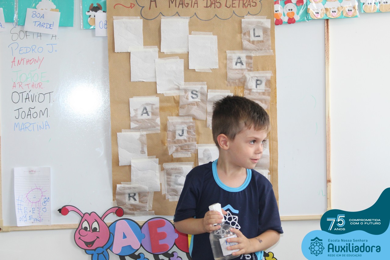 Através da ludicidade, brincadeiras, movimentos de apertar e pinçar letras e objetos, deixamos a aprendizagem muito mais atrativa e divertida. Que tal uma pitada de magia e brincadeira na descoberta do mundo letrado? O pré 1B adorou participar de todos os momentos!