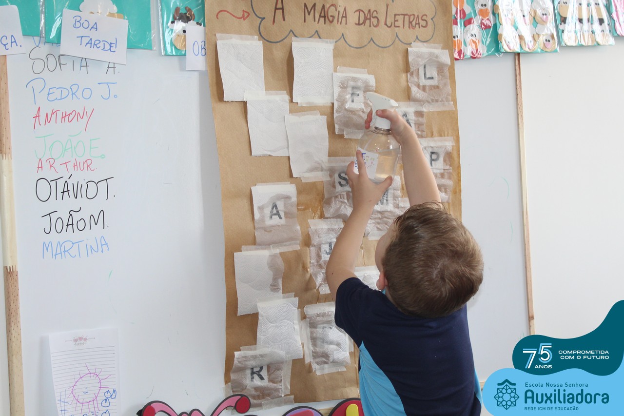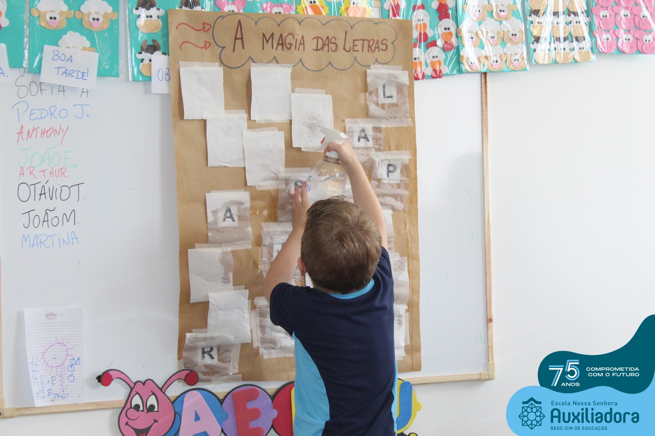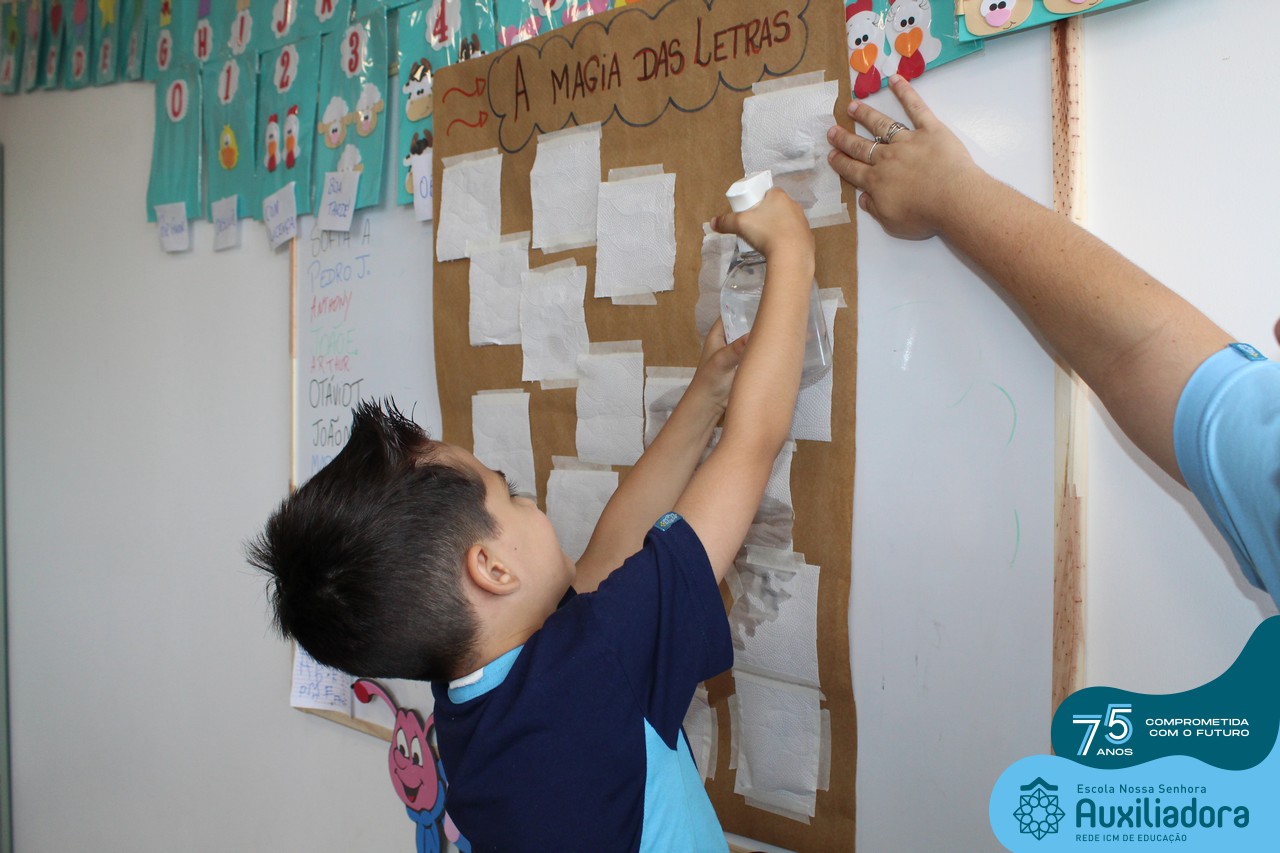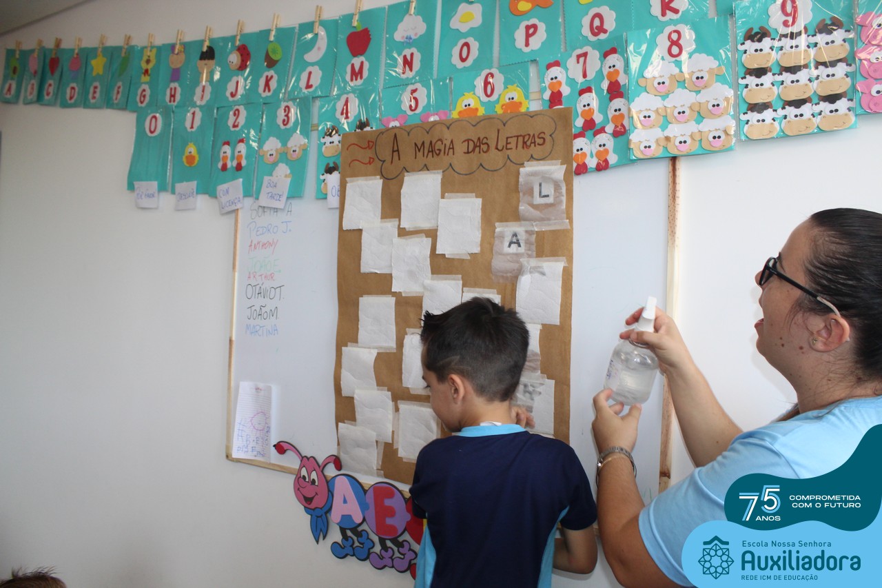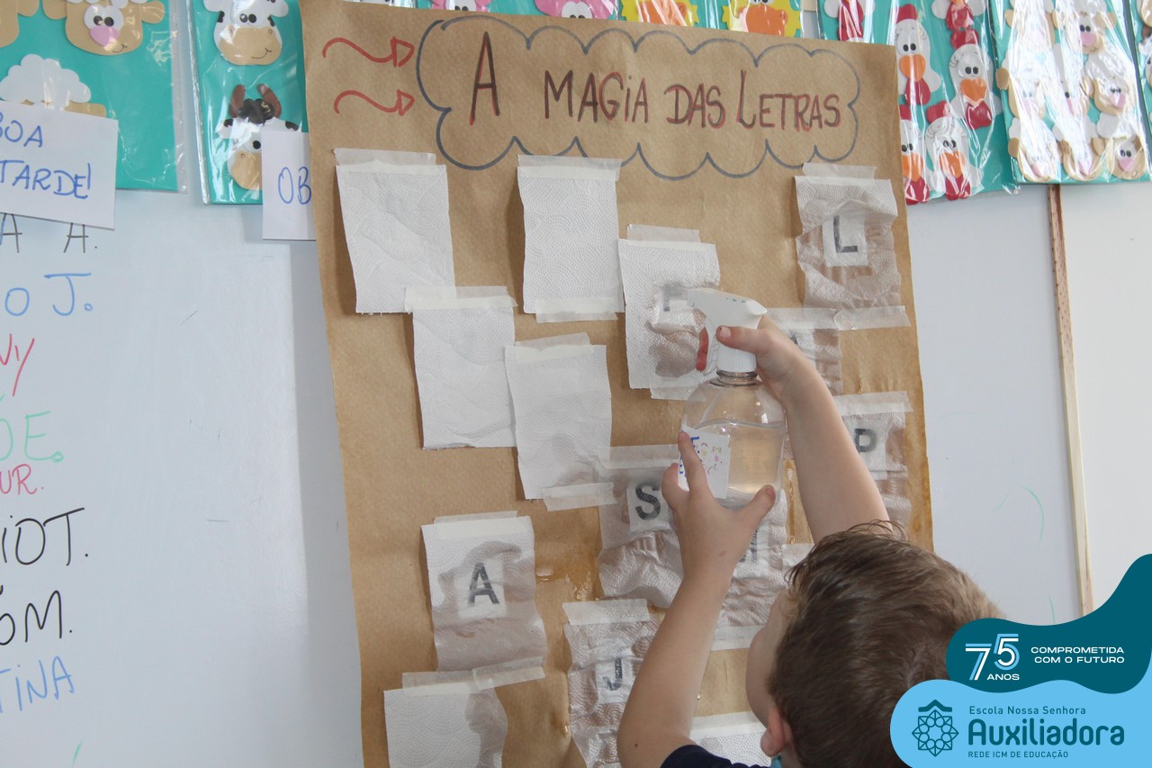 Através da ludicidade, brincadeiras, movimentos de apertar e pinçar letras e objetos, deixamos a aprendizagem muito mais atrativa e divertida. Que tal uma pitada de magia e brincadeira na descoberta do mundo letrado? O pré 1B adorou participar de todos os momentos!