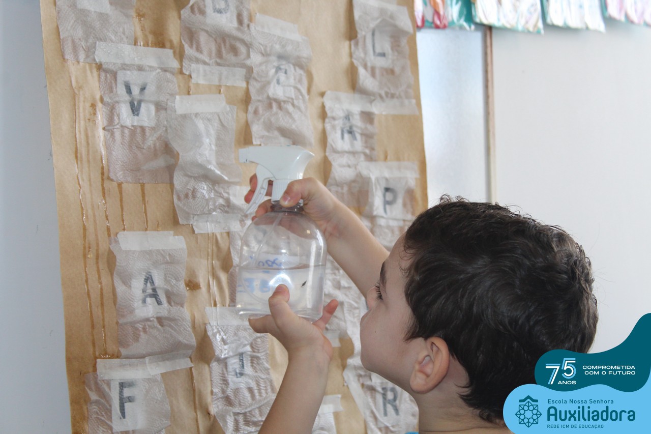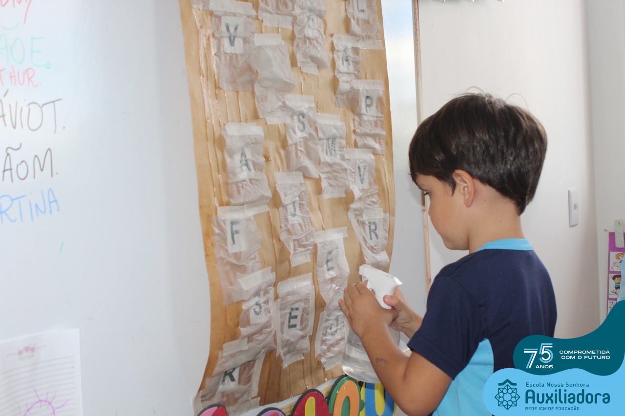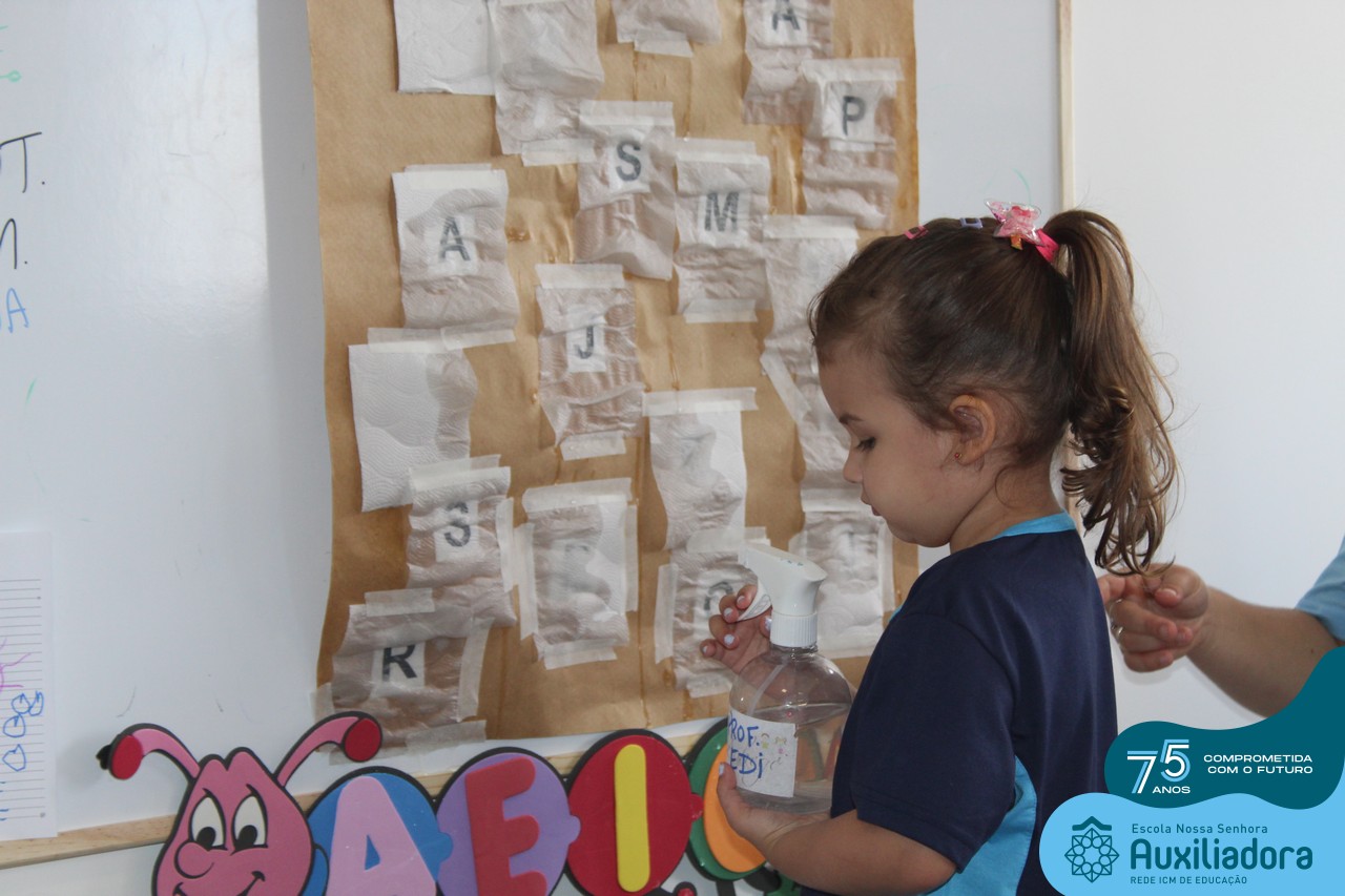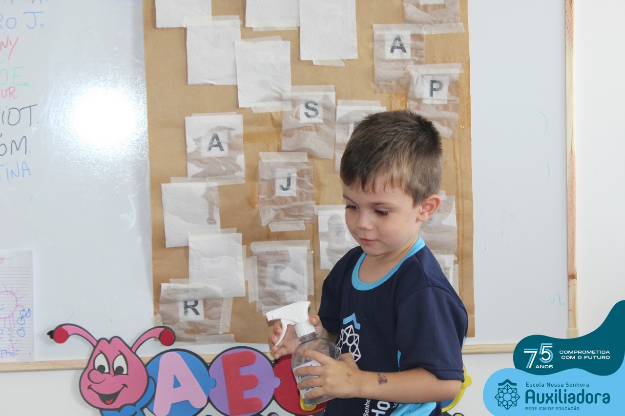 Através da ludicidade, brincadeiras, movimentos de apertar e pinçar letras e objetos, deixamos a aprendizagem muito mais atrativa e divertida. Que tal uma pitada de magia e brincadeira na descoberta do mundo letrado? O pré 1B adorou participar de todos os momentos!