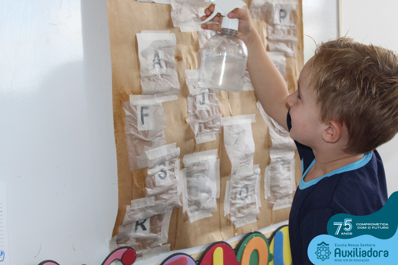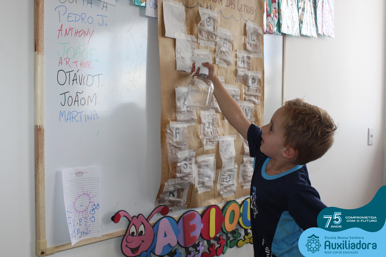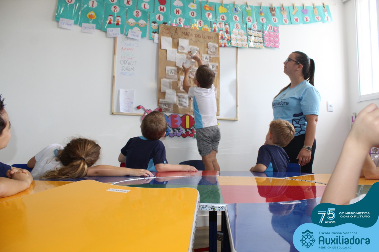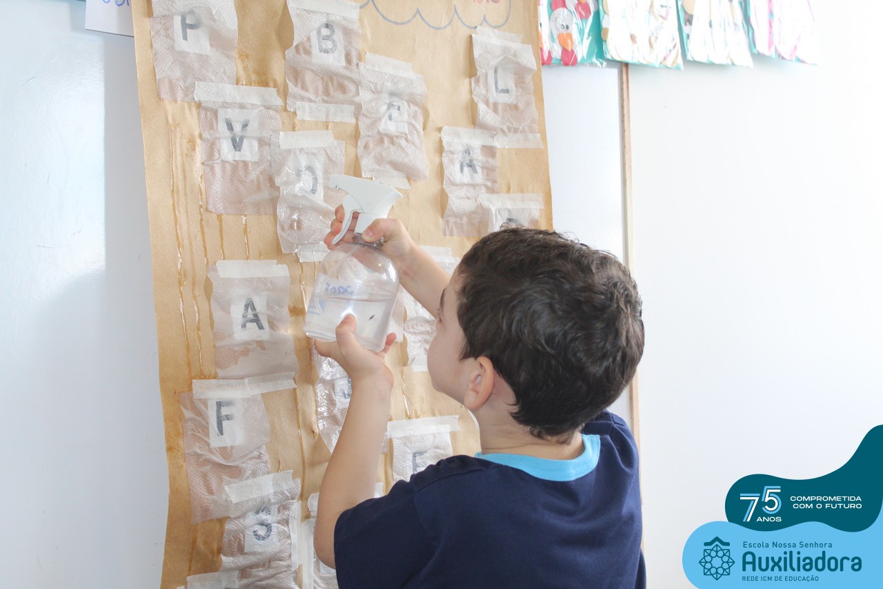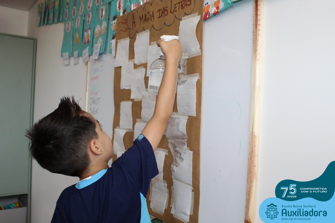 Através da ludicidade, brincadeiras, movimentos de apertar e pinçar letras e objetos, deixamos a aprendizagem muito mais atrativa e divertida. Que tal uma pitada de magia e brincadeira na descoberta do mundo letrado? O pré 1B adorou participar de todos os momentos!
