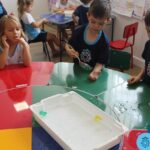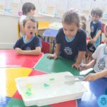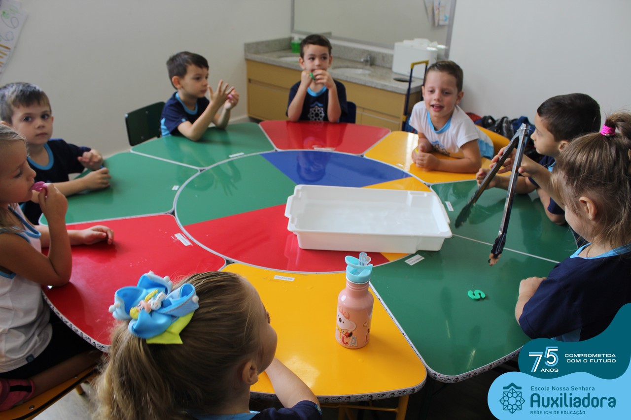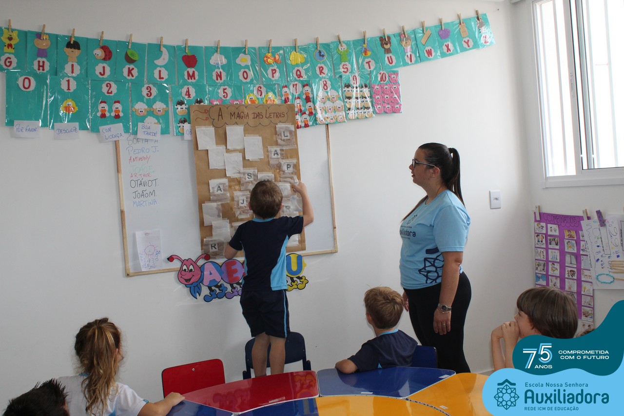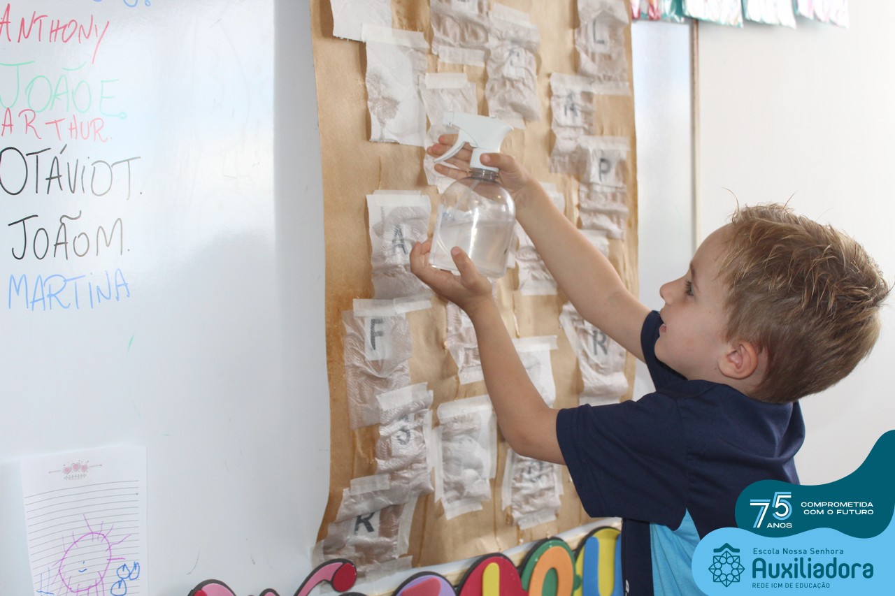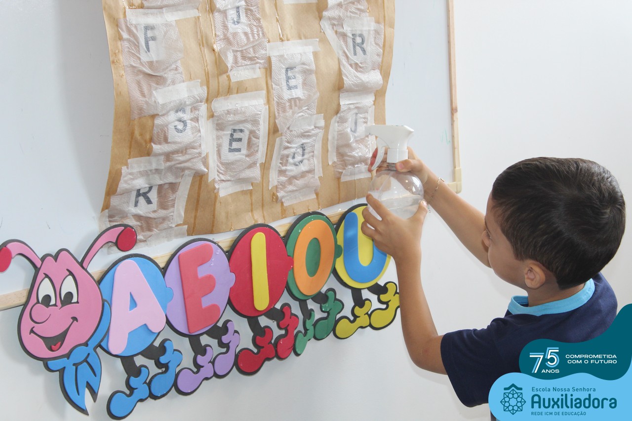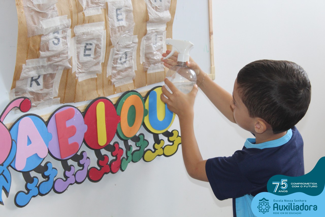 Através da ludicidade, brincadeiras, movimentos de apertar e pinçar letras e objetos, deixamos a aprendizagem muito mais atrativa e divertida. Que tal uma pitada de magia e brincadeira na descoberta do mundo letrado? O pré 1B adorou participar de todos os momentos!