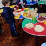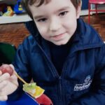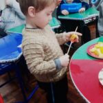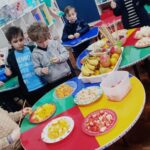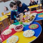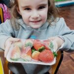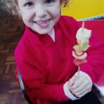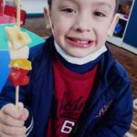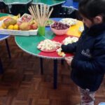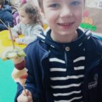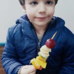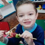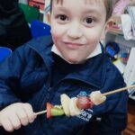 Espetinho de frutas do pré 1B! Nesta atividade os alunos puderam experimentar as frutas, explorando seus sabores, cores, formas e texturas, montando seu espetinho com suas frutas preferidas.