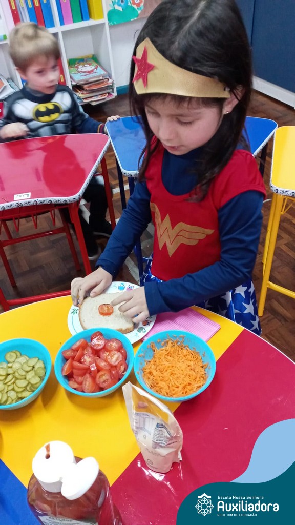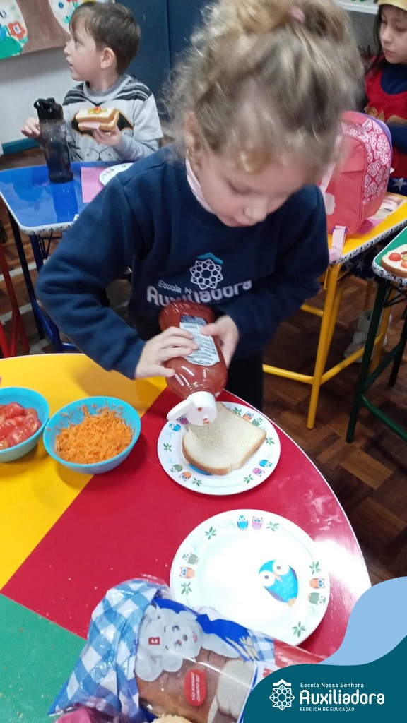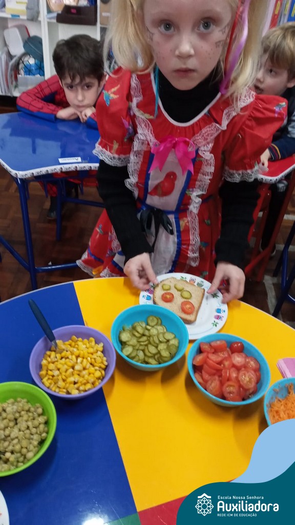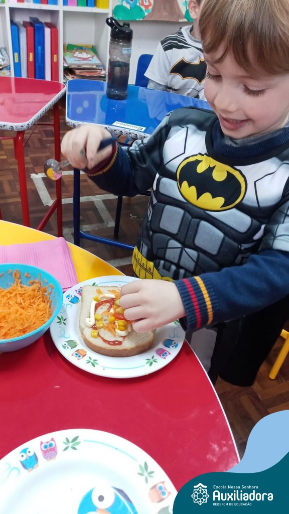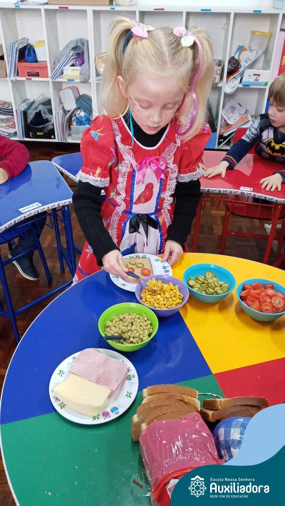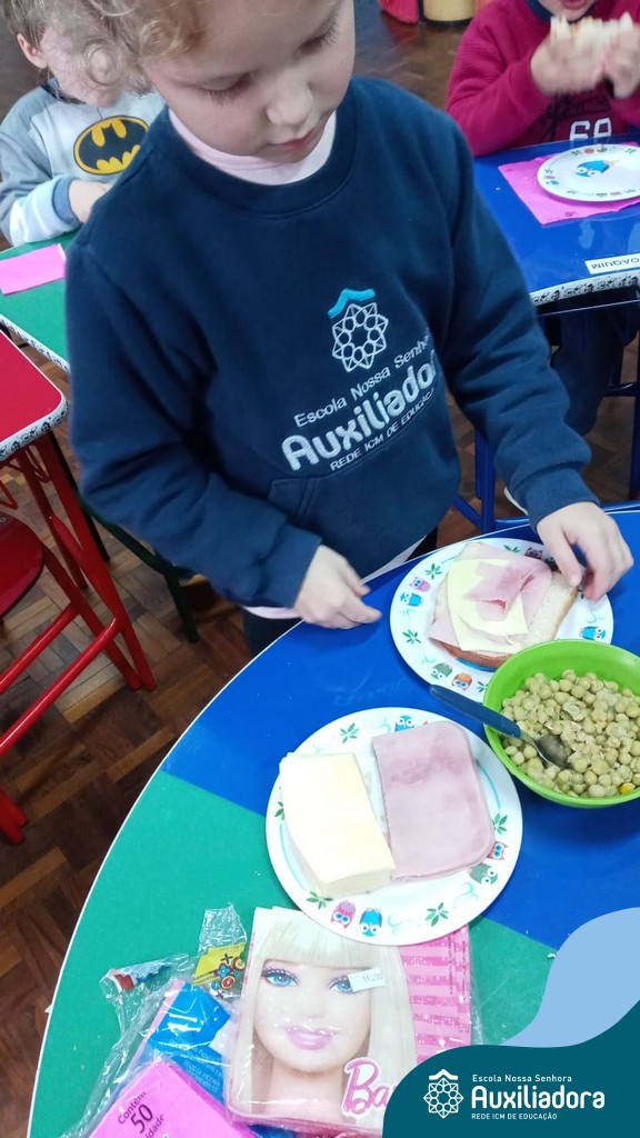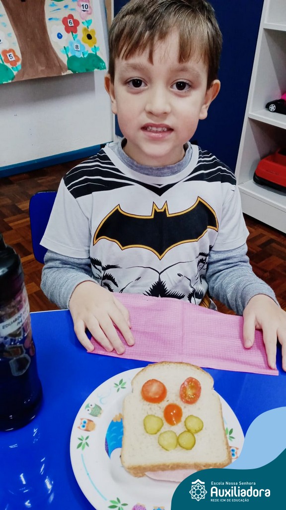 Após ouvir a história “O sanduíche da Maricota”, as crianças do Pré 1 realizaram diversas atividades e brincadeiras e como culminância puderam escolher seus ingredientes preferidos, montando seu próprio sanduíche. Uma tarde saborosa e de muita aprendizagem.