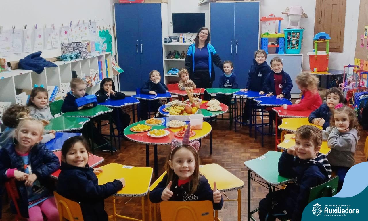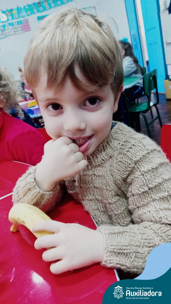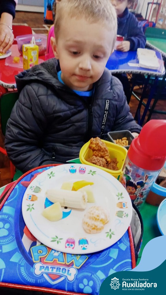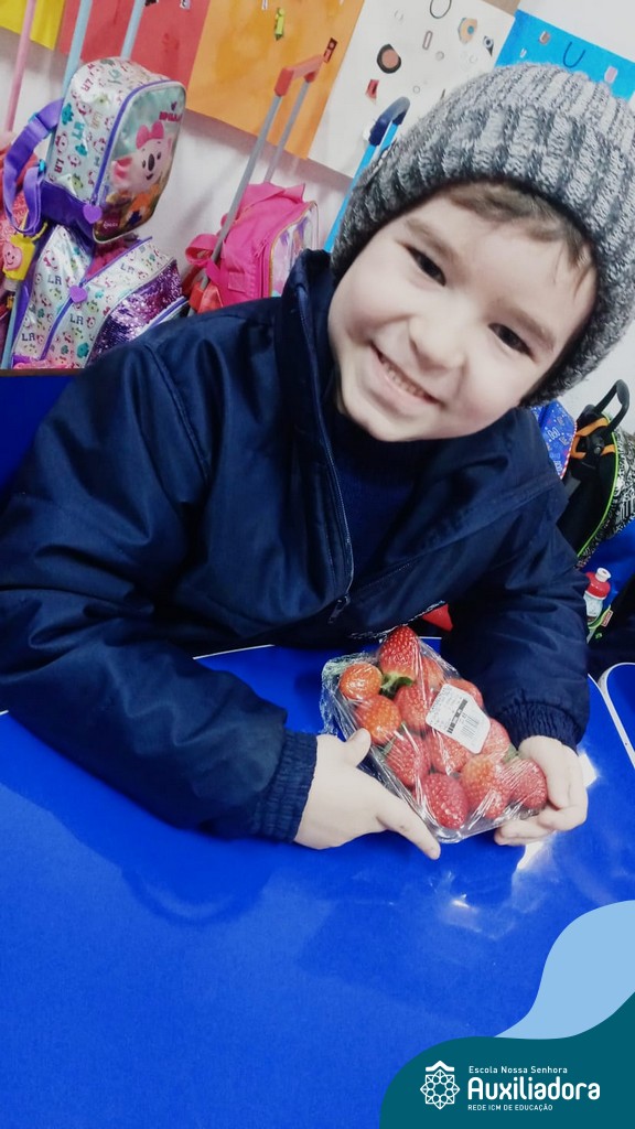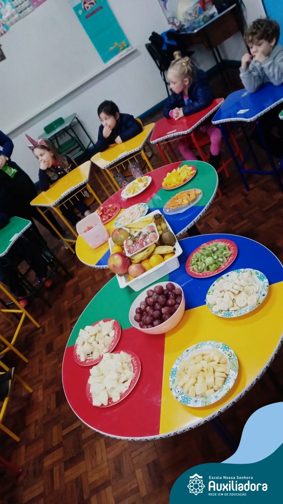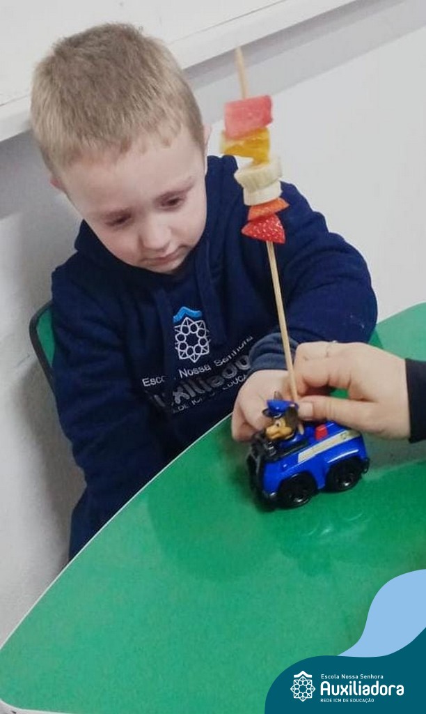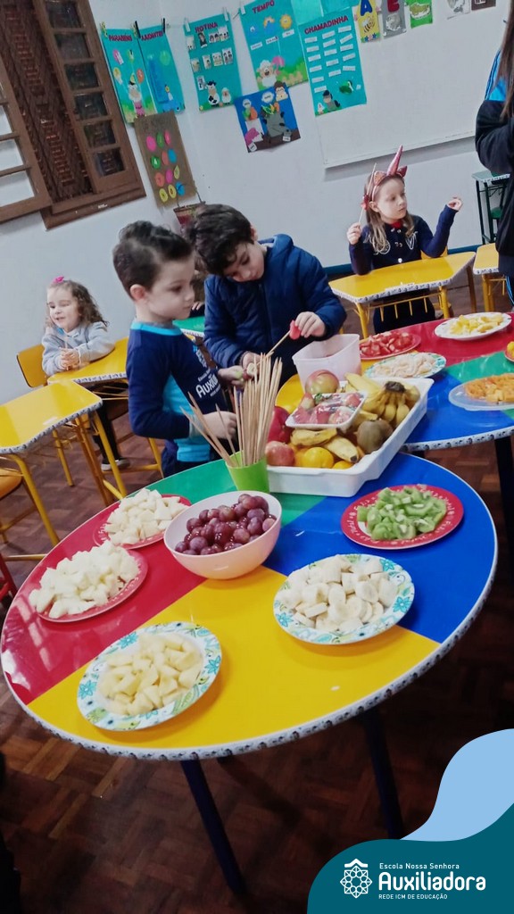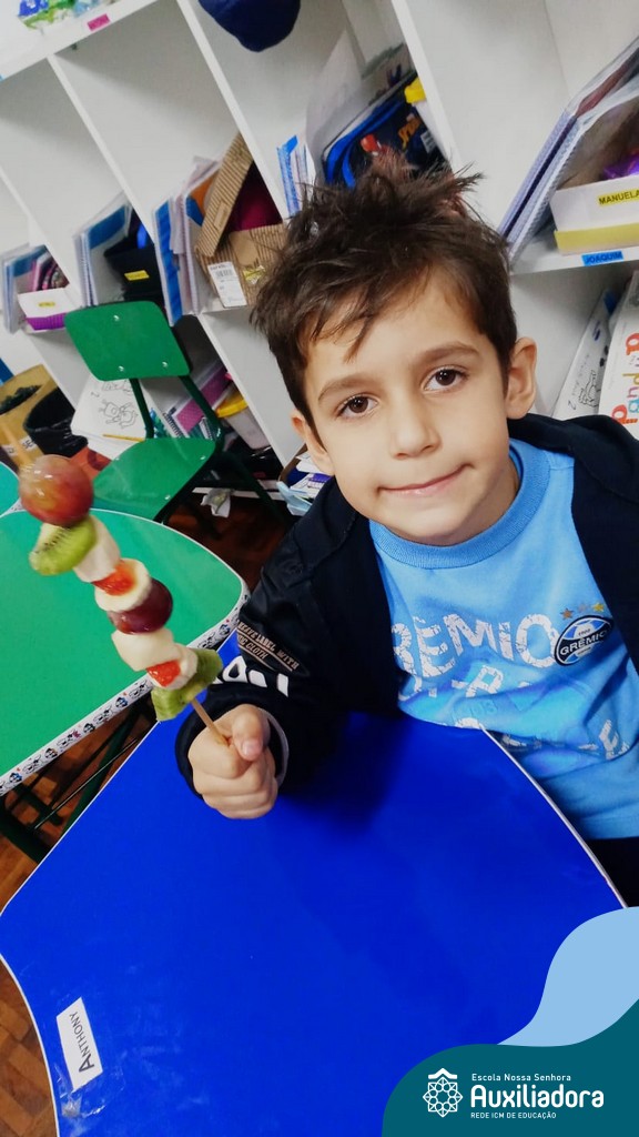 Espetinho de frutas do pré 1B! Nesta atividade os alunos puderam experimentar as frutas, explorando seus sabores, cores, formas e texturas, montando seu espetinho com suas frutas preferidas.