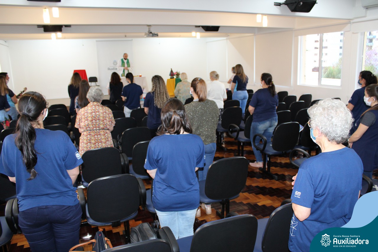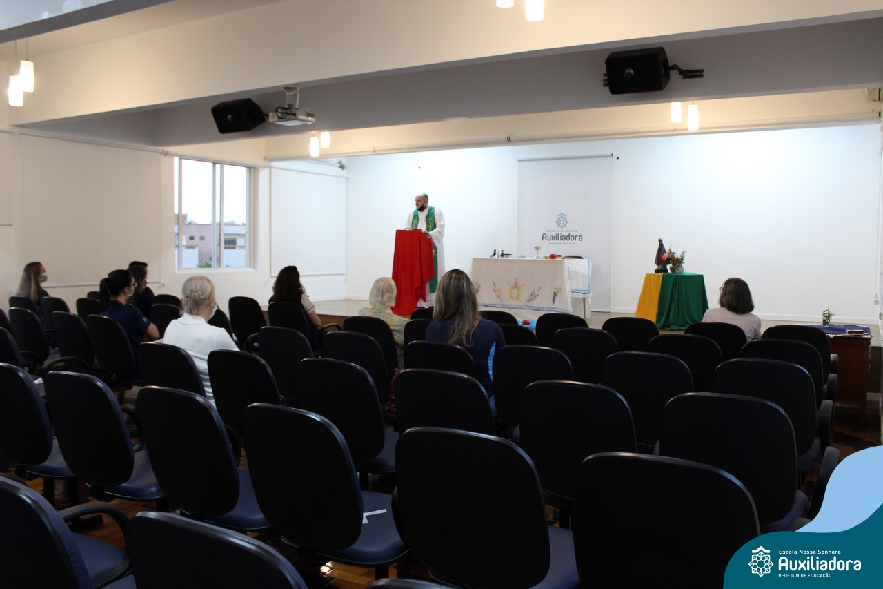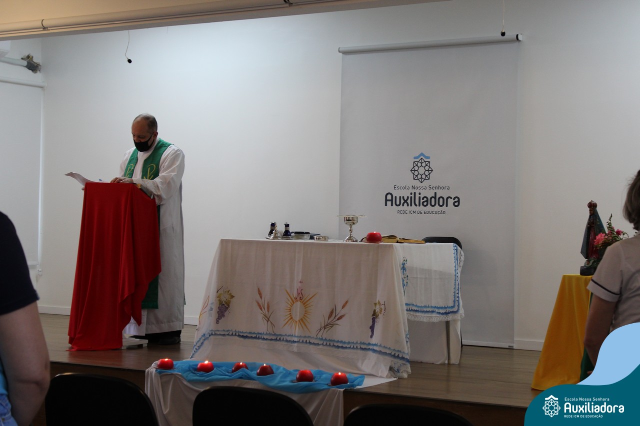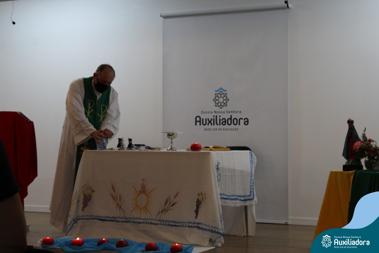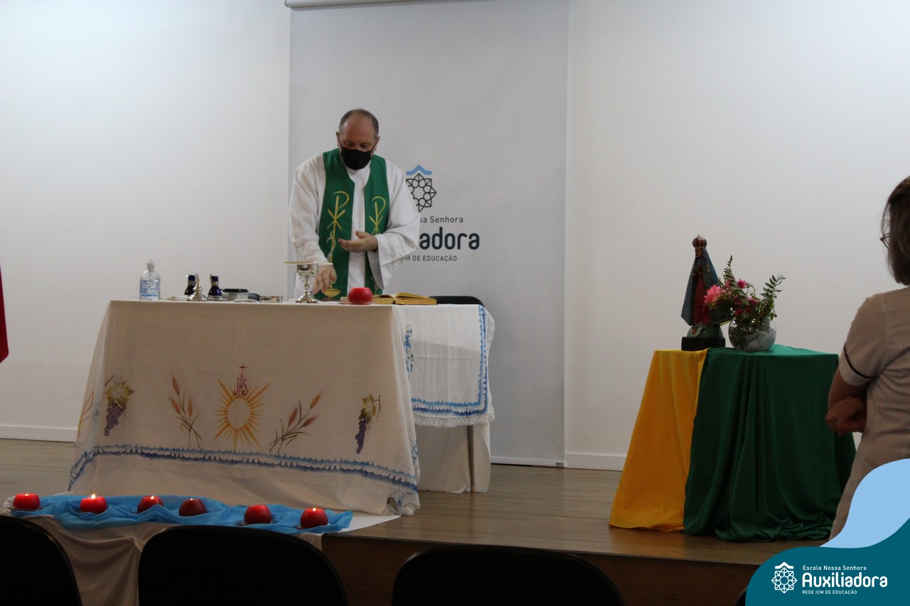 🙏Na véspera de início das aulas presenciais, dia 05 de outubro, celebramos uma santa missa no auditório da escola, com o grupo de professores e funcionários, da Educação Infantil, agradecendo e louvando a Deus por sua constante presença no decorrer de nossa missão via on-line trazendo proteção e muita luz divina a todos e a todas os profissionais, crianças e famílias.❤️